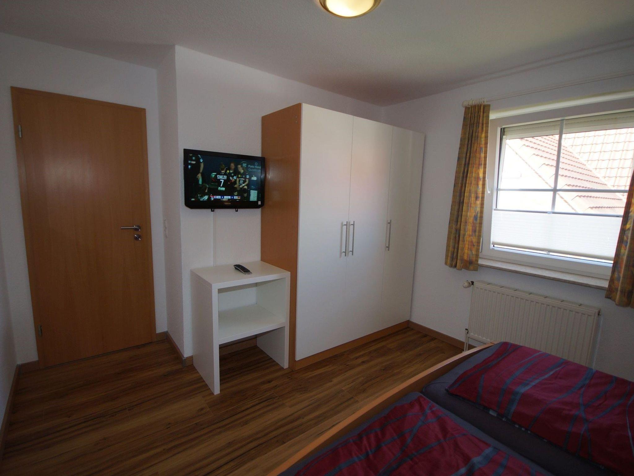 Im Obergeschoß befinden sich ein Schlafzimmer mit zwei Bettenund eins mit einem Doppelbett, beide mit einem Fernseher sowie ein Bad mit Dusche und WC. Die Schlafzimmer sind alle mit Rollläden und Fliegengittern ausgestattet.