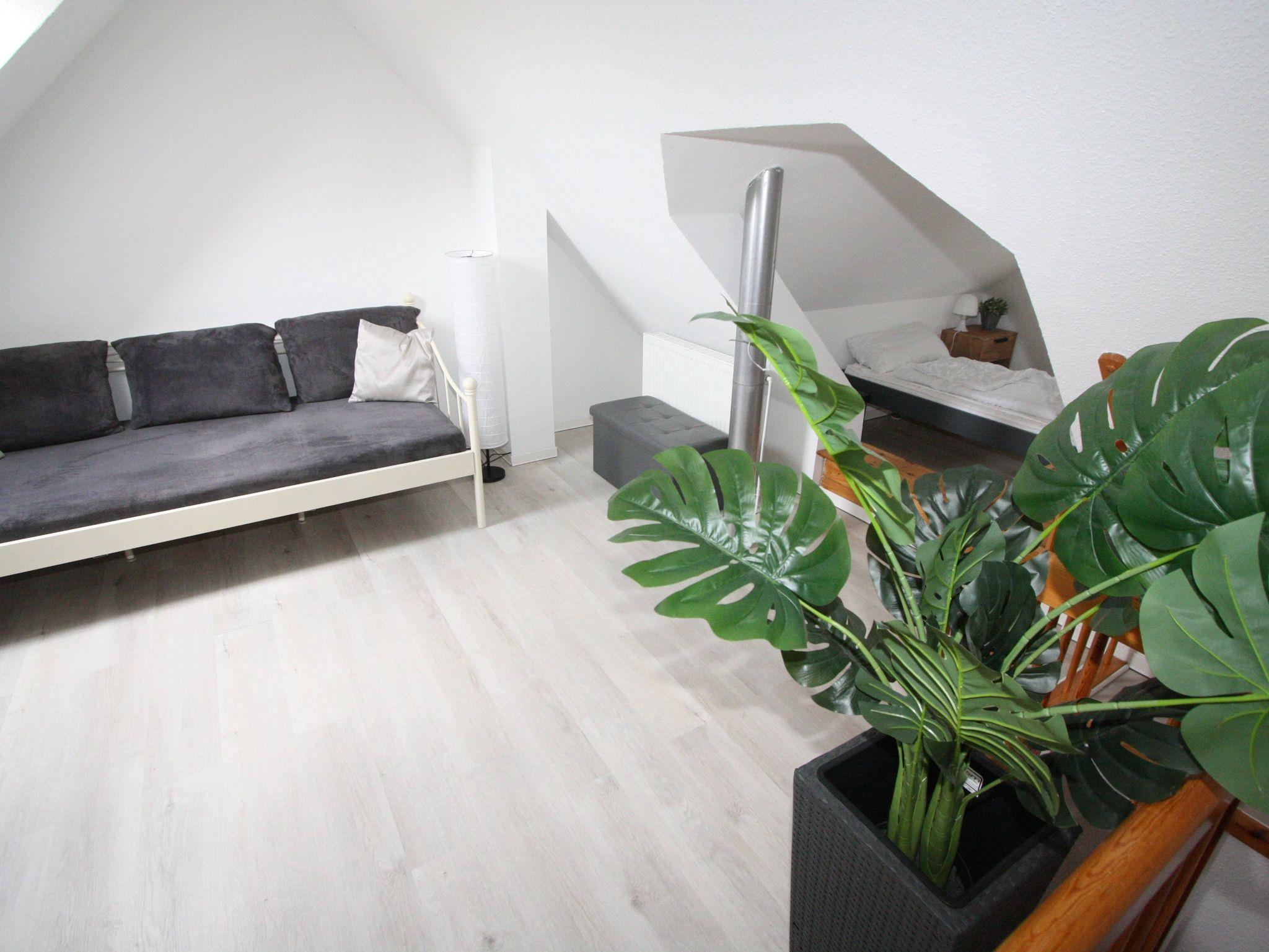 Herzlich willkommen in unserem gemütlichen Ferienhaus. Ob mit Freunden oder Familie ? unser Ferienhaus bietet auf ca. 70 m² Wohnfläche Platz für bis zu 6 Personen. Im Erdgeschoss finden Sie den geräumigen Wohnraum mit offener, voll ausgestatteter Küche, Essplatz, Couch und Zugang zur schönen Südterrasse sowie eines von zwei Badezimmern mit Dusche. Das erste OG verfügt über ein Schlafzimmer mit Doppelbett sowie ein Schlafzimmer mit getrennten Betten und das zweite Bad. Im behaglichen Spitzboden befindet sich eine weitere Schlafgelegenheit mit zwei getrennten Betten. Im Jahr 2022 haben wir für Sie umfassend renoviert und möbliert (Matratzen, Terrassenmöbel u.v.m.).