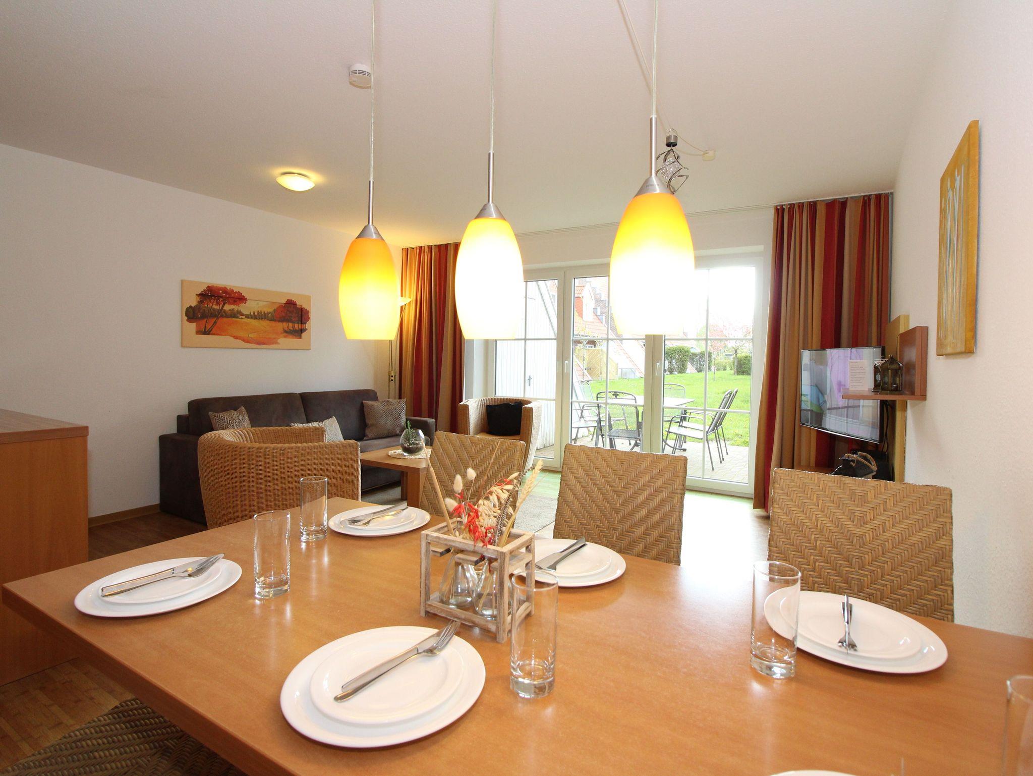 Im Erdgeschoss finden Sie ein supergemütliches Wohnzimmer mit angrenzender Sonnen-Süd-Terasse, Sofa, bequemen Korb-Sesseln und kuscheliger Beleuchtung, großem Plasma-Farbfernseher, DVD und Musikanlage, eine kleine ausgesuchte Bibliothek für Jung und Alt und verschiedene Spiele für ein fröhliches Miteinander.