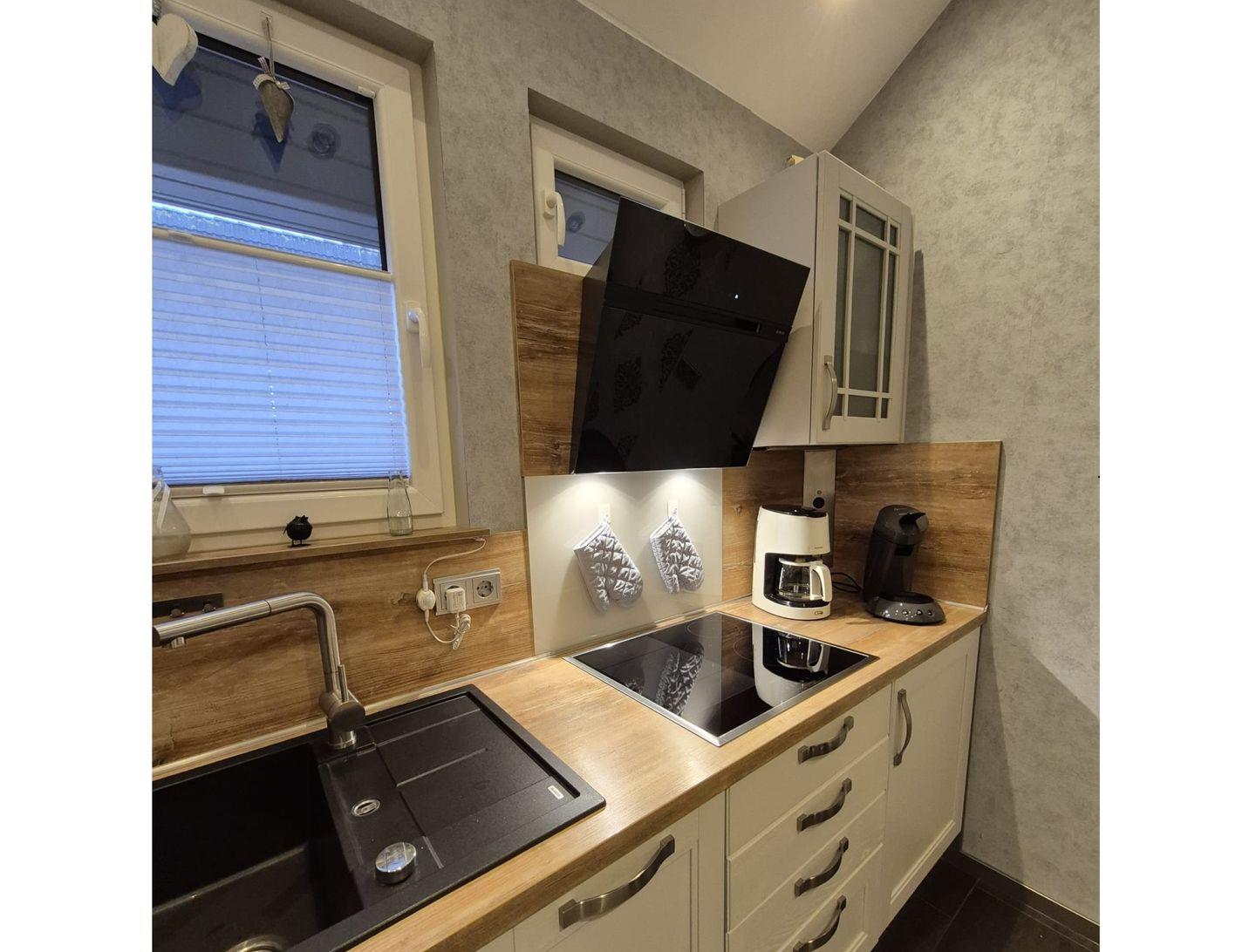 Im hellen Wohnzimmer mit Laminatboden steht Ihnen sowohl eine gemütliche Sofaecke als auch moderne Unterhaltungselektronik – darunter ein SAT-TV-Gerät, ein DVD-Player und internationale Fernsehkanäle – zur Verfügung. An kühleren Abenden sorgt ein Kaminofen für wohltuende Wärme und eine behagliche Atmosphäre. Die umfangreiche Ausstattung wird durch praktische Details wie einen Sessel, Bücher und Gesellschaftsspiele ergänzt.