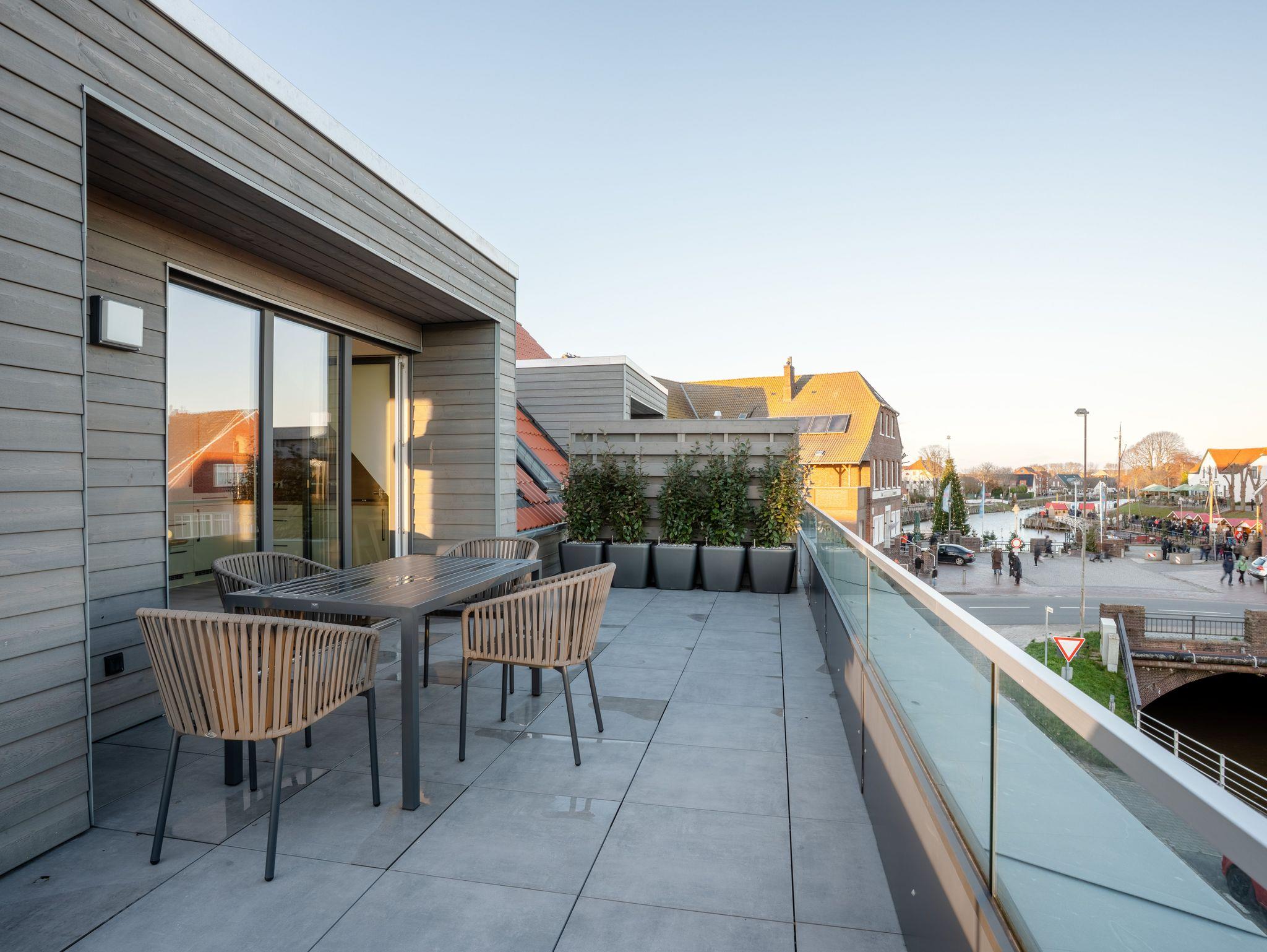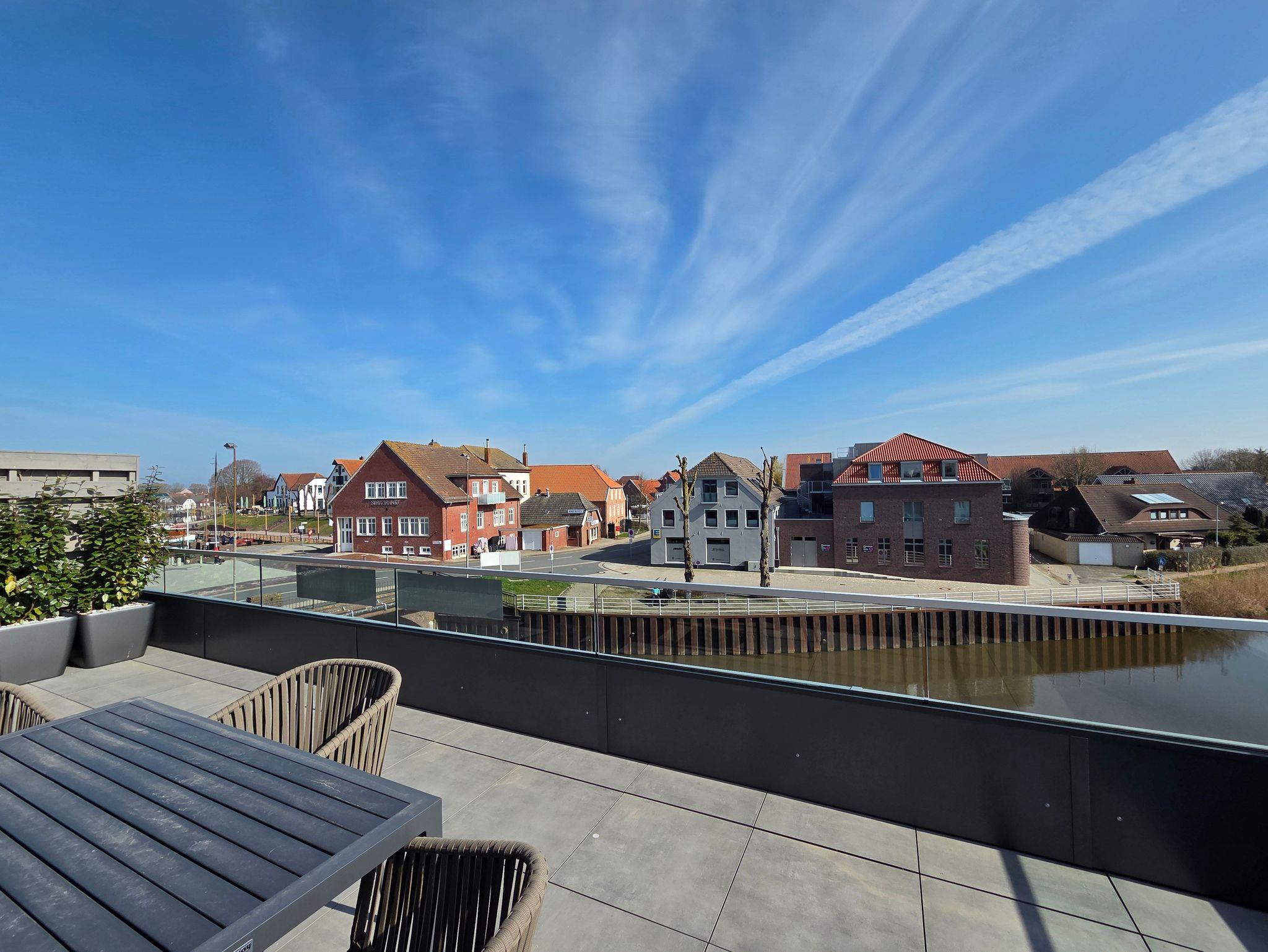 Auf ca. 105 m² erwartet Sie diese exklusive und großzügige Dachgeschosswohnung mit offenem Wohn- und Essbereich und voll ausgestatteter Küche. Die große Dachterrasse, zugänglich vom Wohnbereich und einem der beiden Schlafzimmer, bietet einen traumhaften Blick auf die Harle und den Museumshafen. Hier können Sie ungestört entspannen oder mit der gesamten Familie frühstücken.