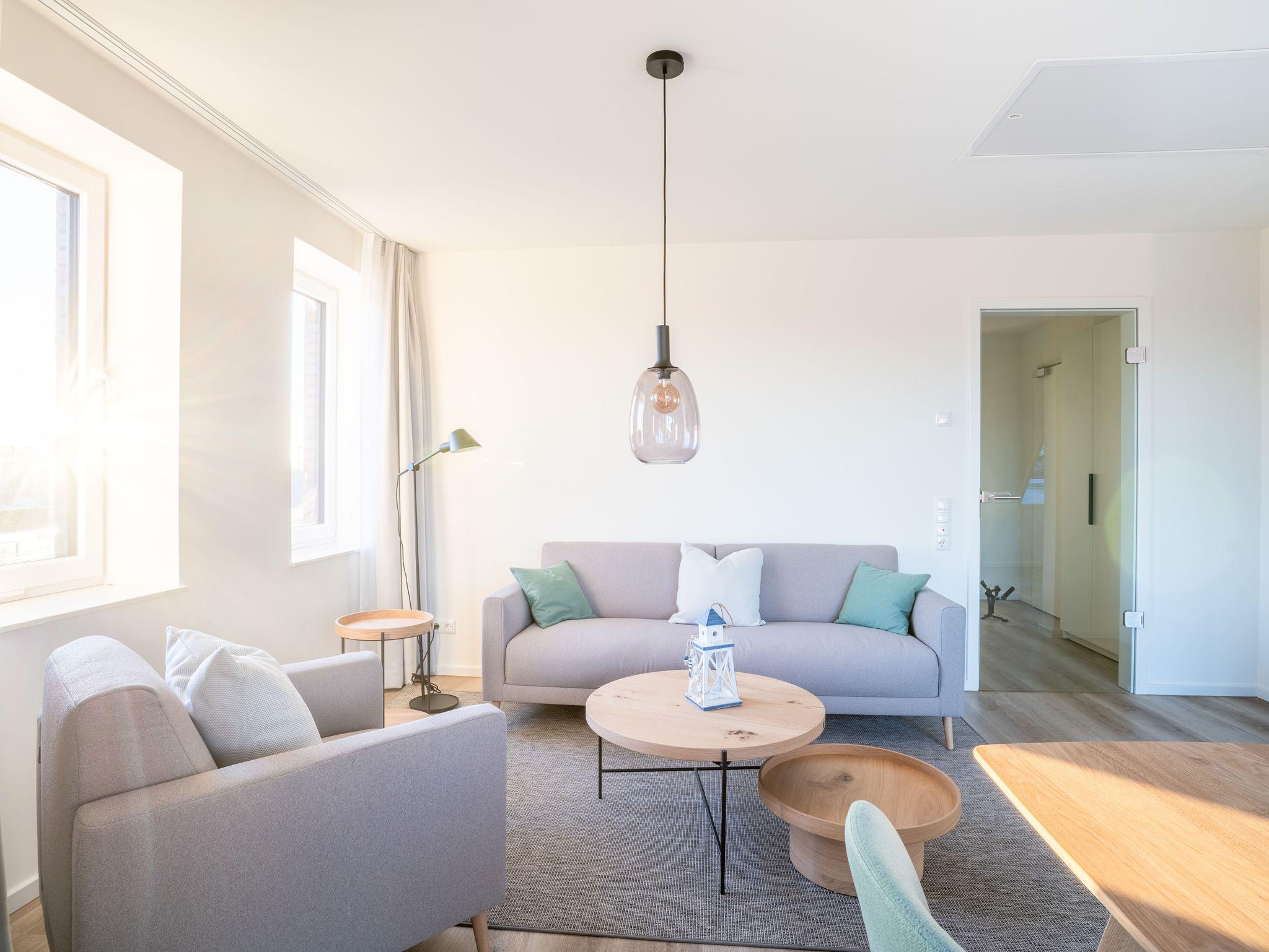 Direkt an der Harle gelegen und im Jahr 2025 neu erbaut, erwarten Sie moderne Apartments mit höchstem Komfort. Ein Fahrstuhl, eigener Parkplatz sowie eine abschließbare Fahrradunterstellmöglichkeit mit E-Ladestation sorgen für entspannte Urlaubstage.
