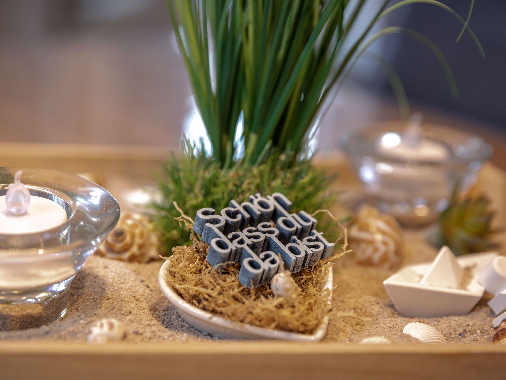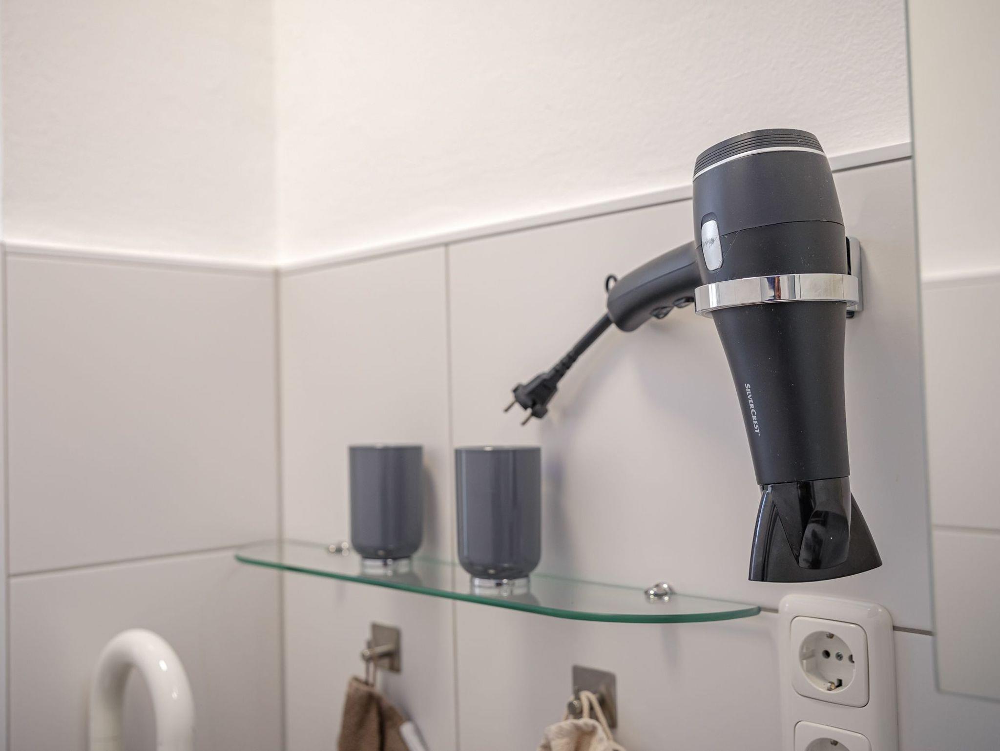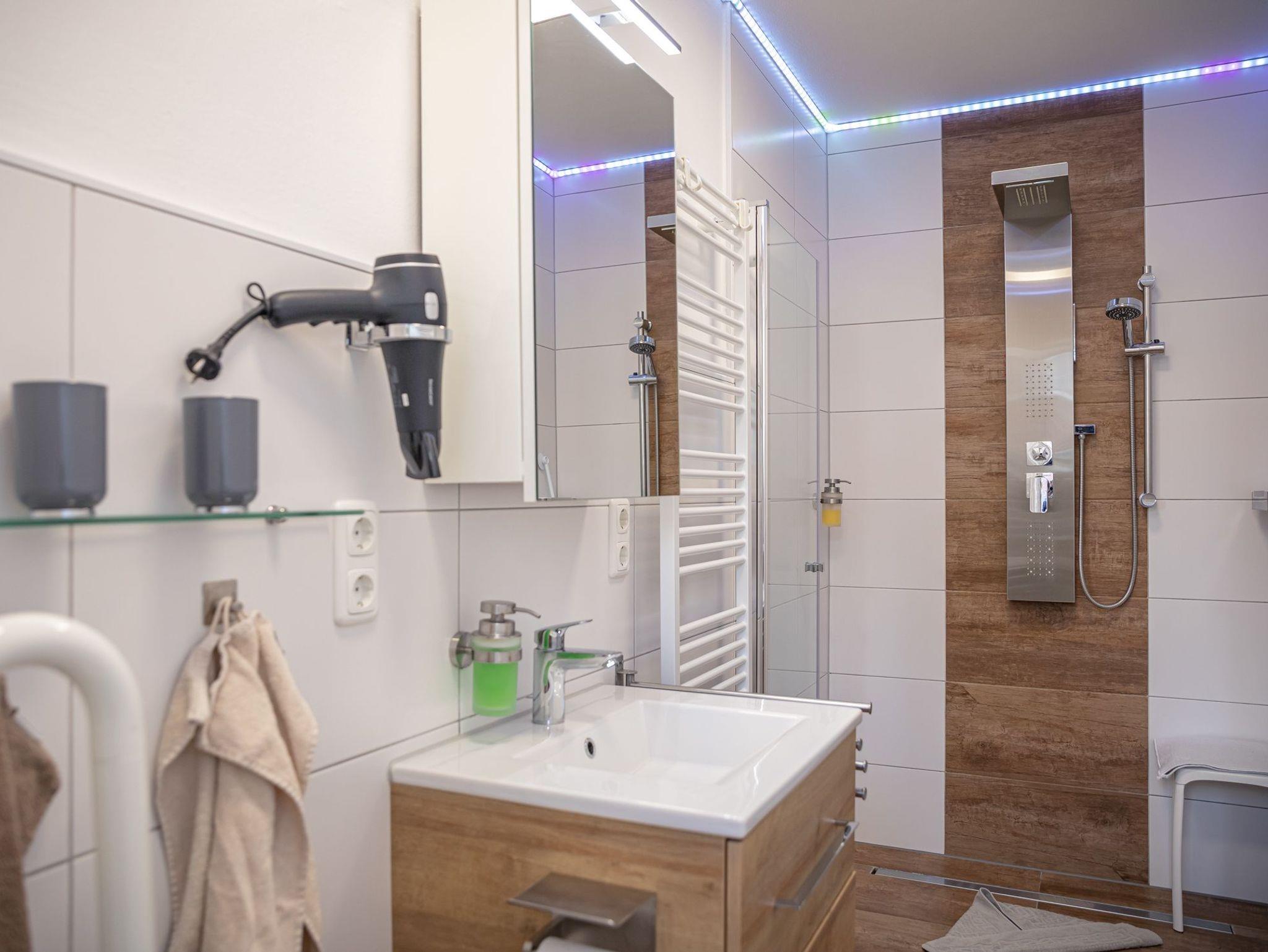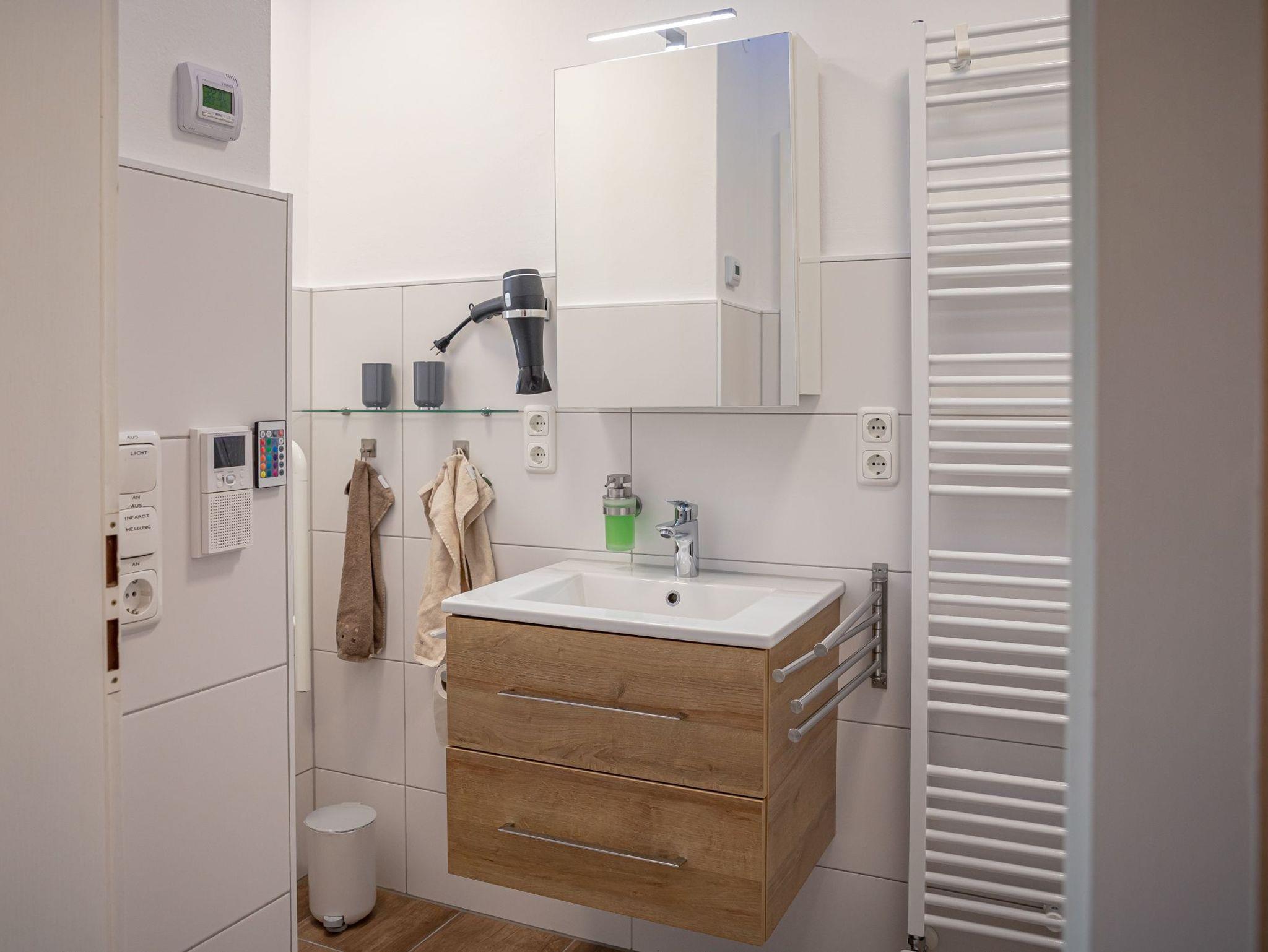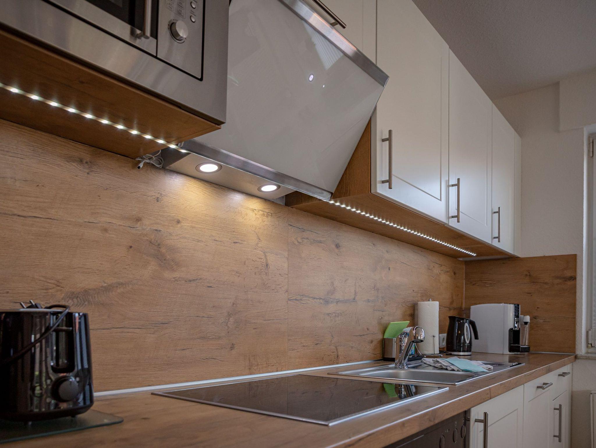 Unsere neu und modern eingerichtete Ferienwohnung liegt im Erdgeschoss mit ebenerdigem Zugang und empfängt Sie mit einem großzügigen und lichtdurchfluteten Wohn-/Essbereich mit Küchenzeile, Schlafsofa und Zugang zur sonnigen und windgeschützten Terrasse. Die Küche bietet Ihnen alles, was Sie für einen entspannten Start in den Tag benötigen. Sie ist mit Mikrowelle sowie Spül- und Waschmaschine ausgestattet. Das Schlafzimmer verfügt über ein Doppelbett (180x200) und einen großen Kleiderschrank, das Bad über eine ebenerdige Dusche. Ihre Fahrräder können im abschließbaren Schuppen untergebracht werden.