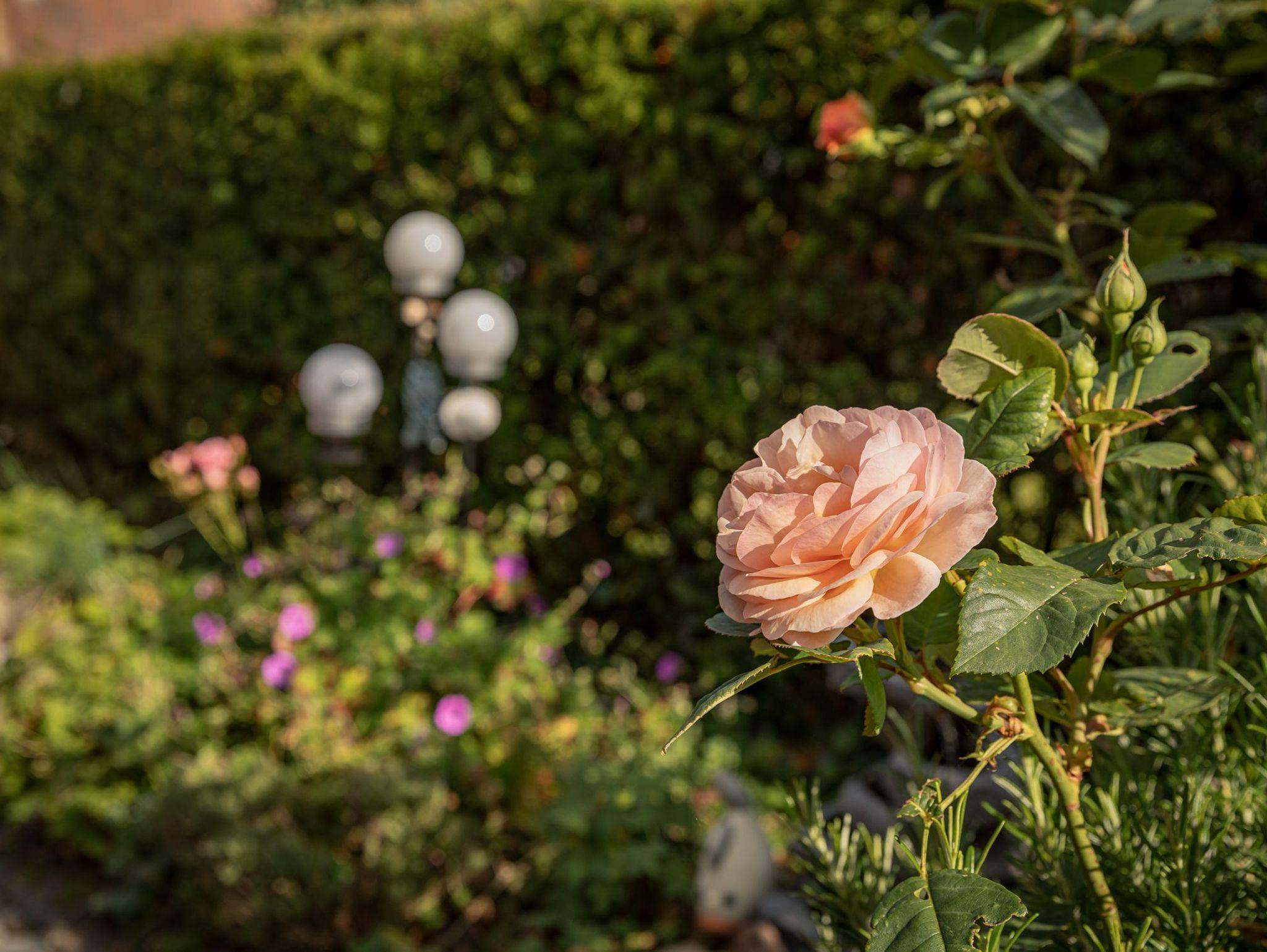 Auf der windgeschützten Terrasse mit Sonnendeck mit Sonnenliegen und Sonnenschirm sowie mit Liebe zum Detail gestalteten Blumenbeeten mit Springbrunnen, Kräutern und Rosen, können Sie Ihren Urlaub genießen und entspannen.