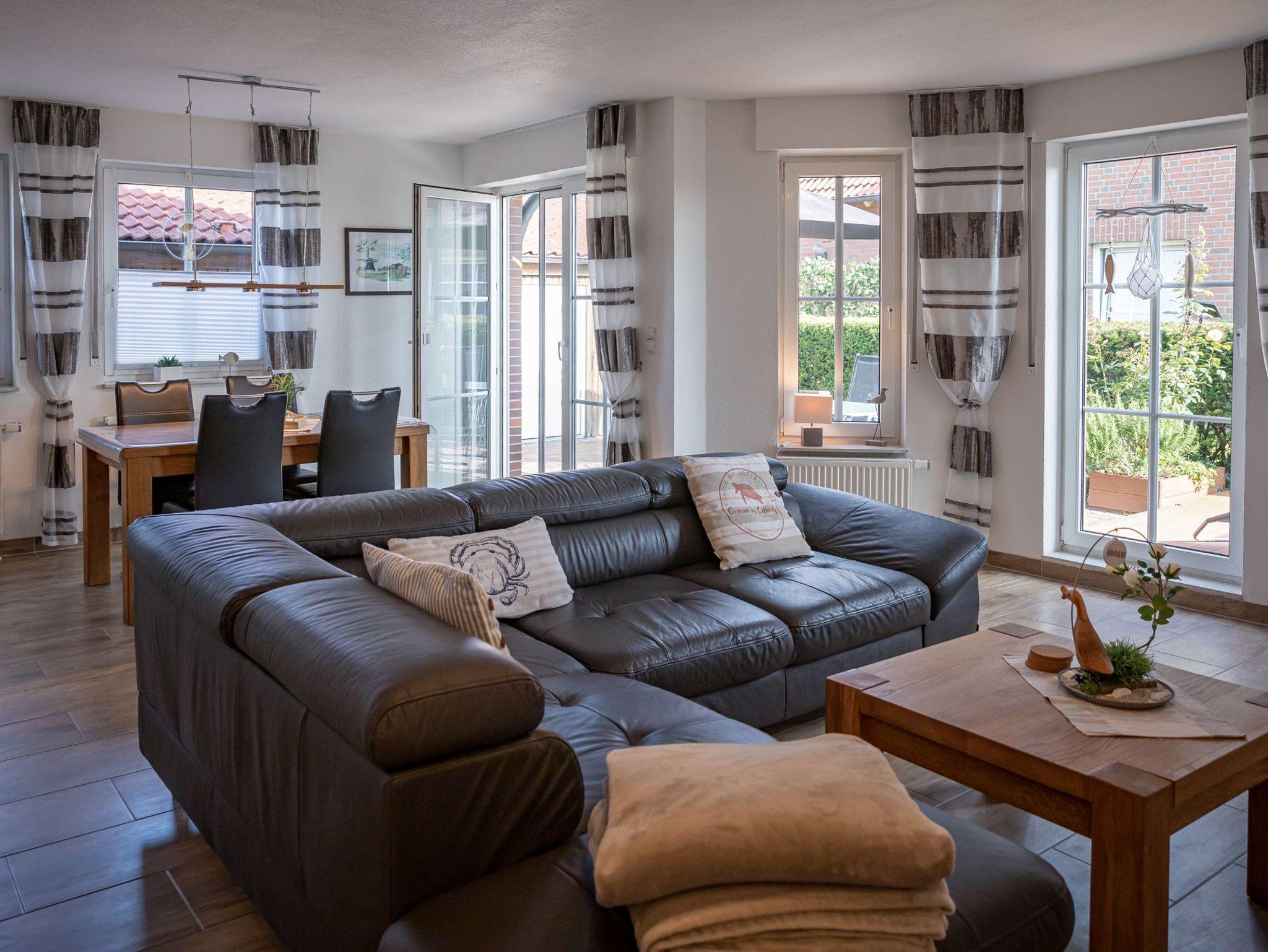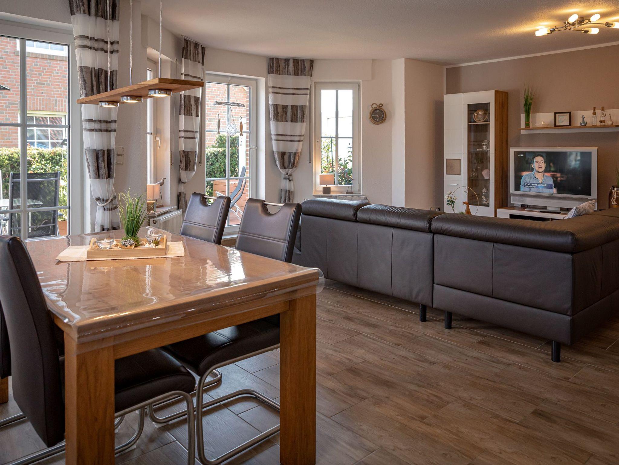 Unsere sonnige und barrierearme Ferienwohnung mit Terrasse liegt im Wohngebiet Mühlenblick in zentraler und ruhiger Lage am Ende einer Sackgasse in Carolinensiel.