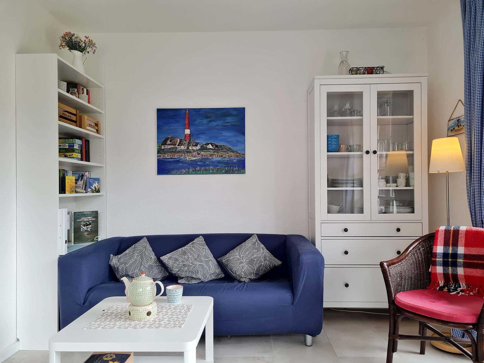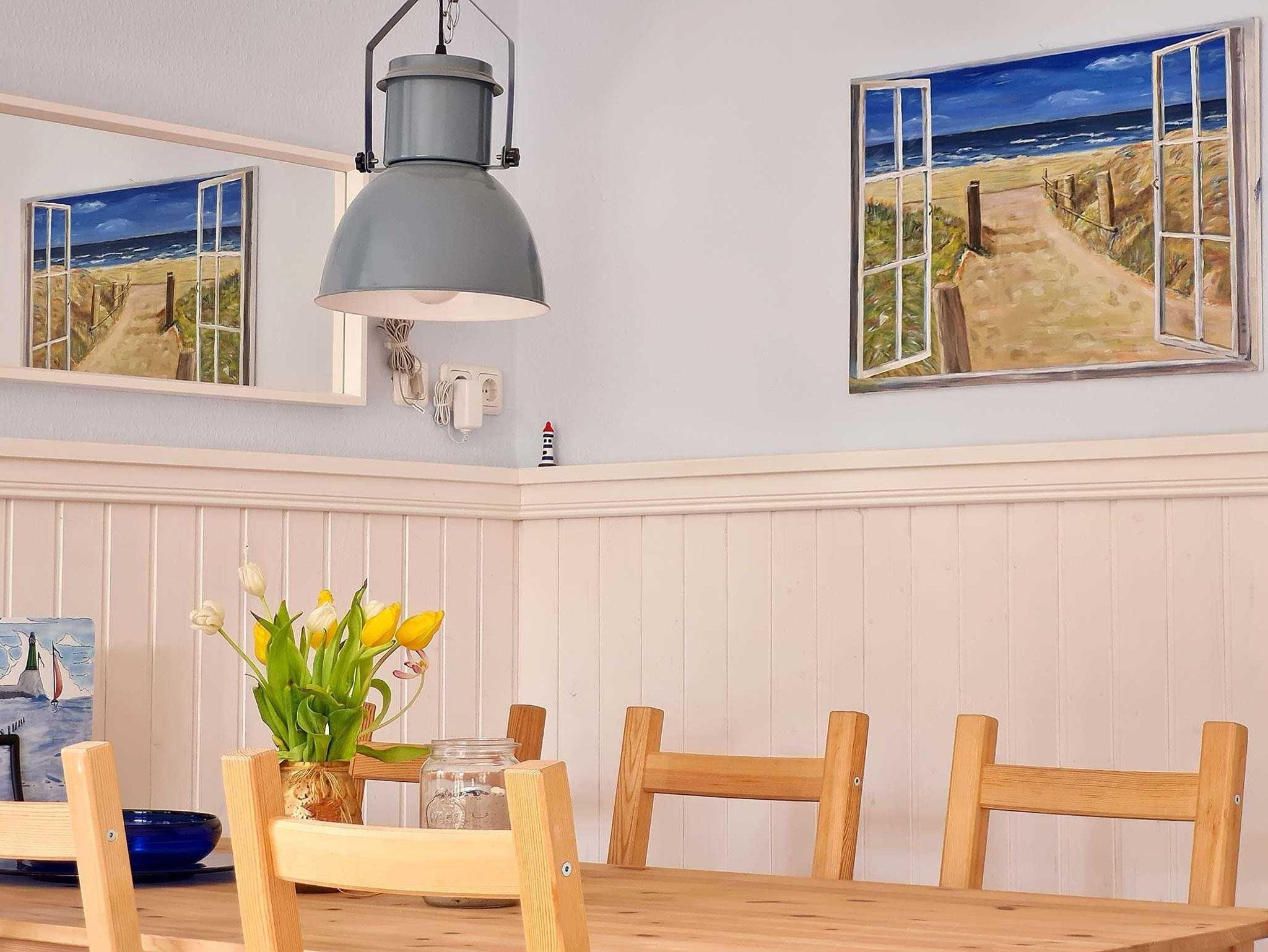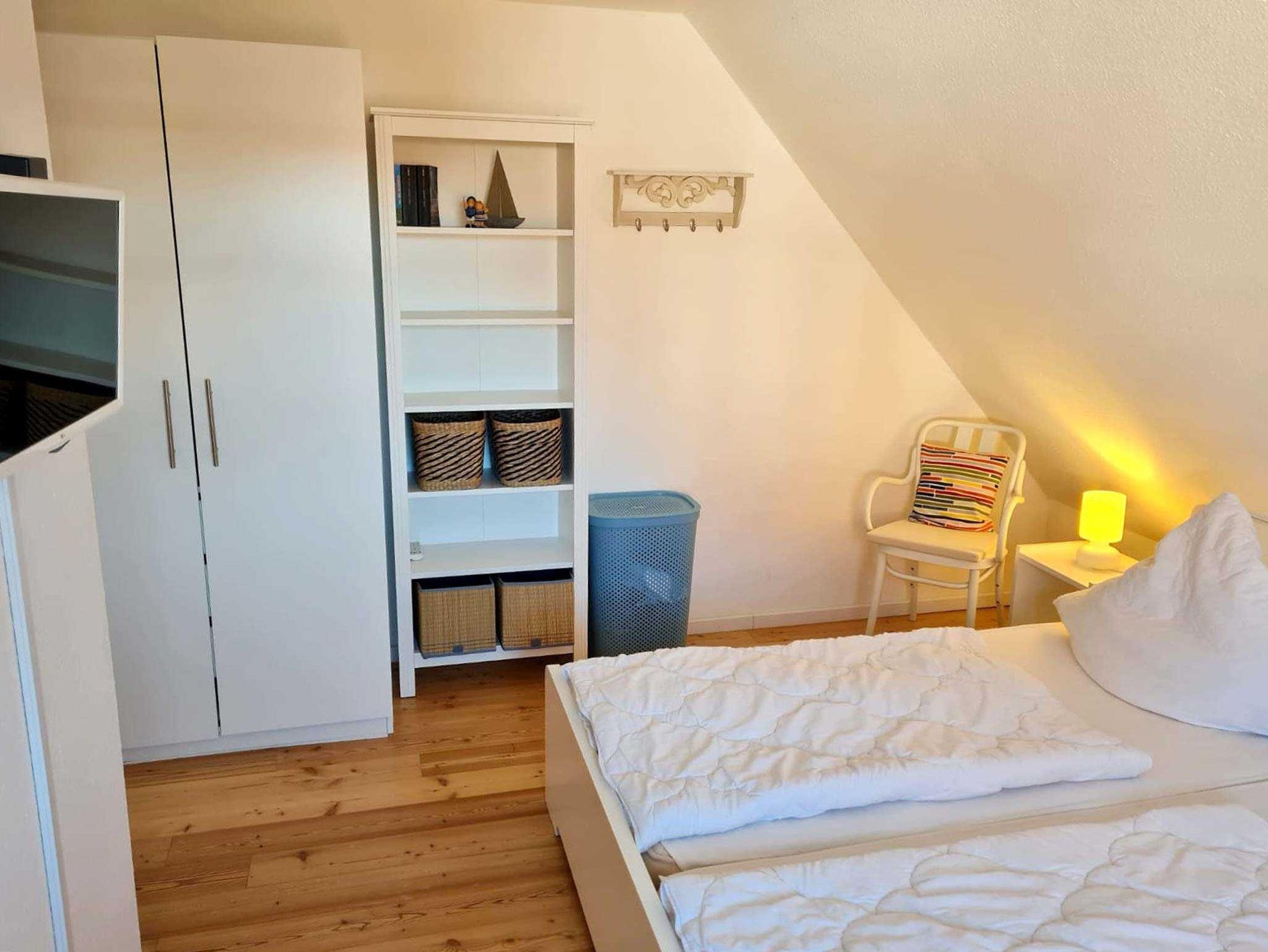 Eine Holztreppe führt in das gemütliche Dachgeschoss. Hier stehen weitere 2 Einzelbetten (90 cm) für Sie bereit. Zusätzlich gibt es einen Schreibtisch und zwei schöne Sessel, die zum Lesen einladen. Eine kleine Auswahl an Büchern ist vorhanden. Der Fußboden ist mit fußwarmen Holzdielen ausgelegt. Alle Schlafräume lassen sich mit Außenrolladen verdunkeln. Freies WLAN steht zu Ihrer Verfügung.