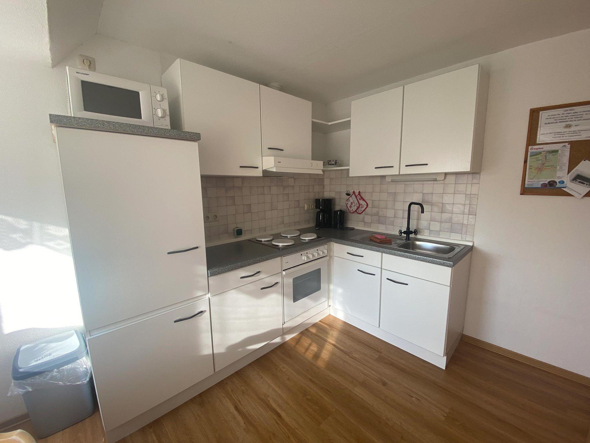 Ferienwohnung für 2 Personen mit Wohnzimmer, einem Schlafzimmer mit Doppelbett und komplett eingerichteter separater Küche. Bad mit Tropenregendusche und WC. Gartenterrasse mit Gartenmöbeln und Grillmöglichkeit.