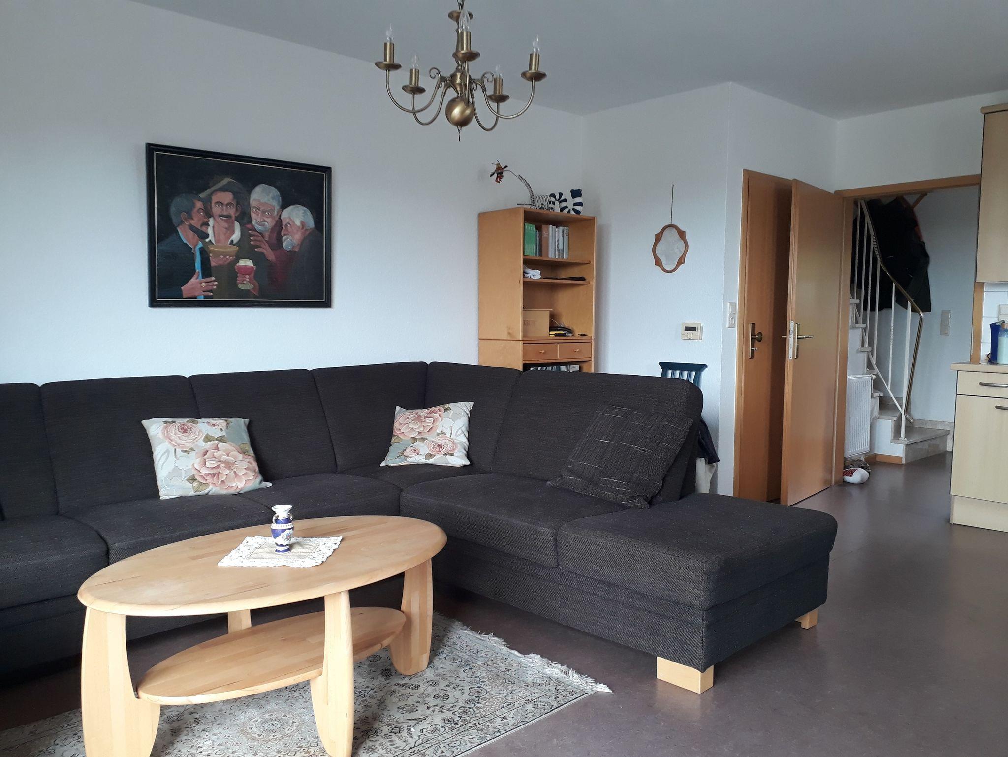 Wohnbereich im Erdgeschoss mit gemütlicher Rundpolstersitzecke, Fernseher mit Sat-Empfang, Radio, CD-Player, Ausgang zur Südterrasse und Garten. Küchen- und Essbereich mit Küchenzeile inkl. Inventar, Herd, Backofen, Geschirrspüler, Kaffeemaschine, Toaster und ausziehbarem Esstisch. Schlafbereich 1: Doppelbett mit großem Schrank, Kinderbett, Wickeltisch; Schlafbereich 2: Doppelbett mit Schrank; Schlafbereich 3 im Dachgeschoss: mit 2 Einzelbetten über eine Raumspartreppe erreichbar. Linolium Fussböden in allen Räumen, außer Bad und WC Bereich und Schlafbereich 3, dort Teppichbelag. WLAN ist ab dem 01. März 2021 verfügbar.