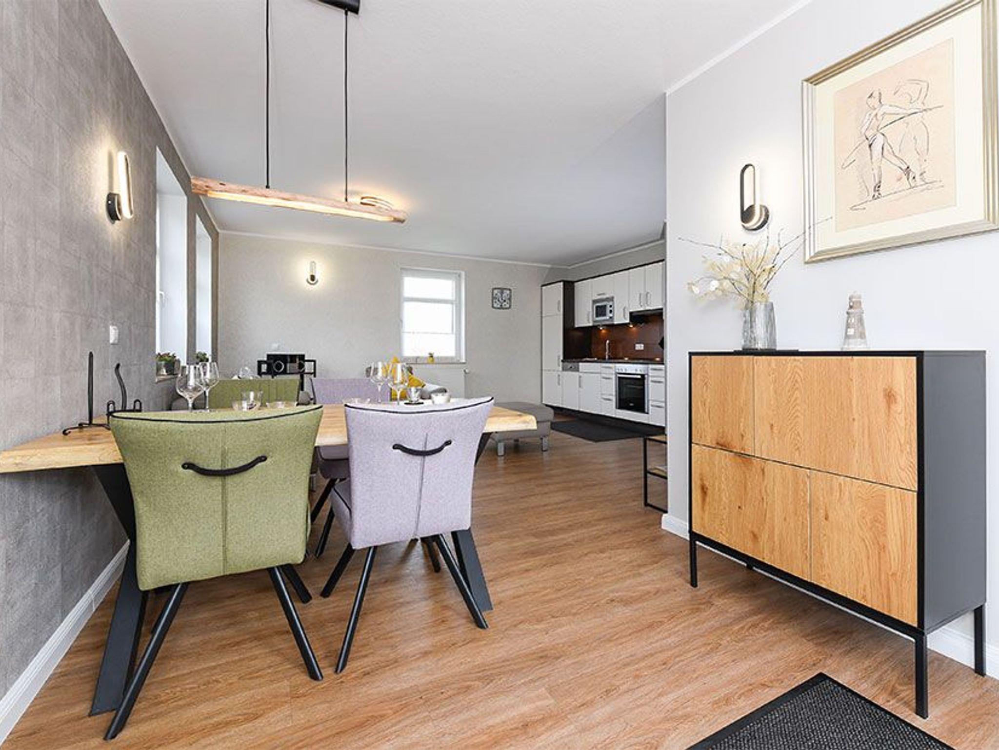 Die Ferienwohnung Deichkrone ist für zwei bis vier Personen mit zusätzlichem Kleinkind geschmackvoll für Sie eingerichtet und modern ausgestattet, zum Beispiel ist Mikrowelle und Geschirrspülmaschine vorhanden, eine Waschmaschine und ein Wäschetrockner stehen zum Benutzen für alle Gäste zur Verfügung. Die Wohnung verfügt über einen sonnigen Balkon.