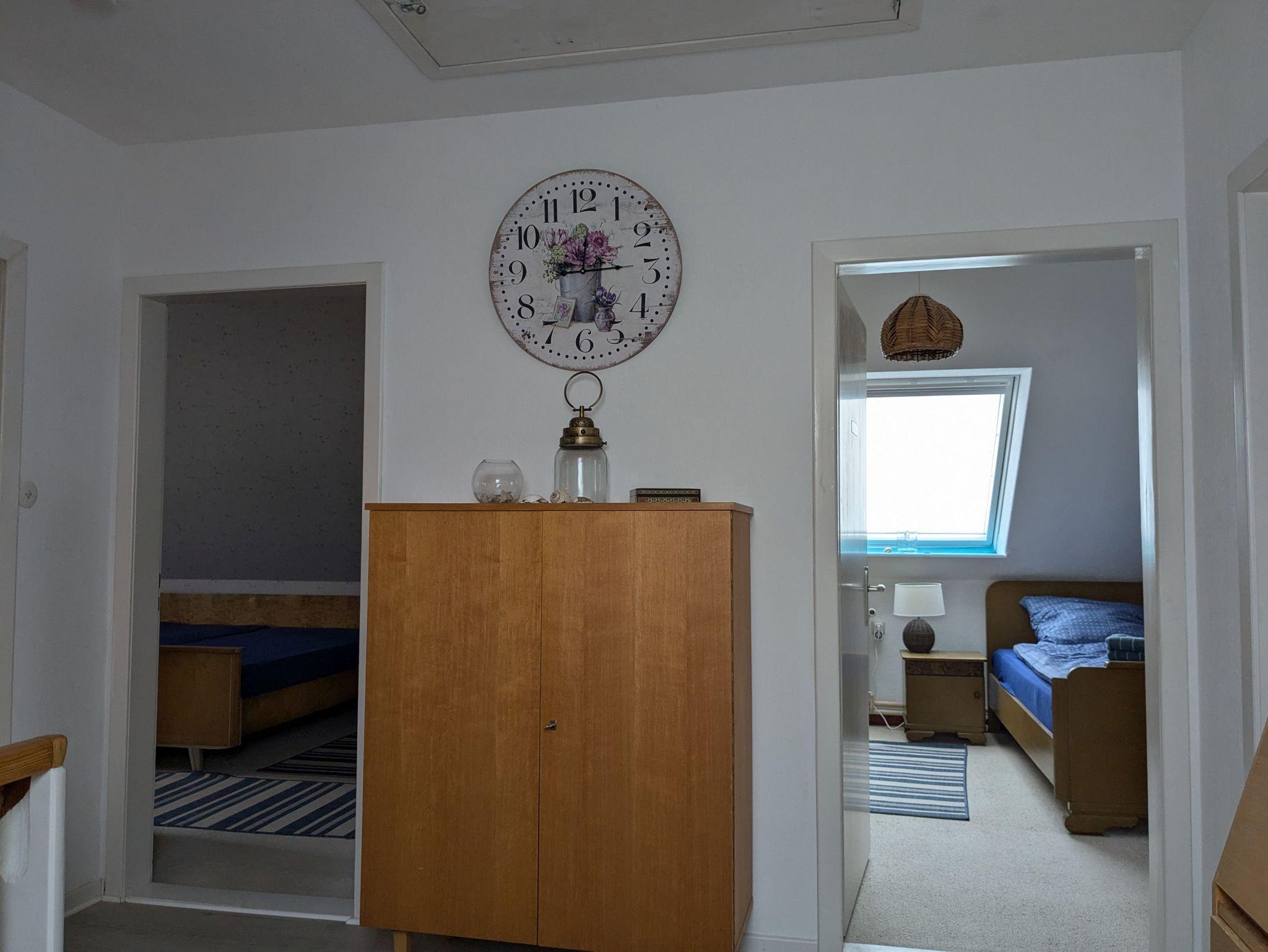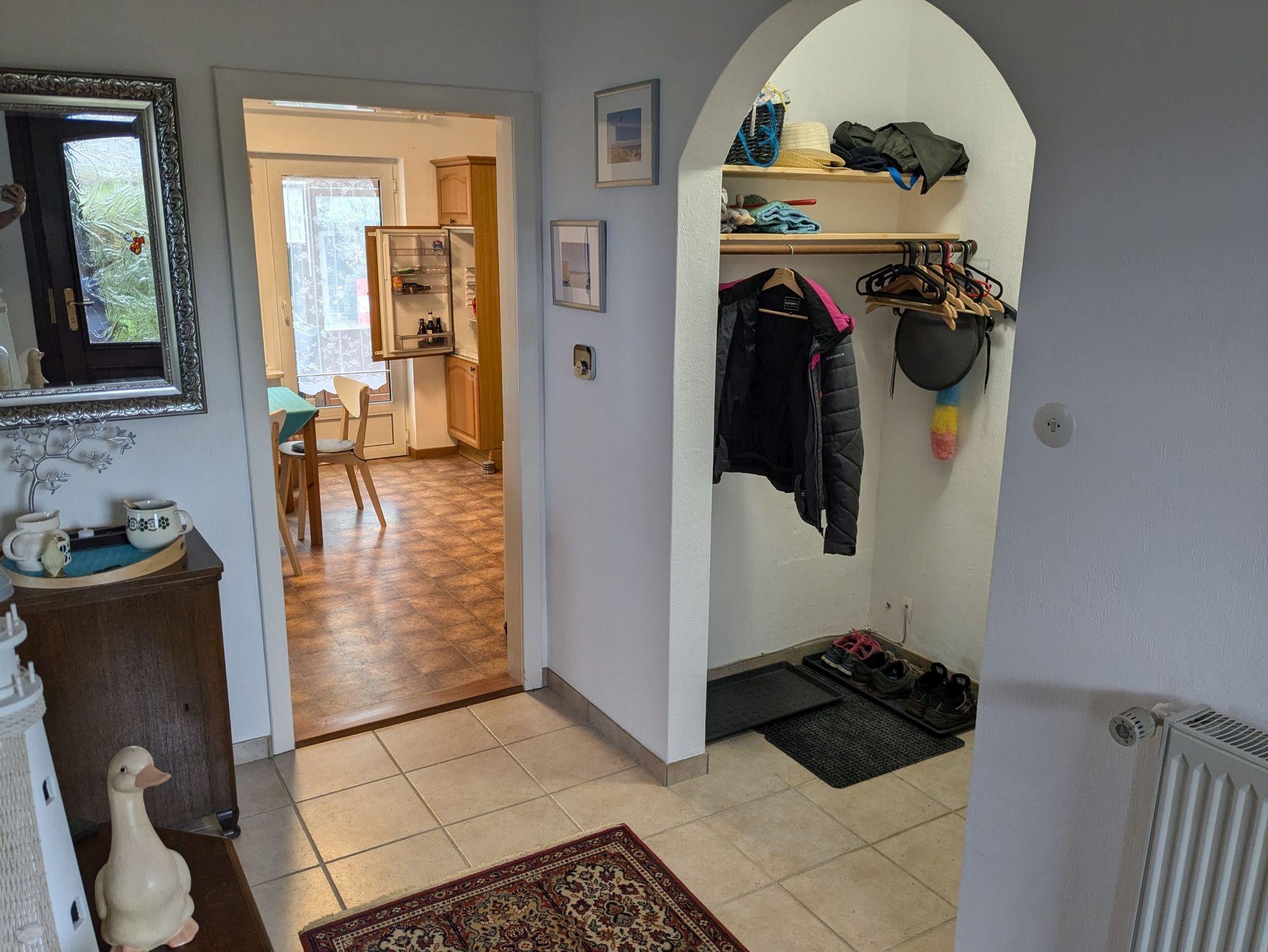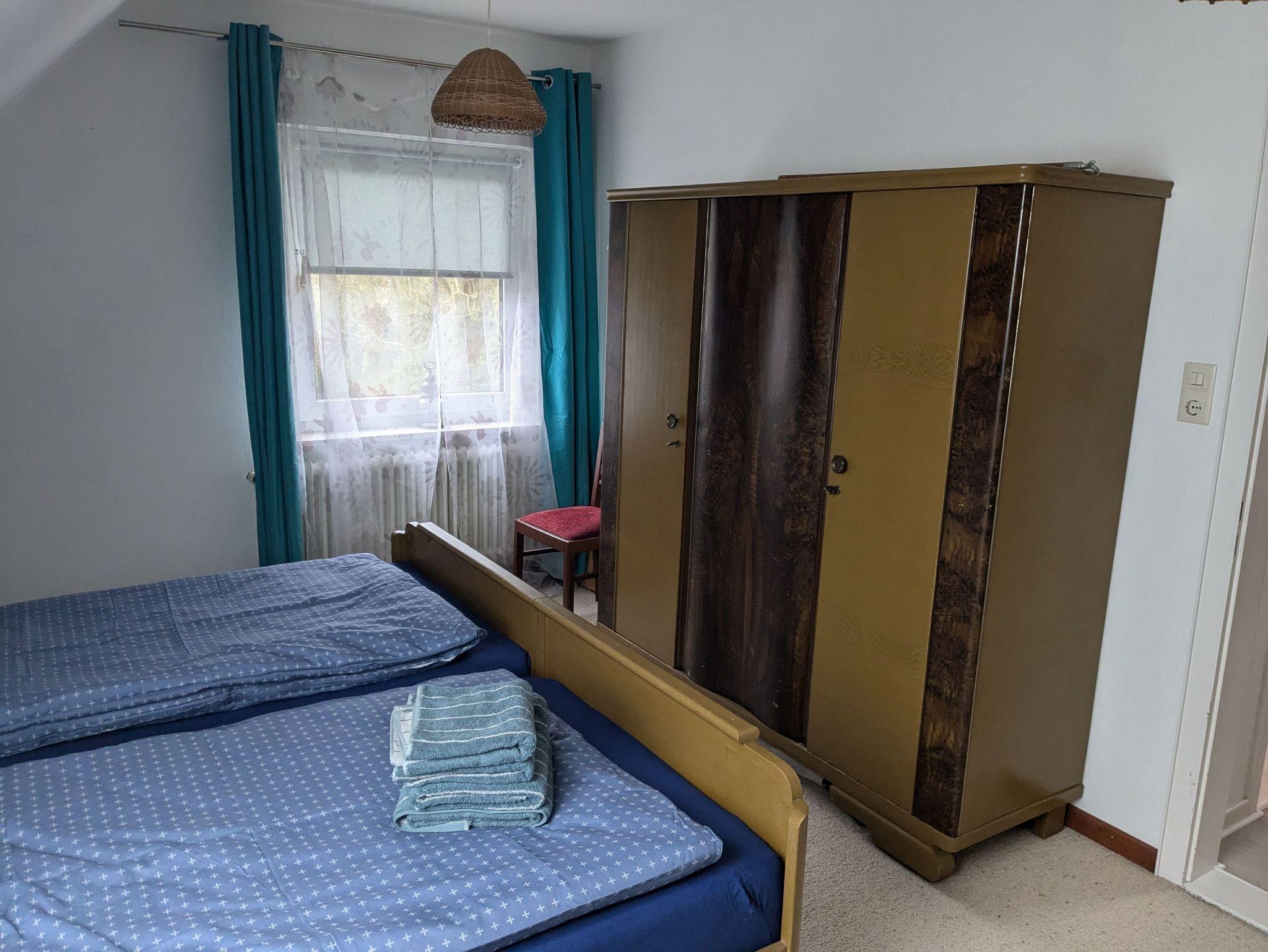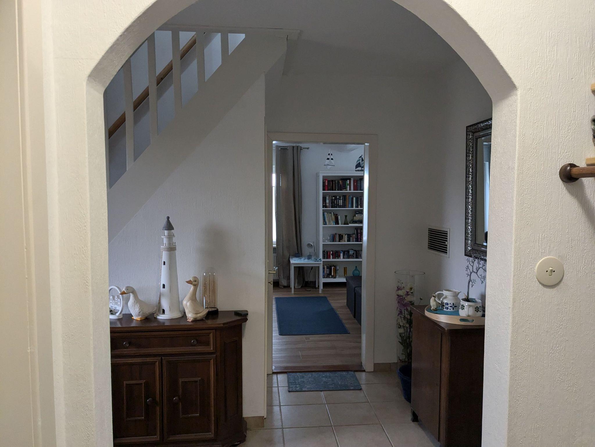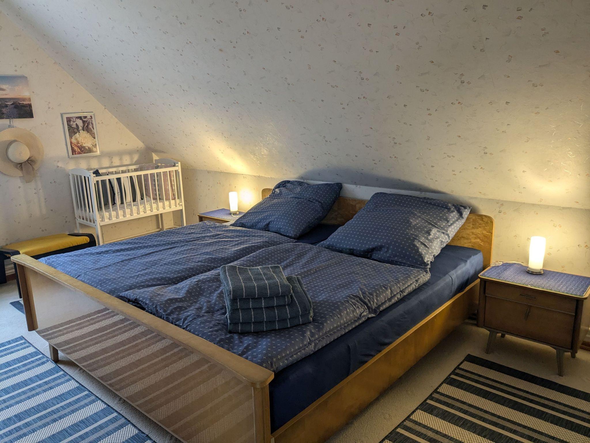 1-6 Personen finden auf rund 140 qm in 2 gemütlichen Zimmern mit Doppelbett (200cmx200cm) und 1 Zimmer mit Queensize-Doppelbett (160cm x 200cm) Platz. Zusätzlich steht noch 1 Zimmer mit bequemem Schlafsofa (140cm x 200cm) zur Verfügung. Ein Babybett sowie ein Hochstuhl für die kleinen Gäste sind ebenfalls vorhanden. Hunde sind herzlich willkommen. Unser Haus ist gemütlich im Mix and Match Stil eingerichtet, der alte und neue Möbelstücke vereint. Es ist voll ausgestattet, mit kostenlosem WLAN und viel Platz, Spülmaschine, Gefrierschrank, Heißluftfritteuse, Backofen, 2 x Flachbild-TV, Waschmaschine und Haartrockner. Der Wintergarten mit Blick in den Obstgarten lädt zum gemeinsamen Frühstück ein. Ein Strandkorb im Wintergarten sowie eine Leseecke im OG sind die perfekten Rückzugsorte zum Verweilen mit einem guten Buch. Im Wohnzimmer sorgt der Kachelofen für eine heimelige Atmosphäre. Der große Tisch im Essbereich ist hervorragend zum gemeinsamen Essen, für einen geselligen Spieleabend oder auch als Team-Arbeitsplatz geeignet. Das Haus verfügt über ein Duschbad im EG und ein großes Badezimmer mit Dusche und Badewanne.