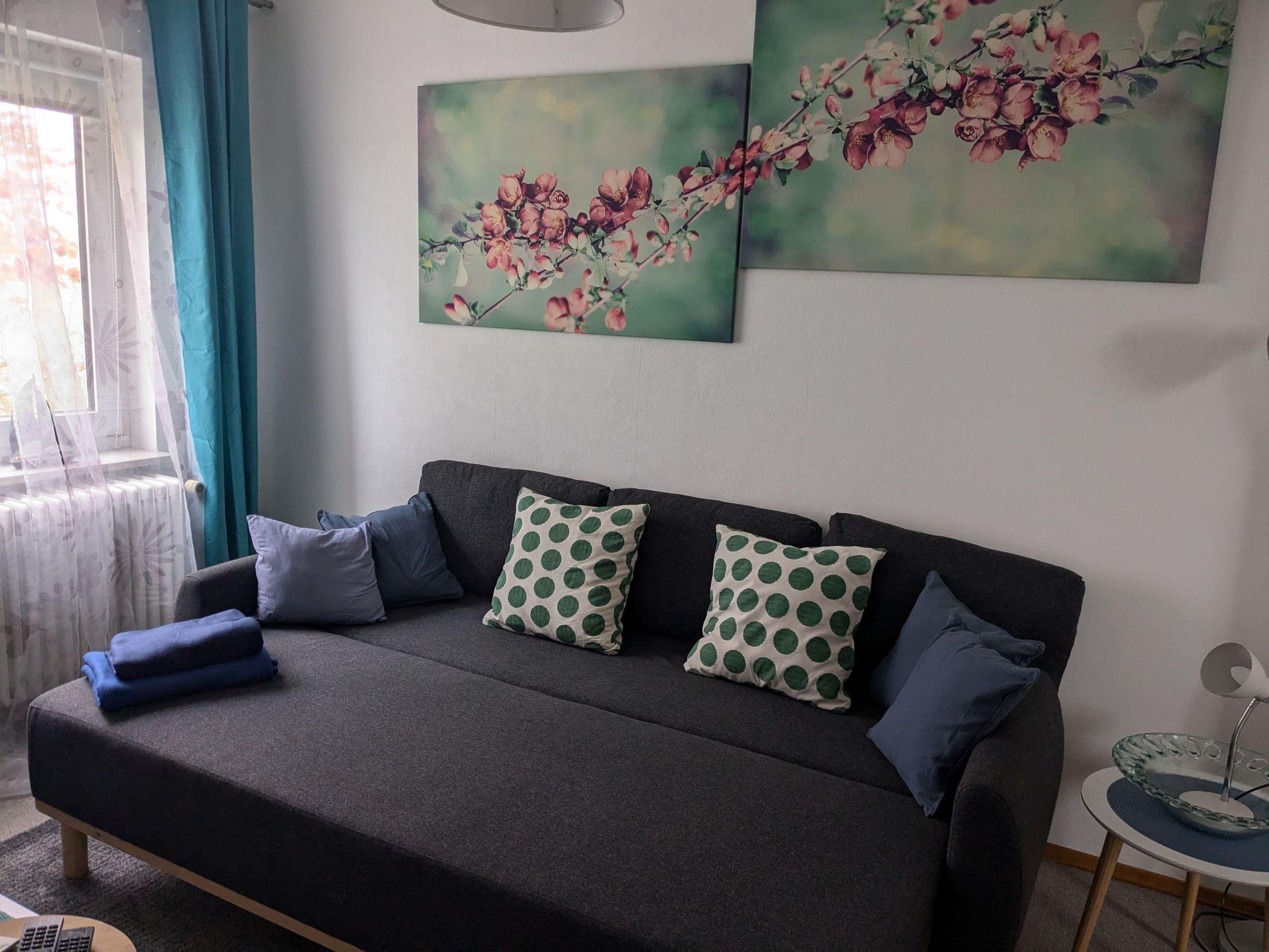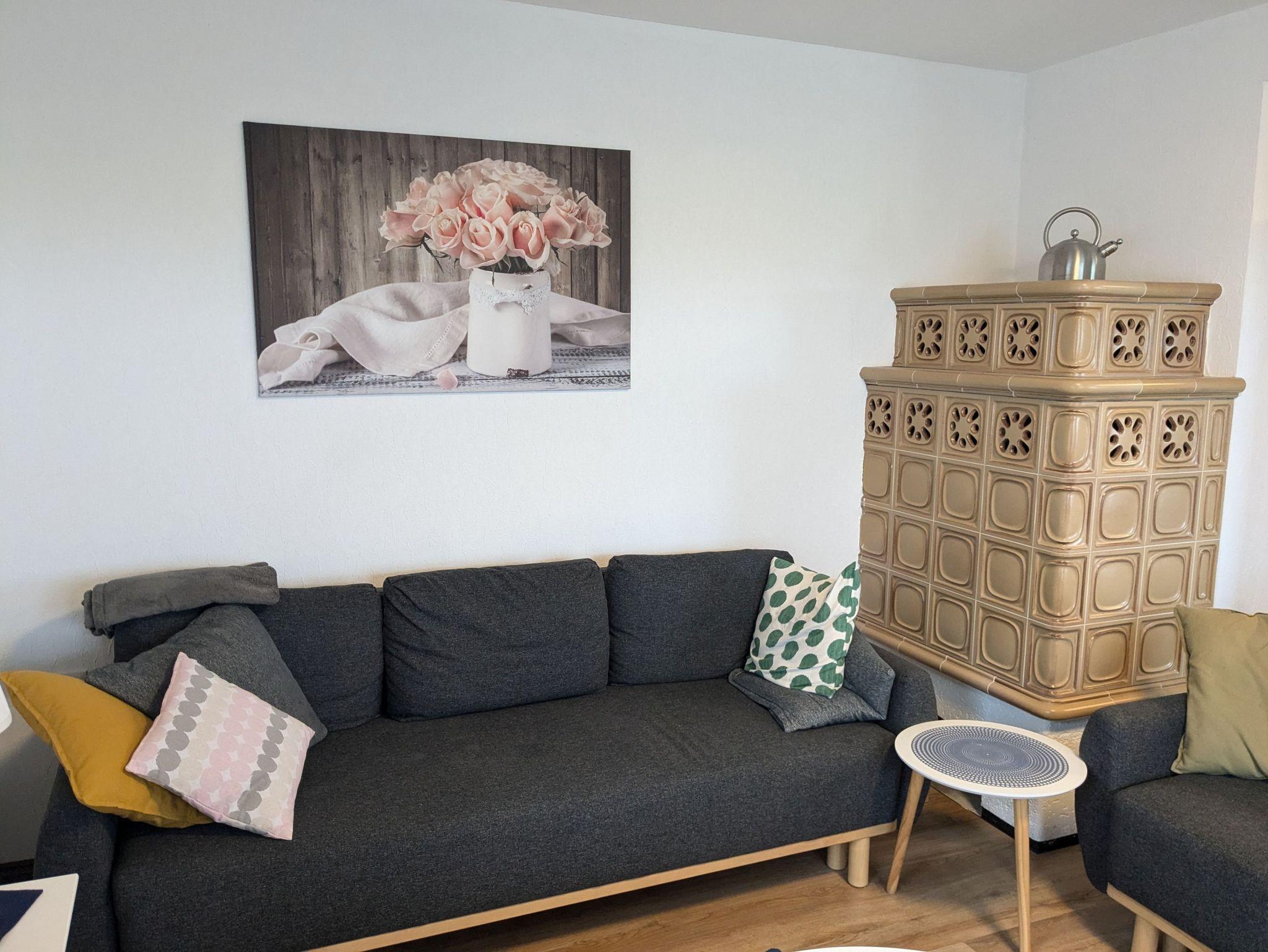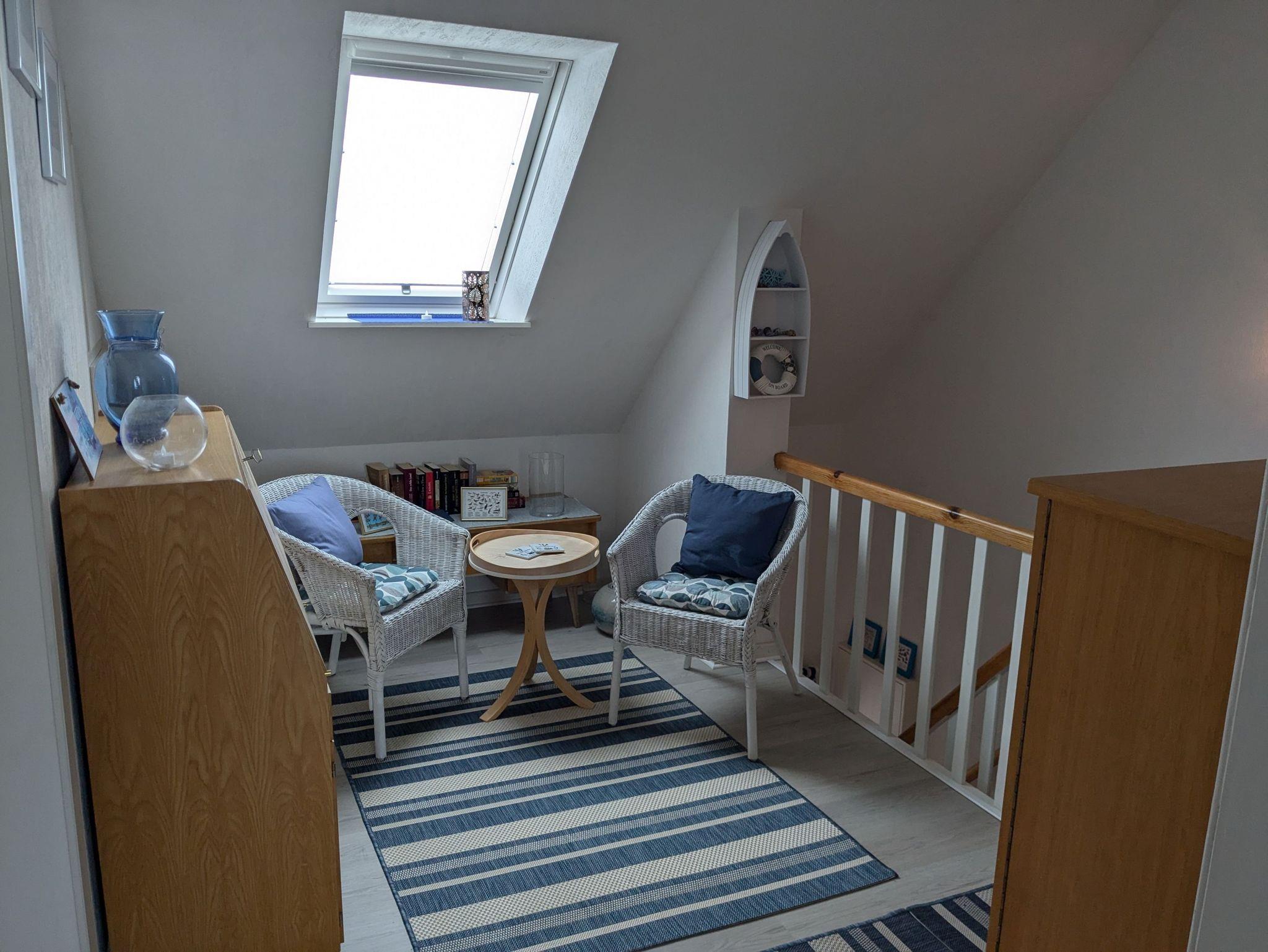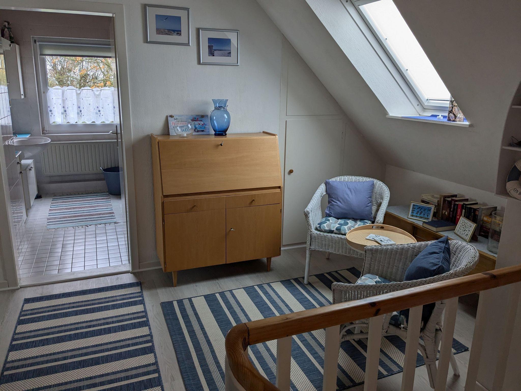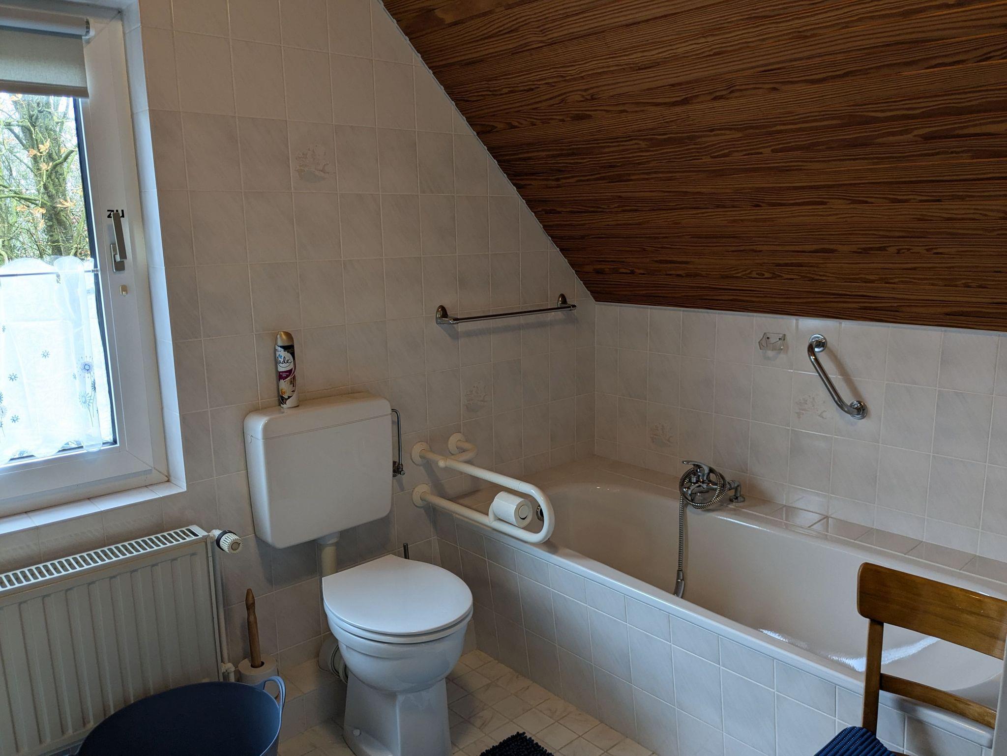 1-6 Personen finden auf rund 140 qm in 2 gemütlichen Zimmern mit Doppelbett (200cmx200cm) und 1 Zimmer mit Queensize-Doppelbett (160cm x 200cm) Platz. Zusätzlich steht noch 1 Zimmer mit bequemem Schlafsofa (140cm x 200cm) zur Verfügung. Ein Babybett sowie ein Hochstuhl für die kleinen Gäste sind ebenfalls vorhanden. Hunde sind herzlich willkommen. Unser Haus ist gemütlich im Mix and Match Stil eingerichtet, der alte und neue Möbelstücke vereint. Es ist voll ausgestattet, mit kostenlosem WLAN und viel Platz, Spülmaschine, Gefrierschrank, Heißluftfritteuse, Backofen, 2 x Flachbild-TV, Waschmaschine und Haartrockner. Der Wintergarten mit Blick in den Obstgarten lädt zum gemeinsamen Frühstück ein. Ein Strandkorb im Wintergarten sowie eine Leseecke im OG sind die perfekten Rückzugsorte zum Verweilen mit einem guten Buch. Im Wohnzimmer sorgt der Kachelofen für eine heimelige Atmosphäre. Der große Tisch im Essbereich ist hervorragend zum gemeinsamen Essen, für einen geselligen Spieleabend oder auch als Team-Arbeitsplatz geeignet. Das Haus verfügt über ein Duschbad im EG und ein großes Badezimmer mit Dusche und Badewanne.