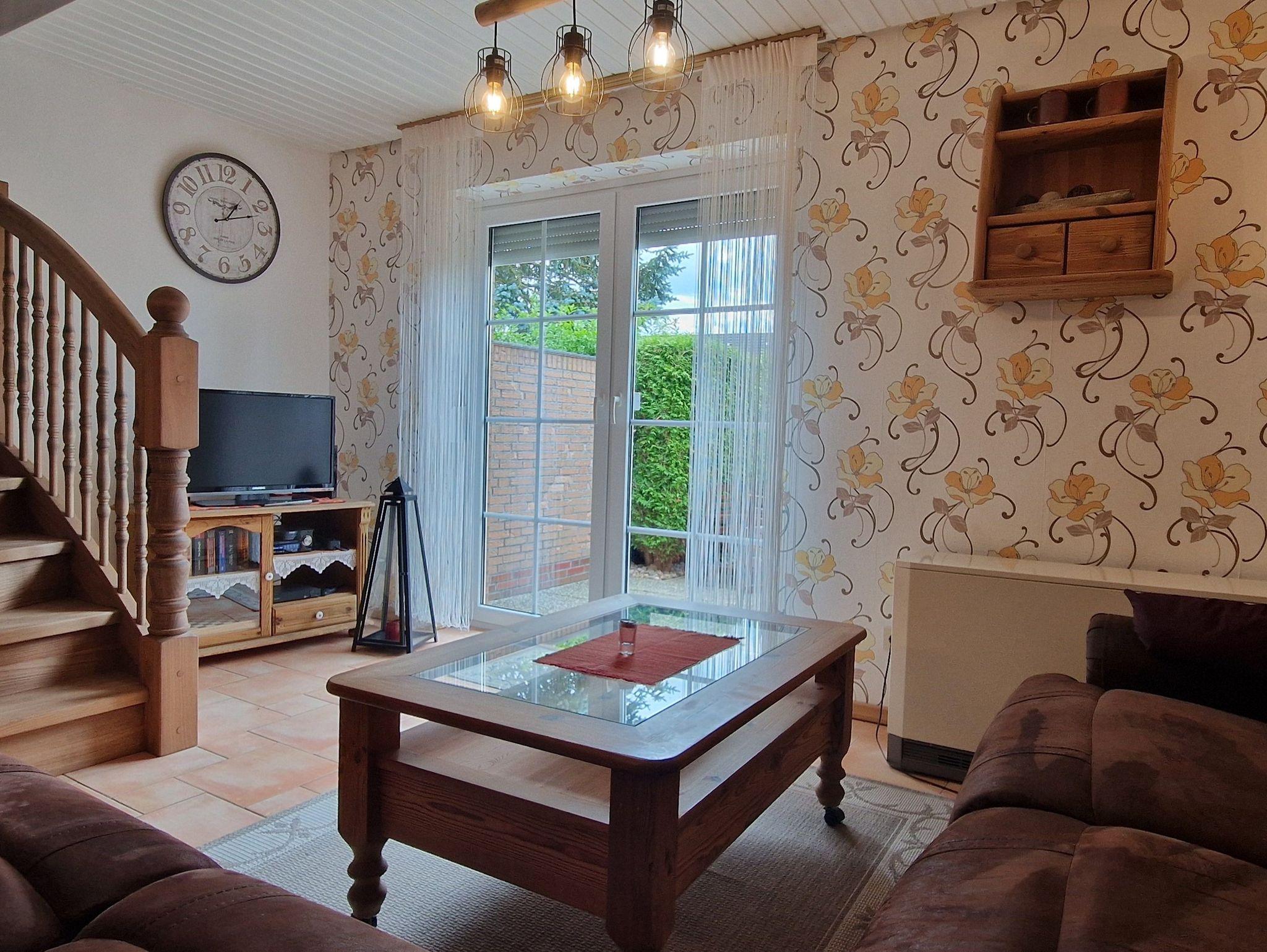 Diese Doppelhaushälfte mit großem Garten und einer nach Süden ausgerichteten, möblierten Terrasse ist ruhig und ortsnah gelegen. Ideal für einen Urlaub mit Hund, oder um die zahlreichen Radwege der Region zu erkunden. Ein Garage bietet Ihnen unter anderem eine Unterstellmöglichkeiten für Ihre Fahrräder. Ein PKW-Abstellplatz befindet sich direkt vor dem Haus. Alle Fenster sind mit Rollläden ausgestattet.