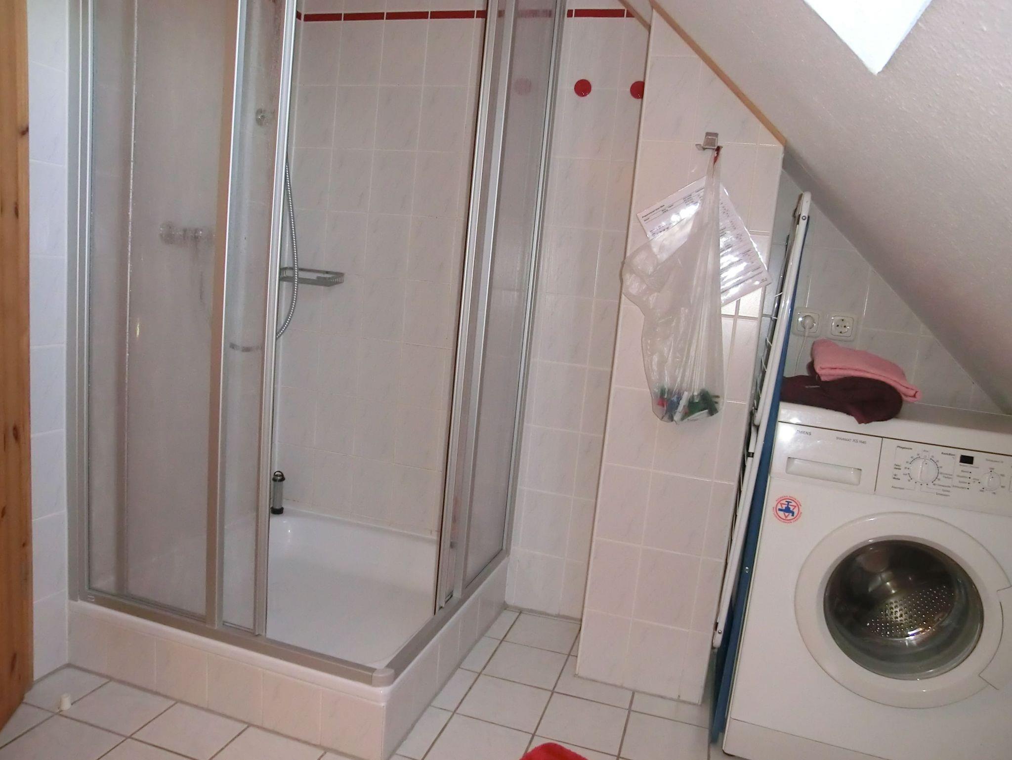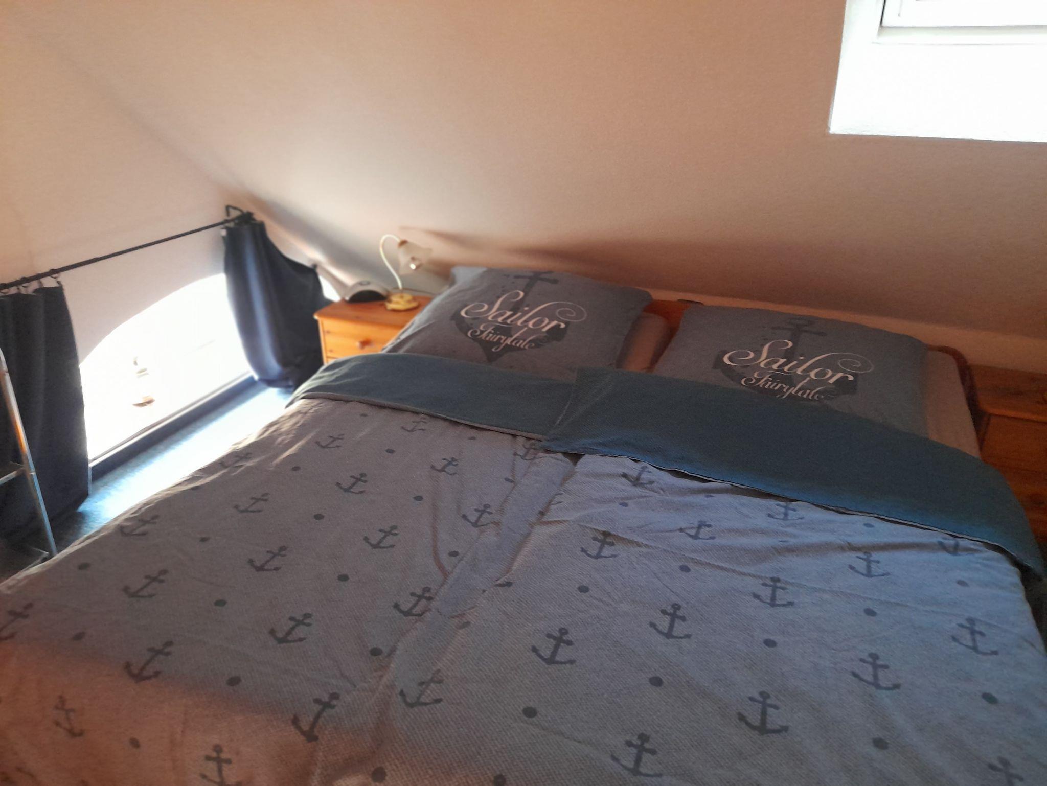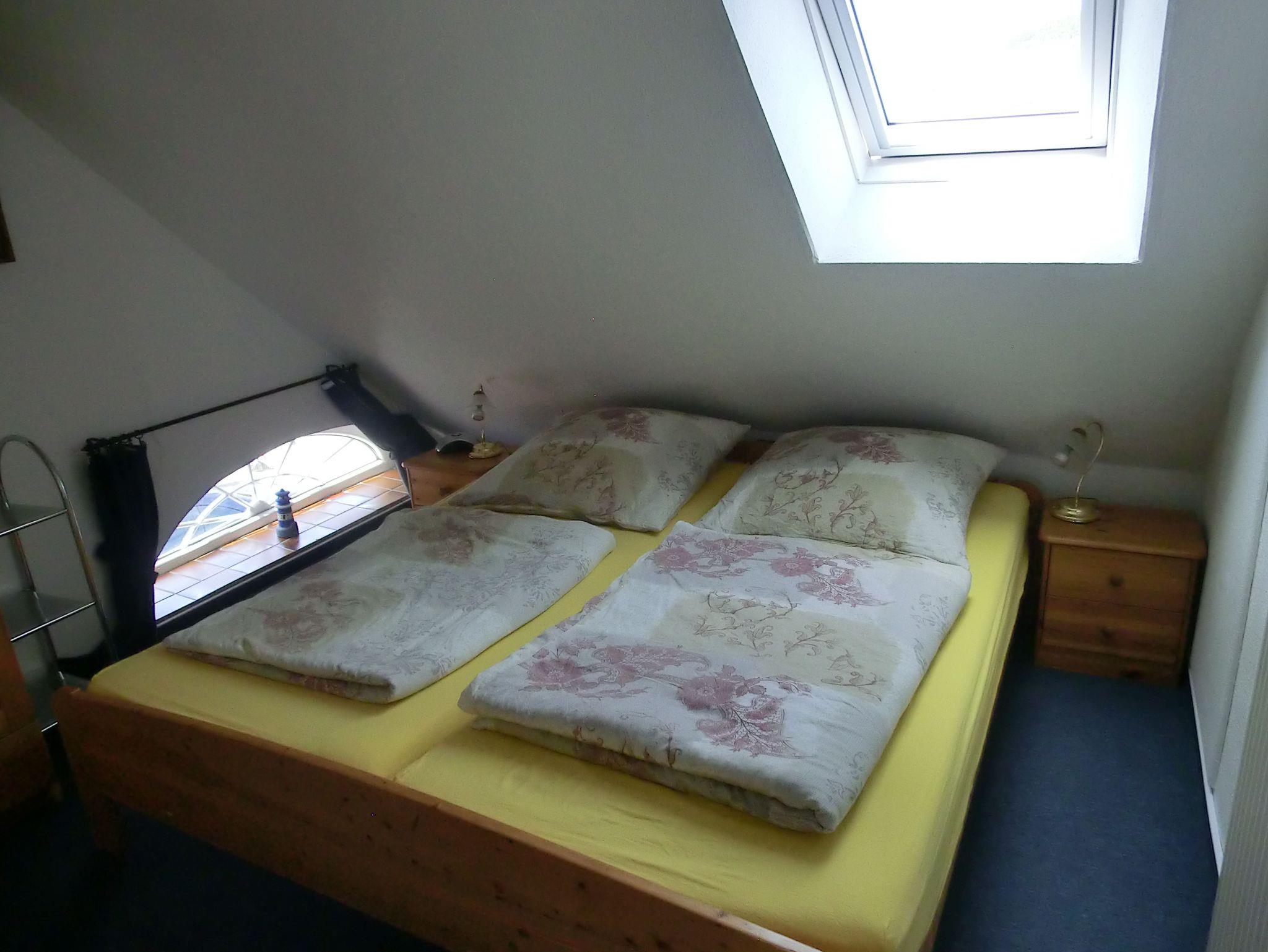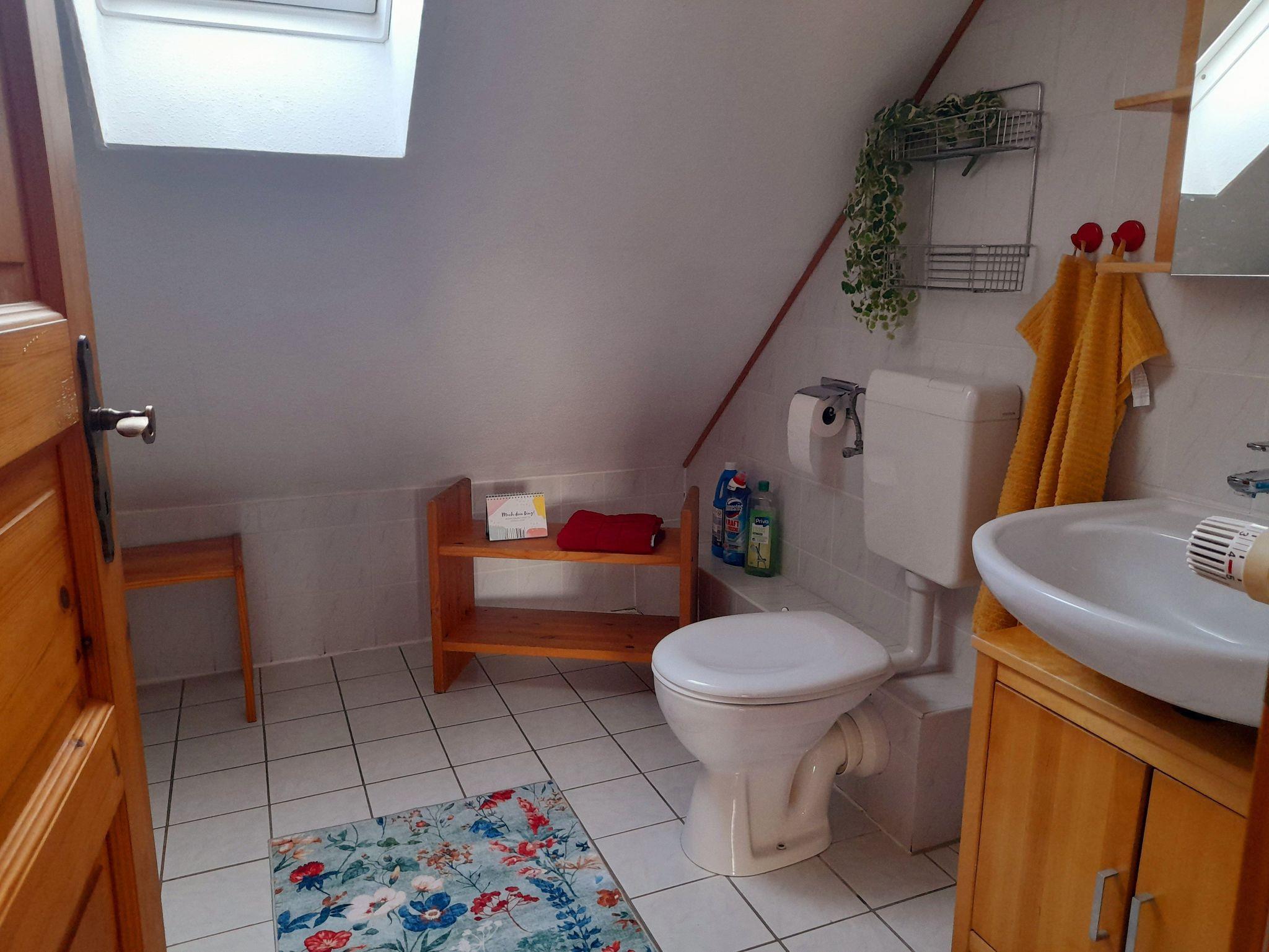 Die Dachgeschosswohnung hat eine Wohnfläche von ca. 42 m2 und befindet sich im ersten Stock. Sie besteht aus einem gemütlichen Wohnraum mit Südbalkon zum Garten gelegen,welcher über eine große Ecksitzgruppe mit Schlaffunktion verfügt, falls der schnarchende Partner mal das Schlafzimmer verlassen muß, Küchenzeile mit Essplatz, geräumiges Duschbad/WC mit Waschmaschine, Schlafzimmer mit Doppelbett, offene Schlafkoje im Spitzboden, welche über eine Treppe im Wohnzimmer zu erreichen ist. Ein Abstellraum, ein abschliessbares Gartenhaus und ein der Wohnung zugeordneter PKW-Stellplatz (Nr. 6), sowie Kinderreisebett und Hochstuhl stehen zur Verfügung.