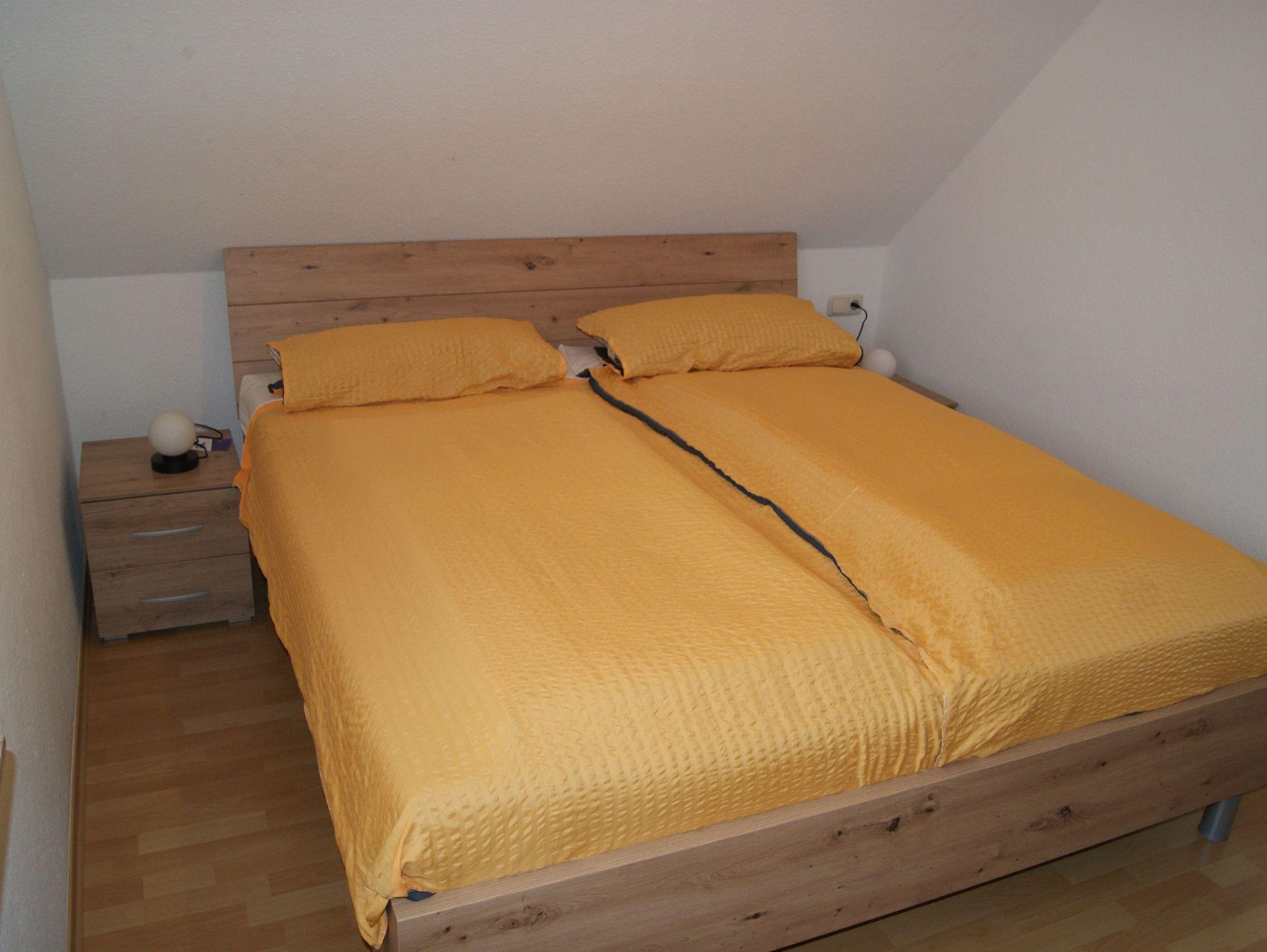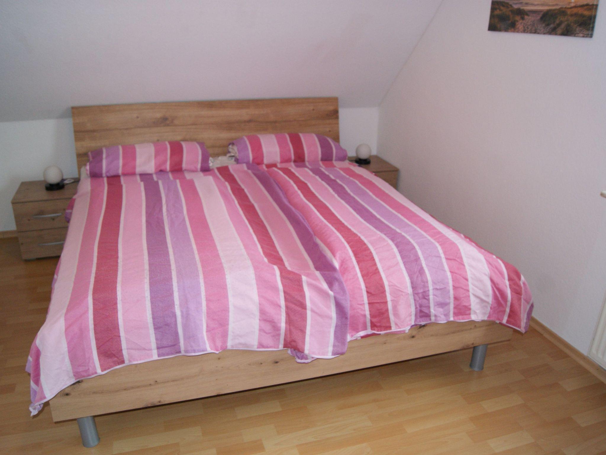 Reihenhaushälfte aufgeteilt in 3 Etagen; EG: sep. Küche, Wohn-Esszimmer, Gäste-WC, Abstellraum; OG: Elternschlafzimmer, Kinderzimmer mit 2 Betten und 1 Kinderbett, Bad mit Dusche, WC, Waschmaschine; DG: Kinderzimmer mit 3 Betten. Juli und August Vermietung nur von Samstag zu Samstag. Bettwäsche und Handtücher bitte mitbringen. Alle Preise zzgl. Gästebeitrag (Kurtaxe).