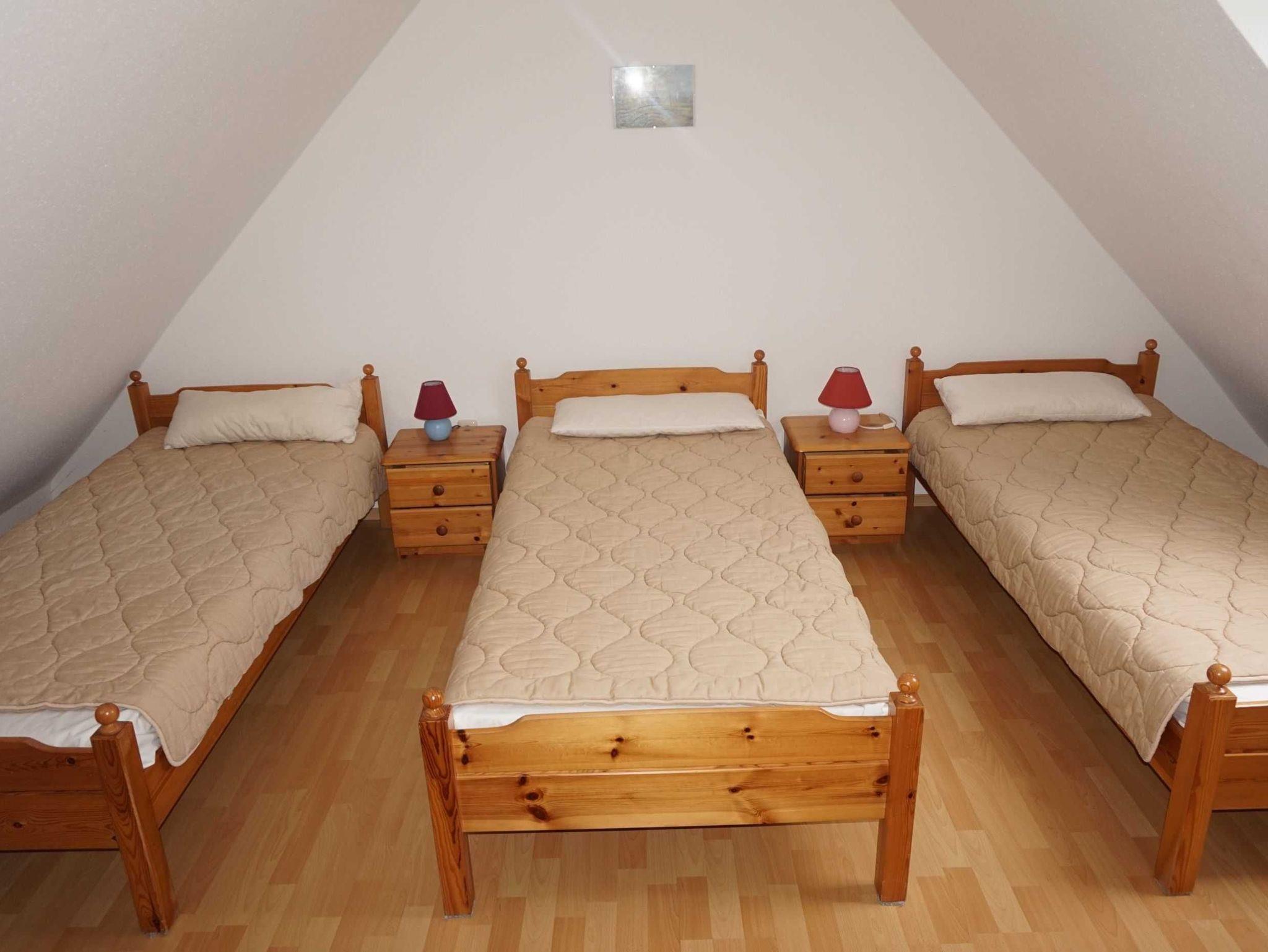 Reihenhaushälfte aufgeteilt in 3 Etagen; EG: sep. Küche, Wohn-Esszimmer, Gäste-WC, Abstellraum; OG: Elternschlafzimmer, Kinderzimmer mit 2 Betten und 1 Kinderbett, Bad mit Dusche, WC, Waschmaschine; DG: Kinderzimmer mit 3 Betten. Juli und August Vermietung nur von Samstag zu Samstag. Bettwäsche und Handtücher bitte mitbringen. WLAN im Haus.