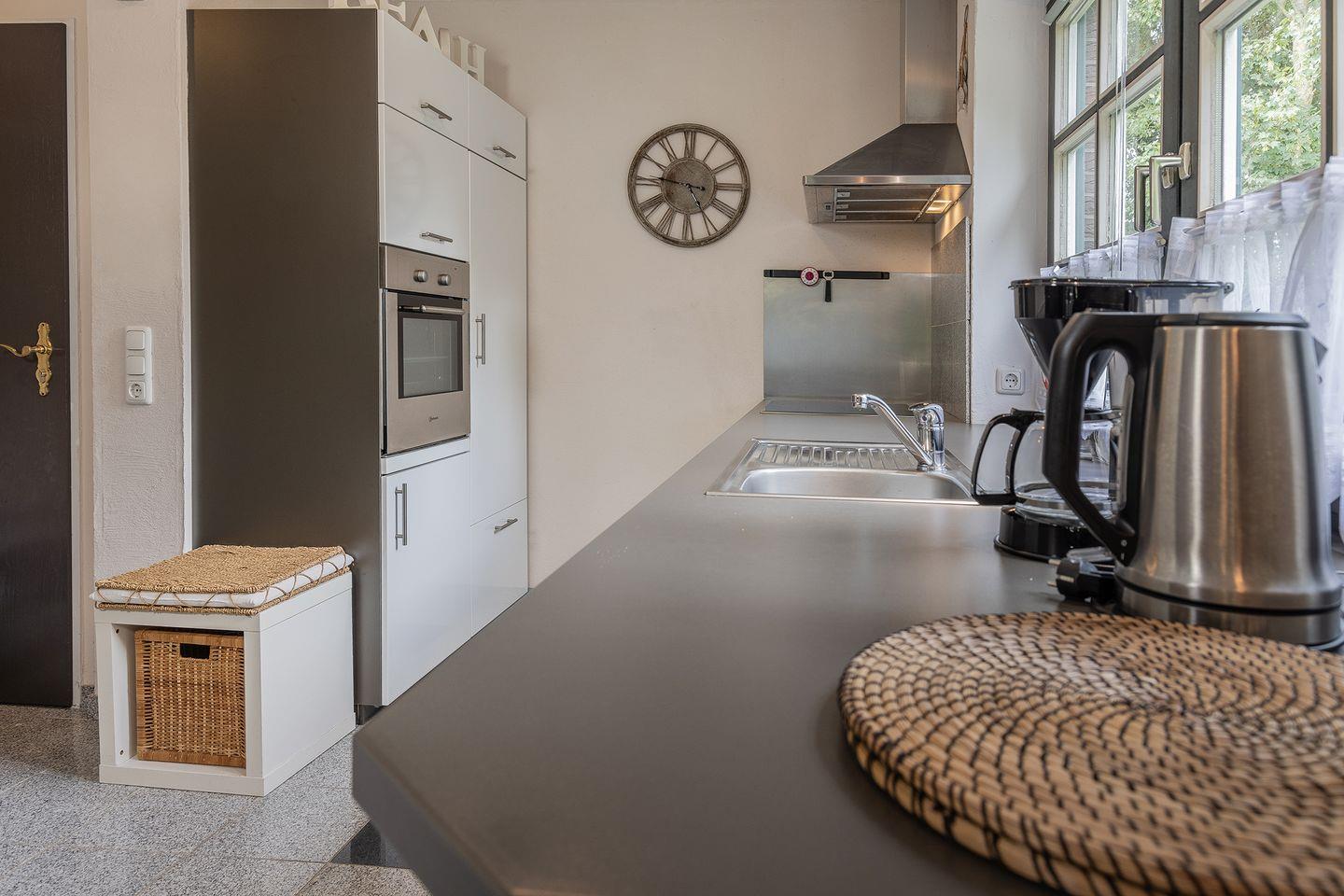 Offene Küche ( Durchgang zum Wohnzimmer) mit Spülmaschine, Backofen, Mikrowelle etc.,