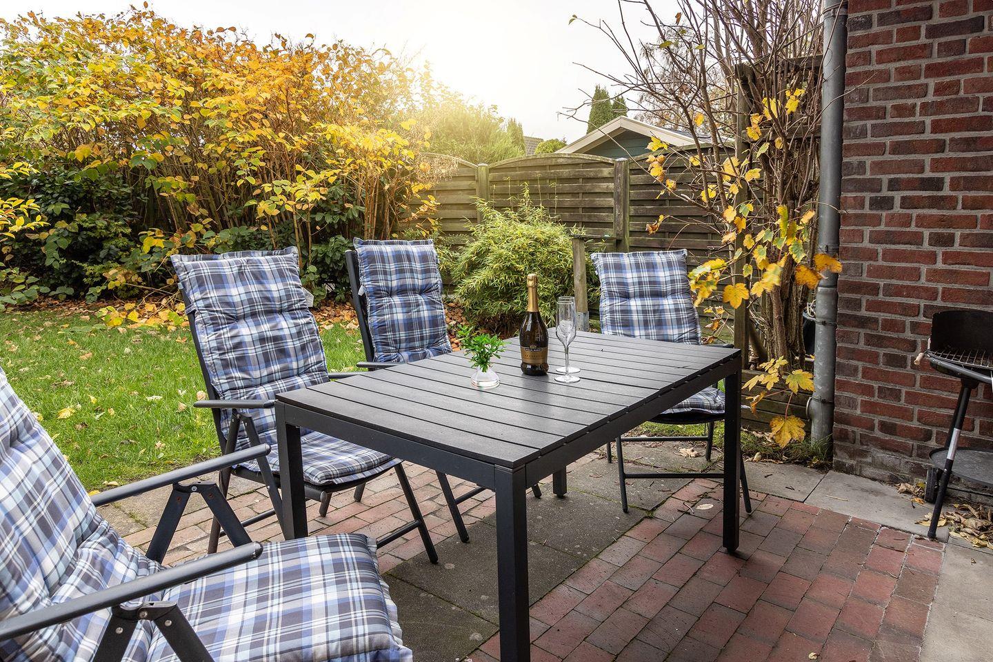 - Ausgang zum Garten mit möblierter Terrasse und Grill