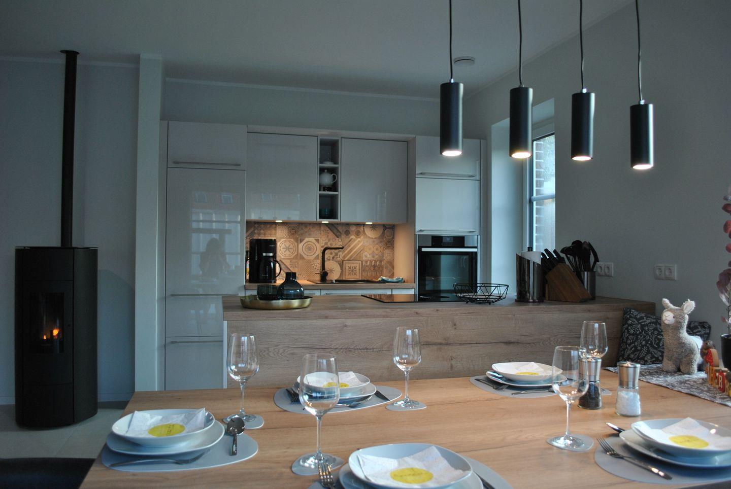 Im Erdgeschoss befindet sich neben dem Schlafzimmer und dem Badezimmer ein großzügiger Wohn- und Essbereich mit einer vollwertig ausgestatteten Küche.