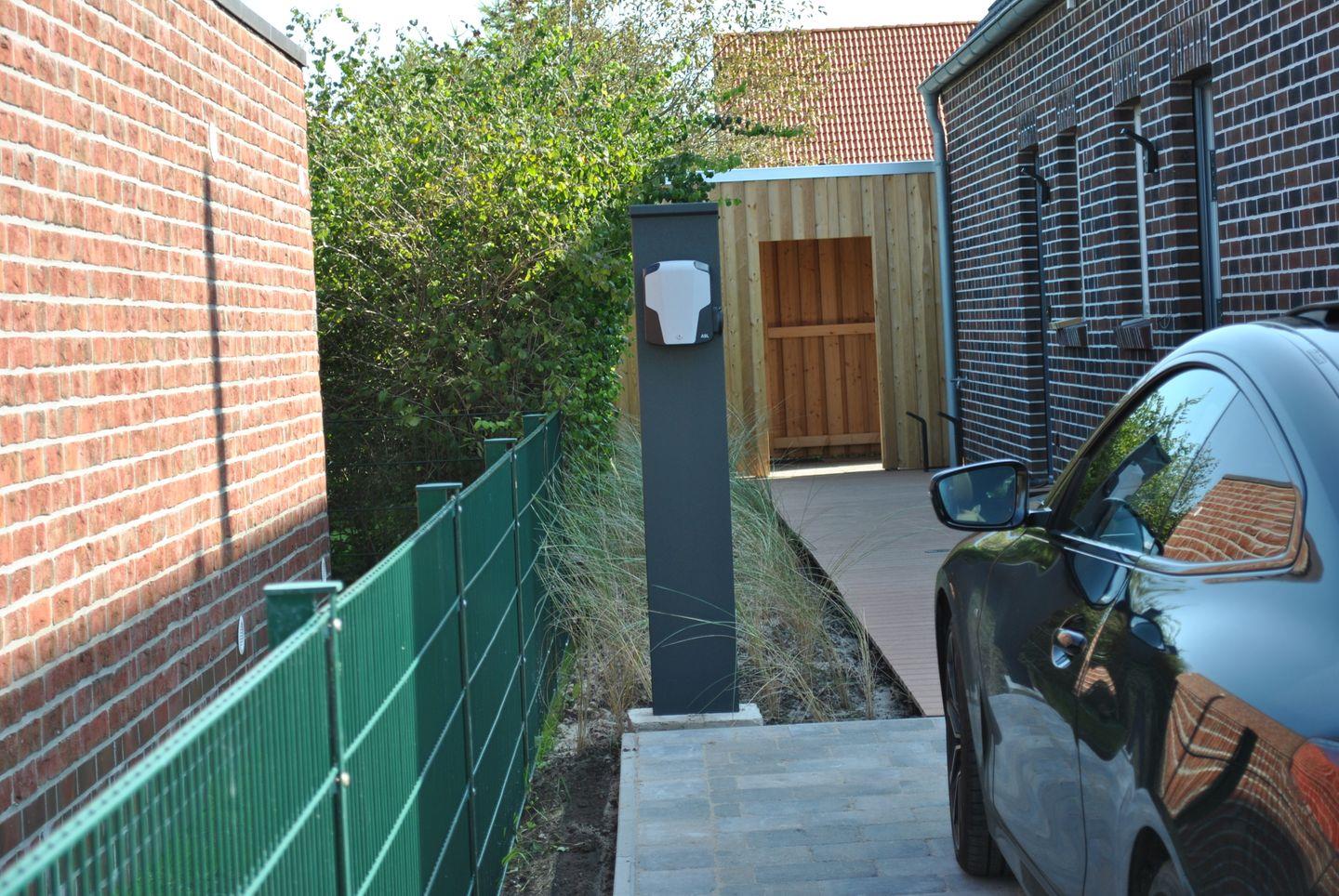 Zum Haus gehört ein eigener Parkplatz mit einer Komfortgröße von 3,5 m Breite. Gegen eine Gebühr kann auch das E-Auto an der dort angebrachten Wall-Box geladen werden.