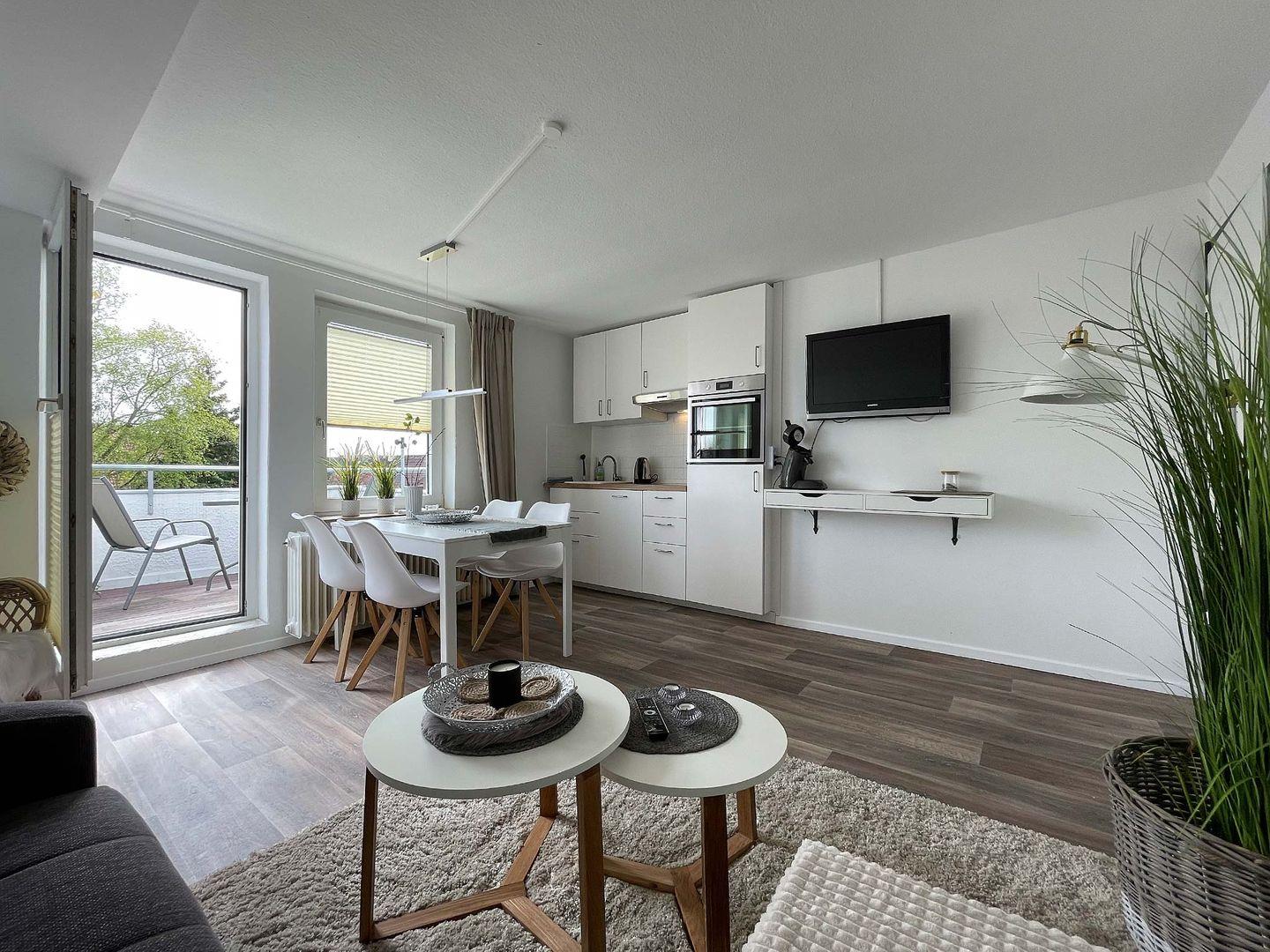 Die helle und modern eingerichtete Ferienwohnung mit sonnigem Balkon zur Gartenseite bietet viel Platz für 3 Erwachsene und 1 Kleinkind. Im großen Wohnraum mit komplett eingerichteter Küchenzeile und sonnigem Essplatz können Sie den Urlaub herrlich genießen. Im Elternschlafzimmer befinden sich ein bequemes Doppelbett,(Topper 160 x 200 cm) Kleiderschrank und ein Kinderreisebett. Im 2. Schlafraum fühlt sich ein weiterer Erwachsener wohl. Im Bad mit Fenster finden Sie neben Waschbecken und Dusche auch eine Waschmaschine mit Trockner. Das WC ist separat.