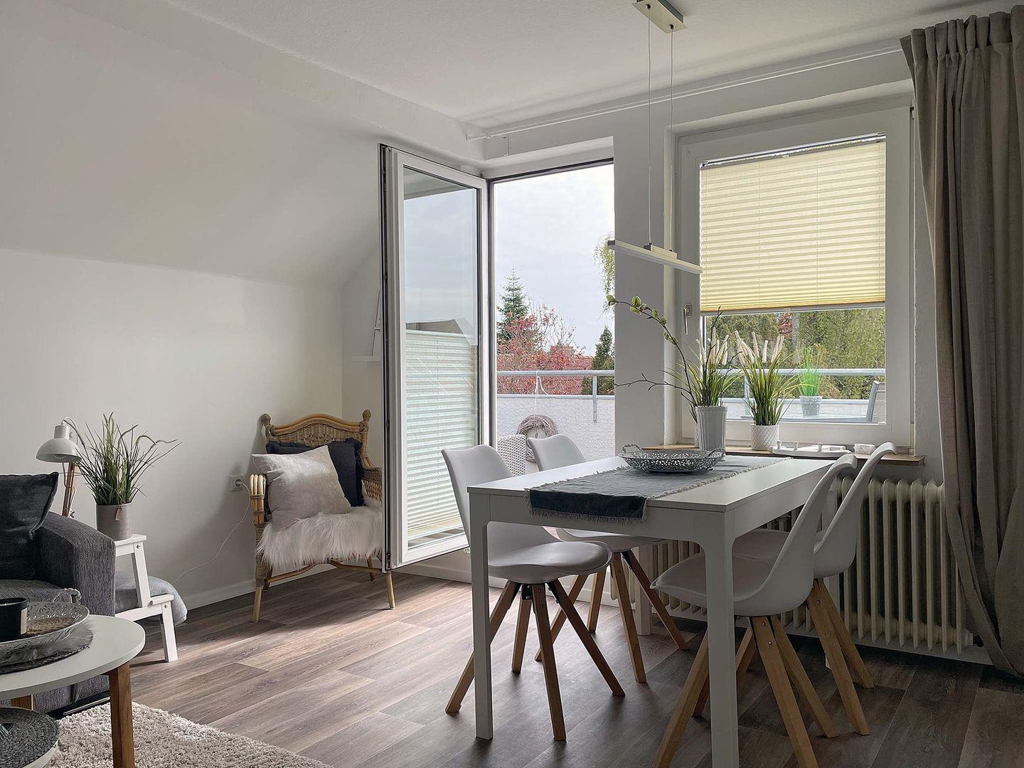 Die komplette Einrichtung lässt keine Wünsche offen. Der schöne Balkon bietet freien Blick in den grünen Garten und lädt zum Sonnen und Relaxen ein.