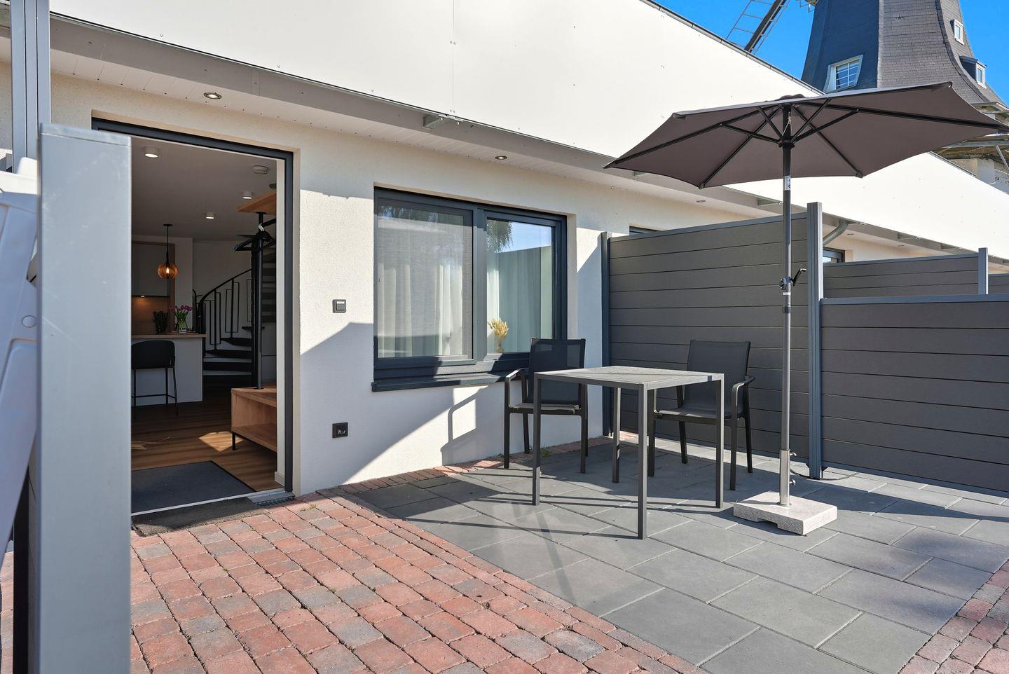 Die geschmackvoll eingerichtete offene Küche und das großzügige Wohnzimmer laden zum Entspannen und Verweilen ein. Auf der Terrasse oder dem Balkon können Sie die frische Nordseeluft genießen und in idyllischer Umgebung entspannen.