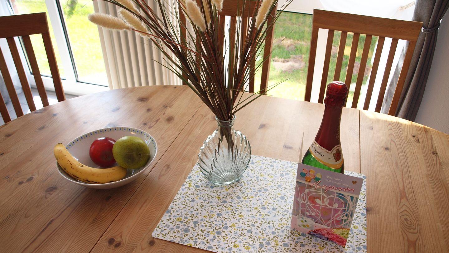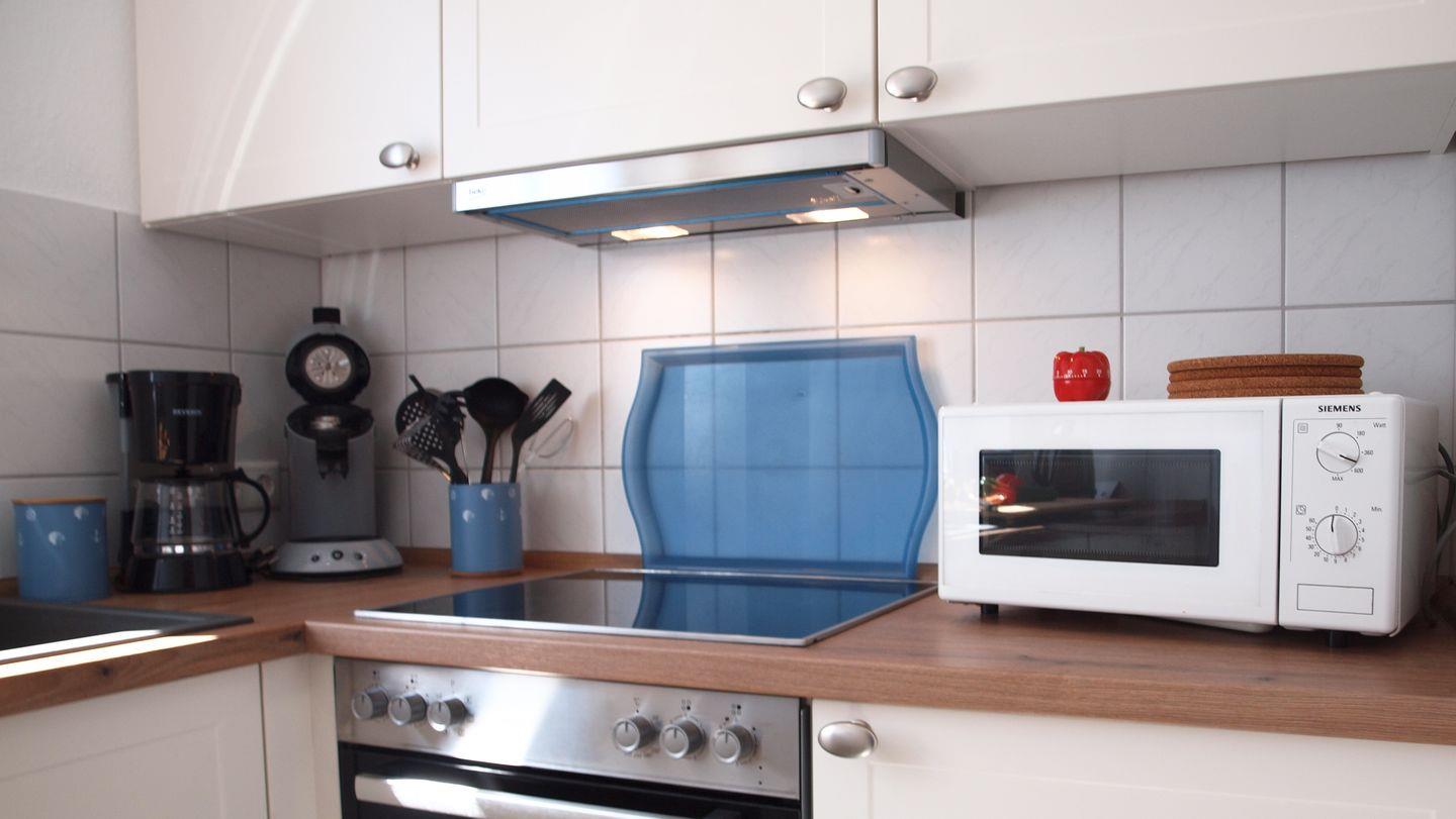 Die geschlossene Küche ist bestens ausgestattet, wenn Sie gern selbst kochen: Ceran-Herd, Backofen (elektrisch), Mikrowelle, Spülmaschine, Kühlschrank mit Gefrierfach, Kaffeemaschine, Senseo-Espressomaschine, Toaster sowie Küchenutensilien, Geschirr und Besteck sind vorhanden. Auch an praktische Details wie Abfalleimer, Geschirrhandtücher, Staubsauger, Wäscheständer, Bügeleisen und Bügelbrett wurde gedacht. Für längere Aufenthalte oder aktive Urlaubstage stehen Waschmaschine und Trockner zur Verfügung, auf Wunsch ergänzt durch Wäscheservice.