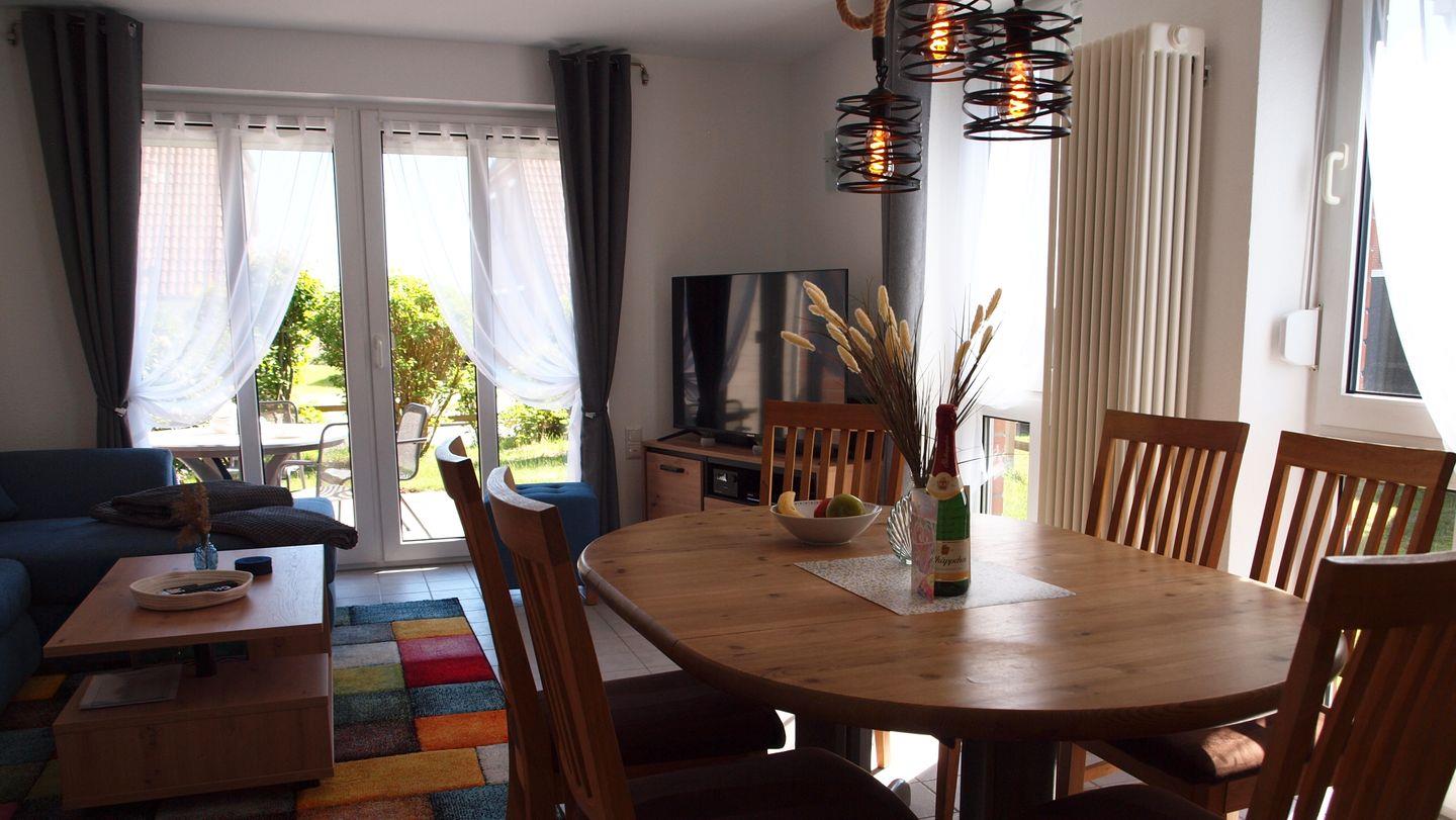 DAT BOOTSHUUS in Carolinensiel ist die passende Adresse für alle, die Nordsee-Feeling mit Komfort und viel Platz verbinden möchten. In dem Nichtraucherhaus erwarten Sie insgesamt 3 Zimmer, davon 3 separate Schlafzimmer, ein gemütliches Wohnzimmer mit Sofaecke sowie ein einladender Essbereich – ideal für Familien oder Freunde. Bis zu 6 Personen finden hier angenehme Schlafmöglichkeiten; für die Kleinsten stehen zudem 1 Babybett, 1 Kinderhochstuhl und eine Wickelauflage bereit. Ein Zustellbett ist ebenfalls verfügbar, und Jugendgruppen sind auf Anfrage willkommen.