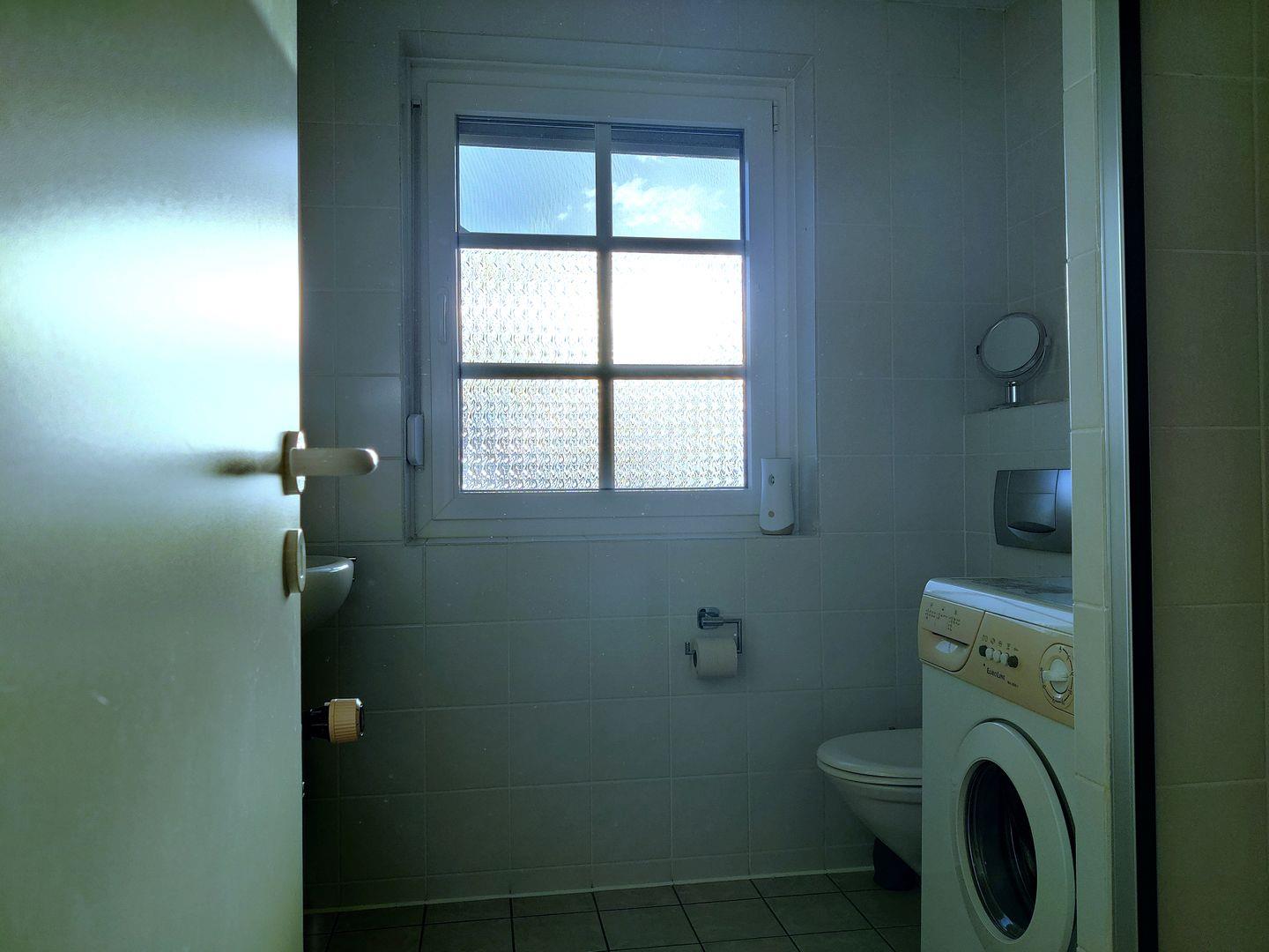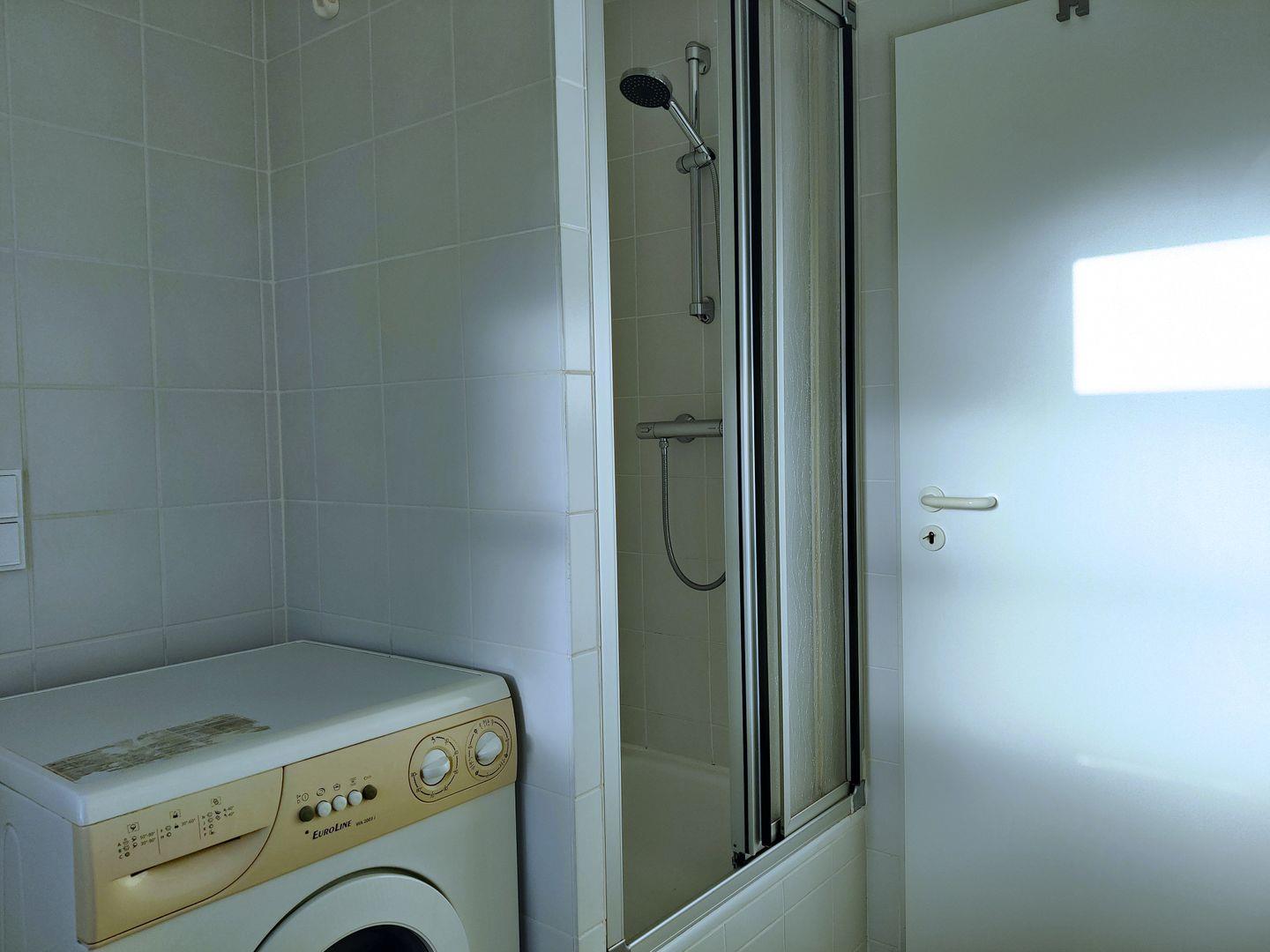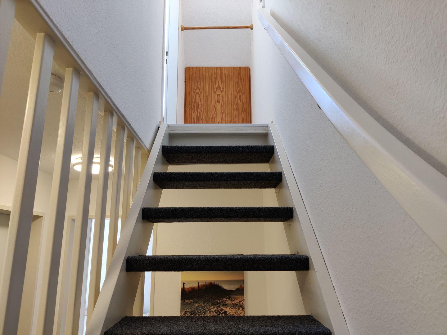 Im 1. Obergeschoss befinden sich zwei Schlafzimmer: eines mit einem komfortablen Doppelbett (180 × 200 cm) und Kleiderschrank, sowie ein weiteres Schlafzimmer mit zwei Einzelbetten (90 × 200 cm), Wickeltisch und Kommode – ideal für Familien mit kleinen Kindern. Das Badezimmer ist mit Dusche, WC und Waschmaschine ausgestattet.