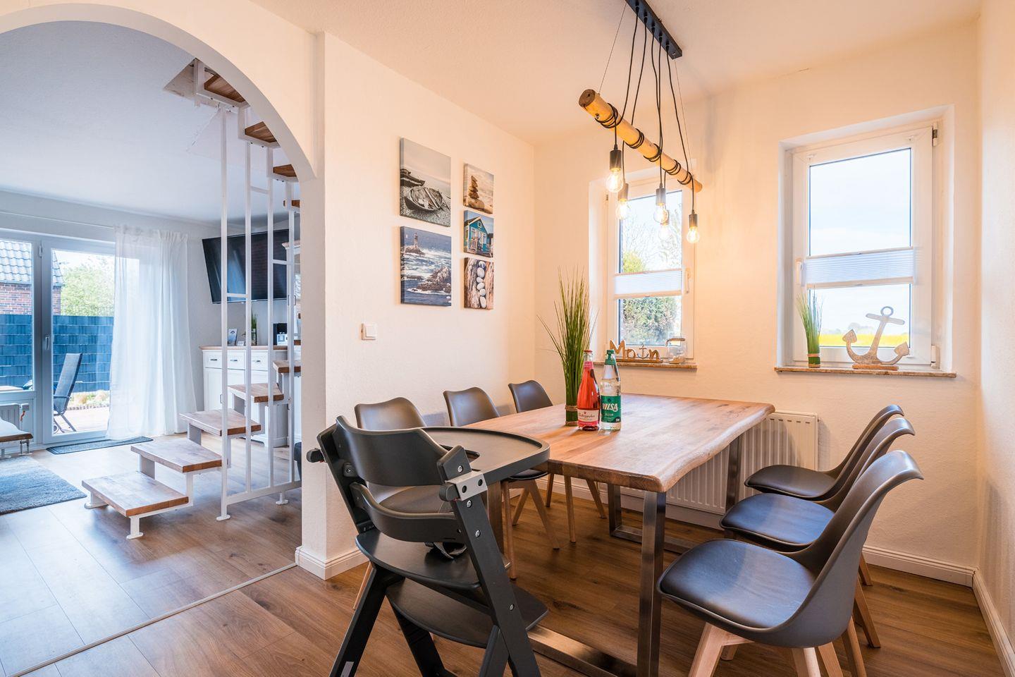 Exklusiver Traumurlaub im Ferienhaus „Steuerbord“ – stilvolles Ambiente und höchster Wohnkomfort für anspruchsvolle Gäste. Mit Kamin, Sonnenterrasse und direktem Zugang zur Harle.