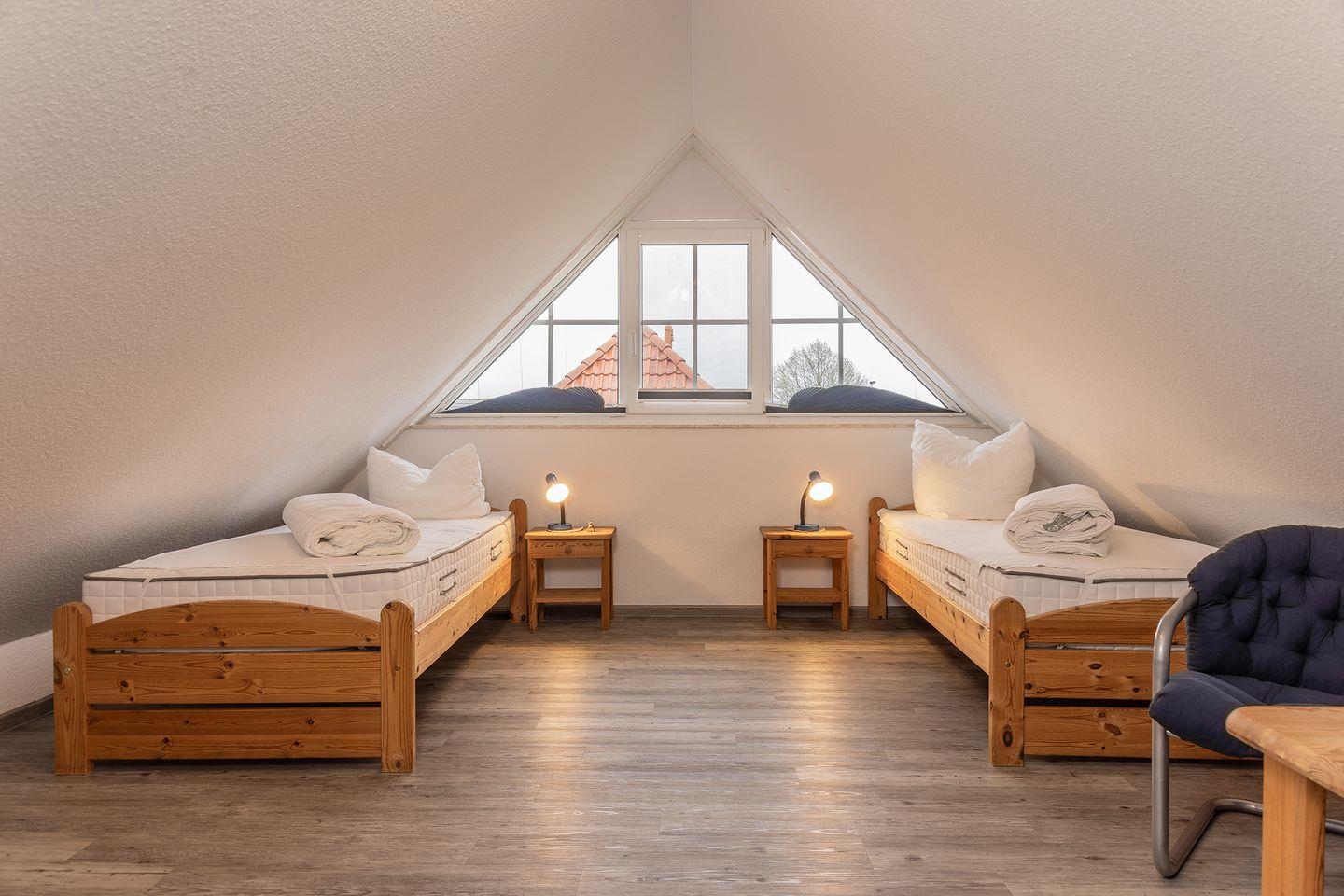 1 Schlafzimmer mit 2 Einzelbetten, zustellbares Kinderreisebett, Treppengitter für Kleinkinder
