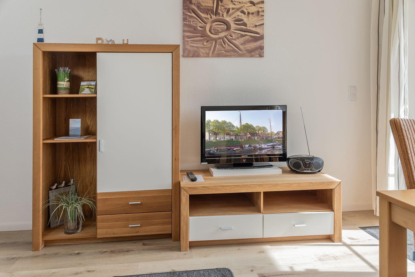 Heller Wohn-/Essbereich mit Sat-TV, Stereoanlage, Essplatz