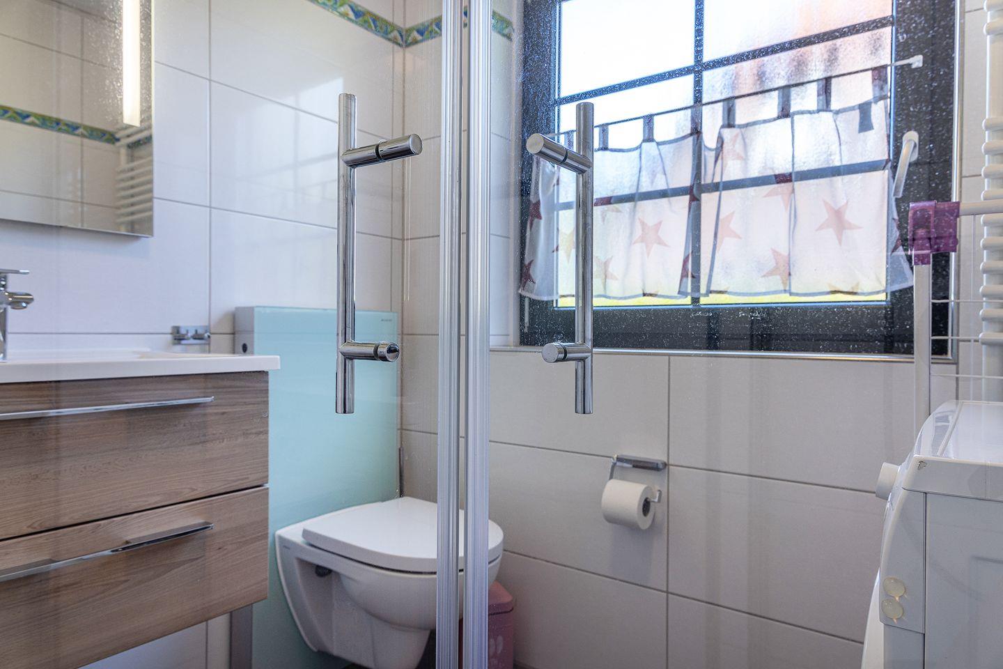 Separate Küche mit Spülmaschine etc., Kaffeemaschine und Senseoautomat, Essplatz mit 4 Stühlen, Kinderhochstuhl