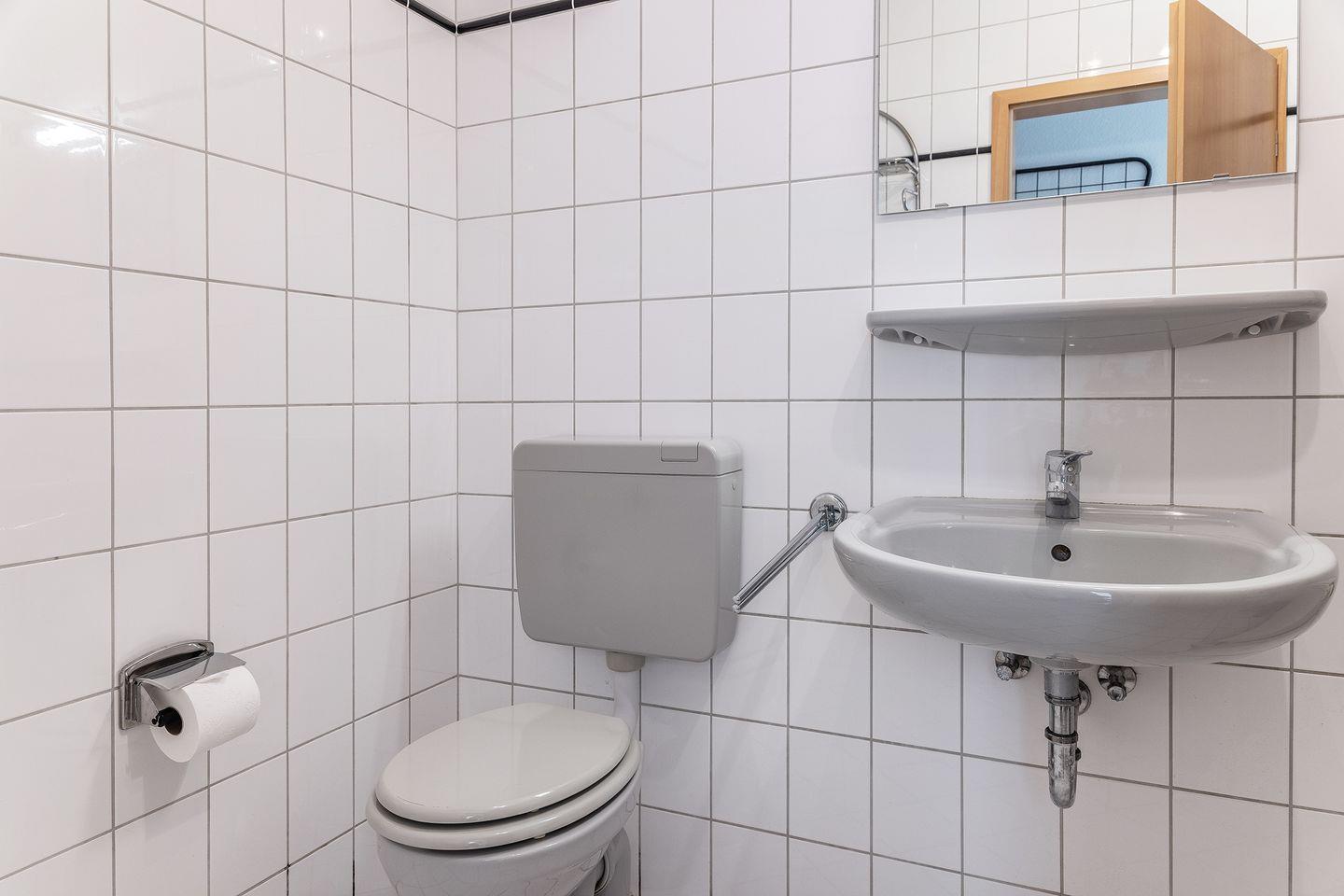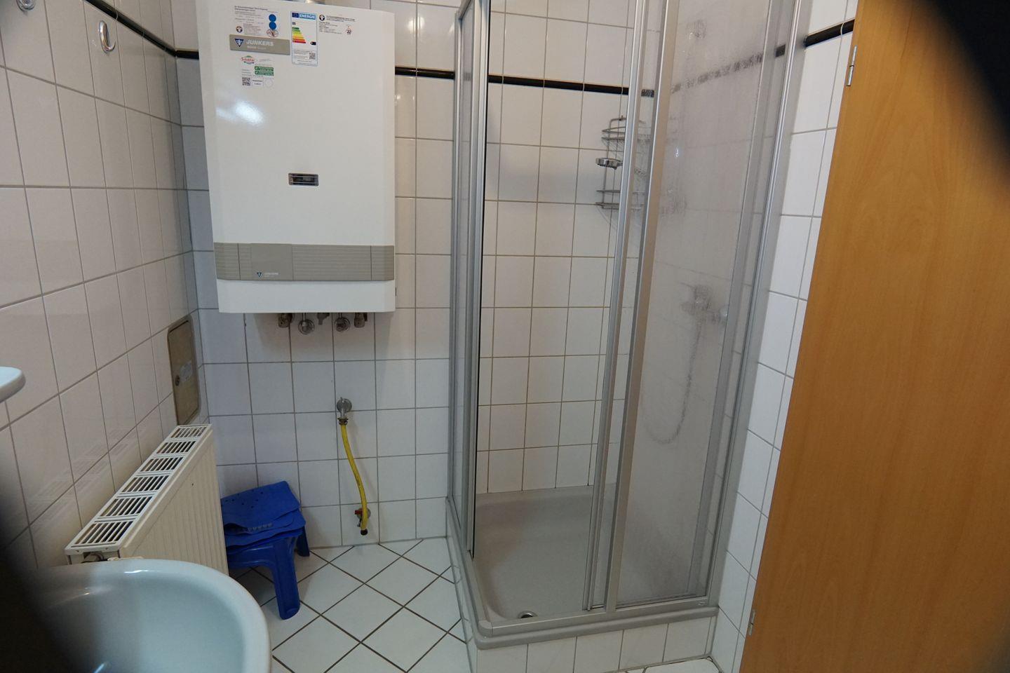 Bad mit Dusche und WC, Abstellraum, Terrasse mit Garten