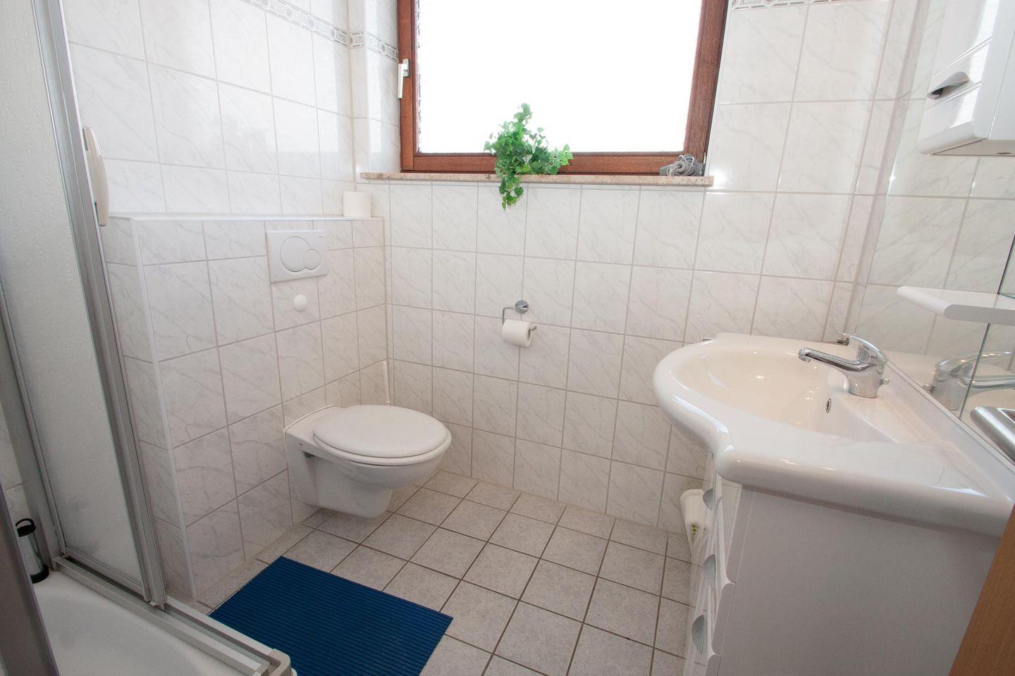 Bad mit Dusche und WC. Waschmaschine und Trockner stehen gegen Gebühr zur Verfügung.