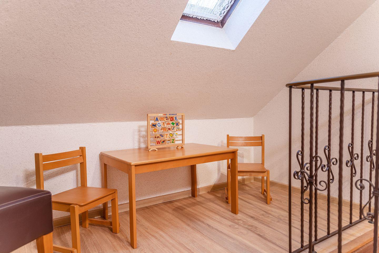 - Schlafzimmer mit Etagenbett (für Jugendliche) und ausziehbarem Kojenbett