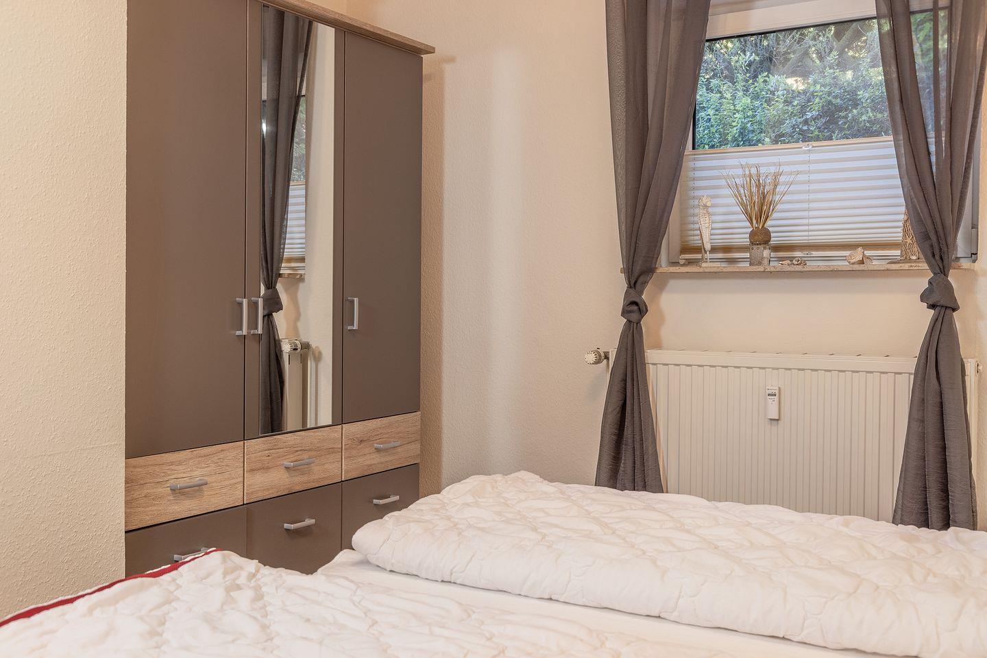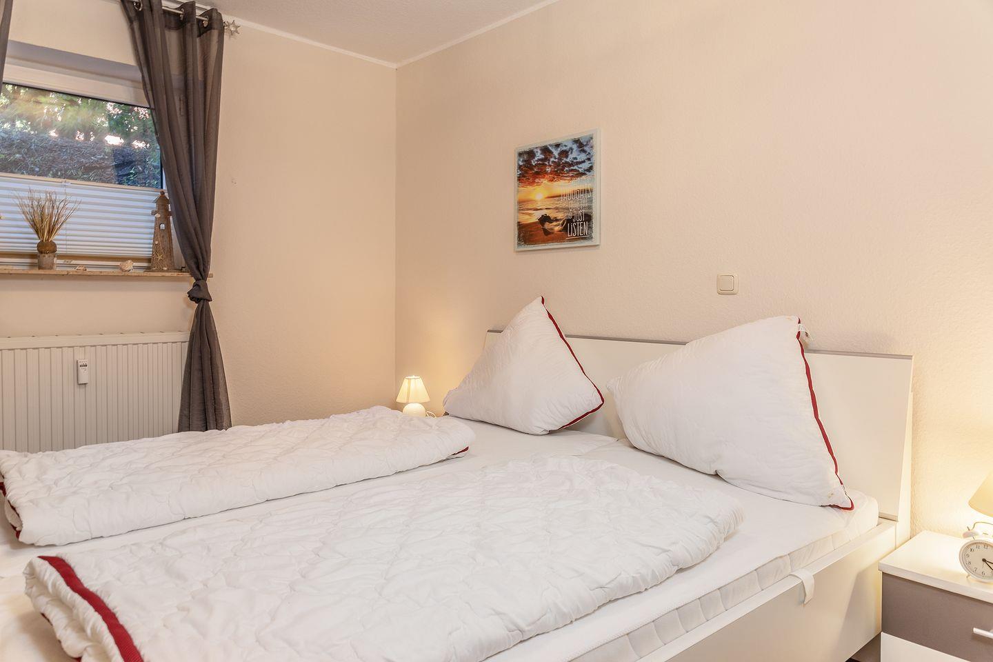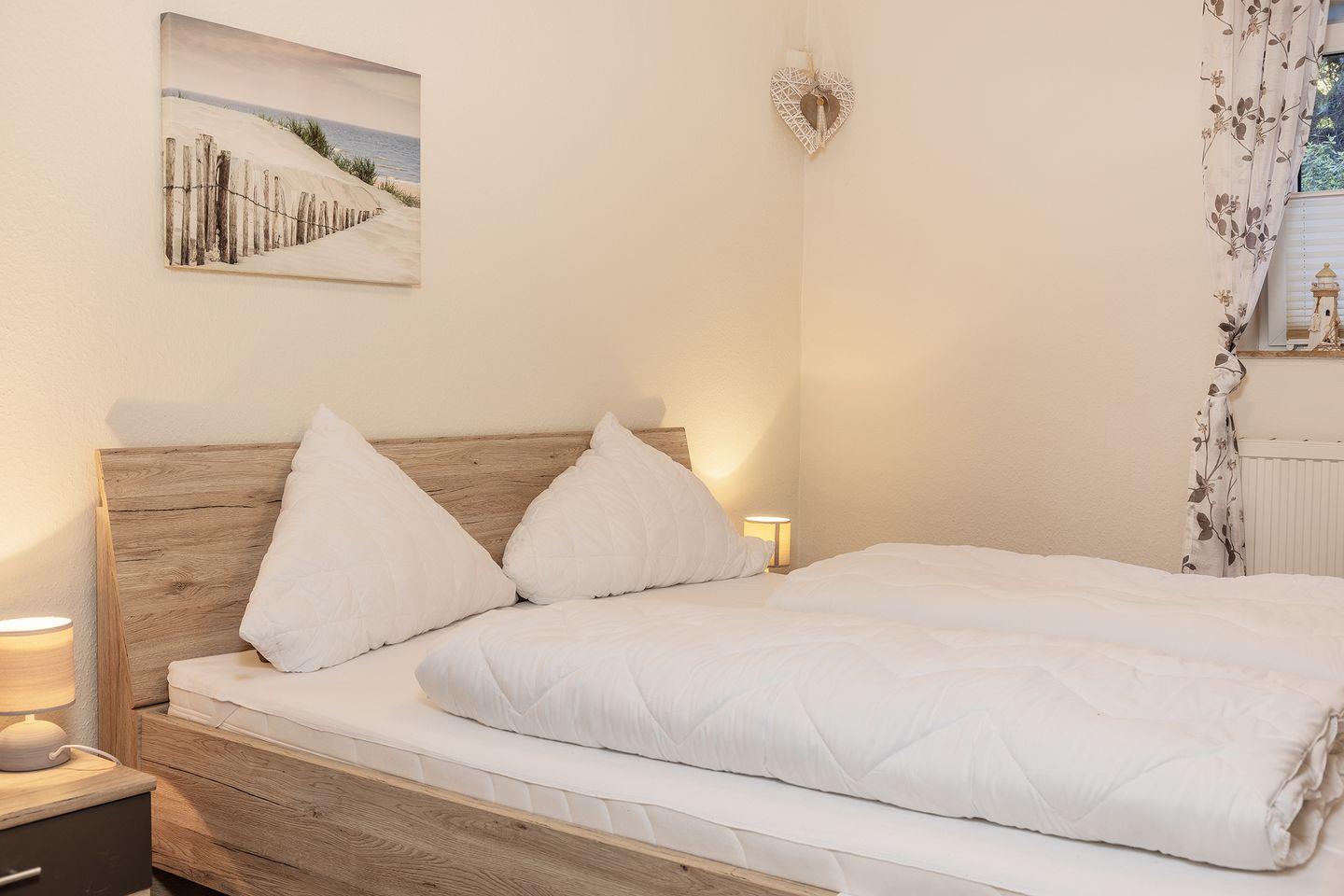 2 Schlafzimmer mit jeweils einem Doppelbett, zustellbares Kinderreisebett, Bad mit Dusche und WC.