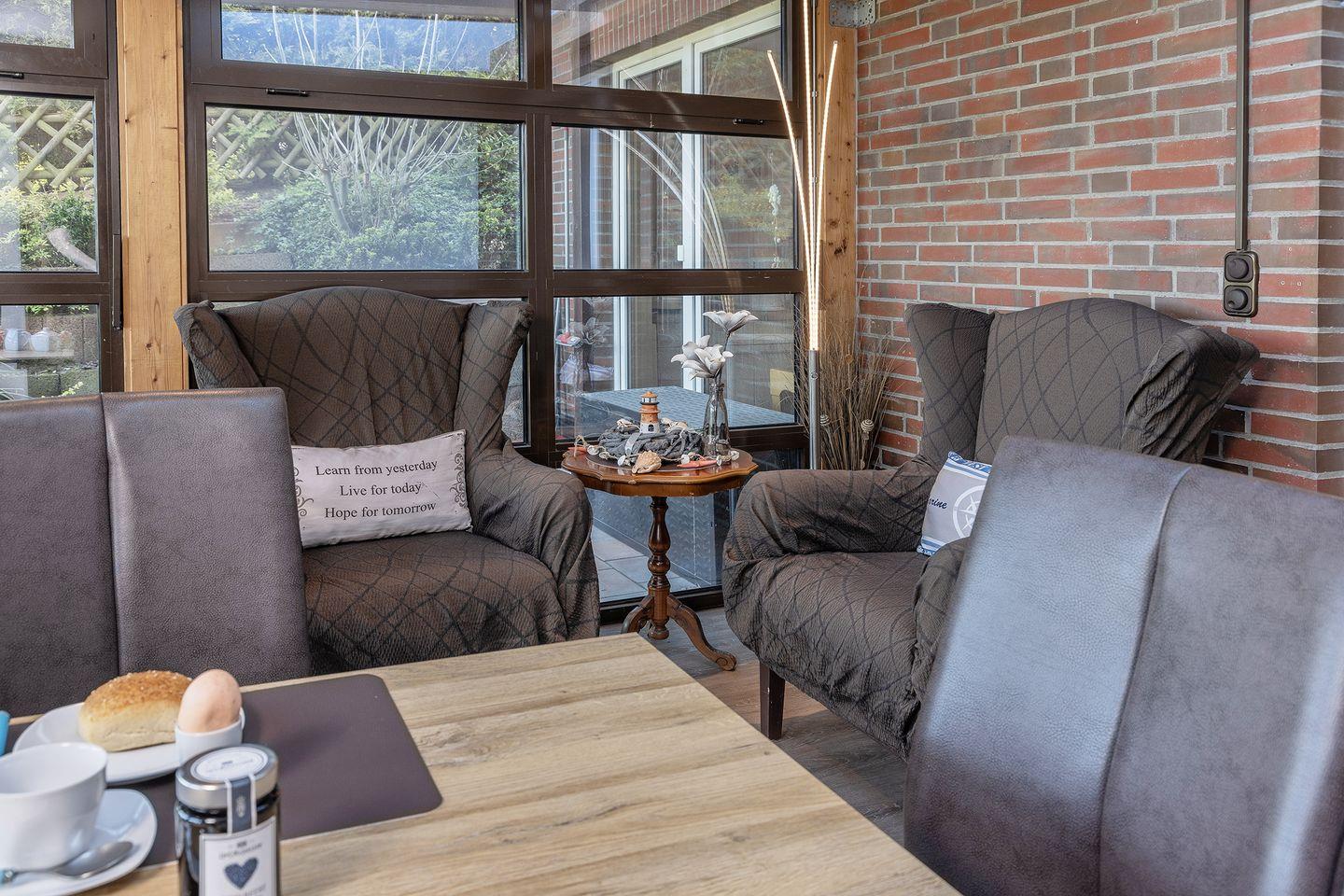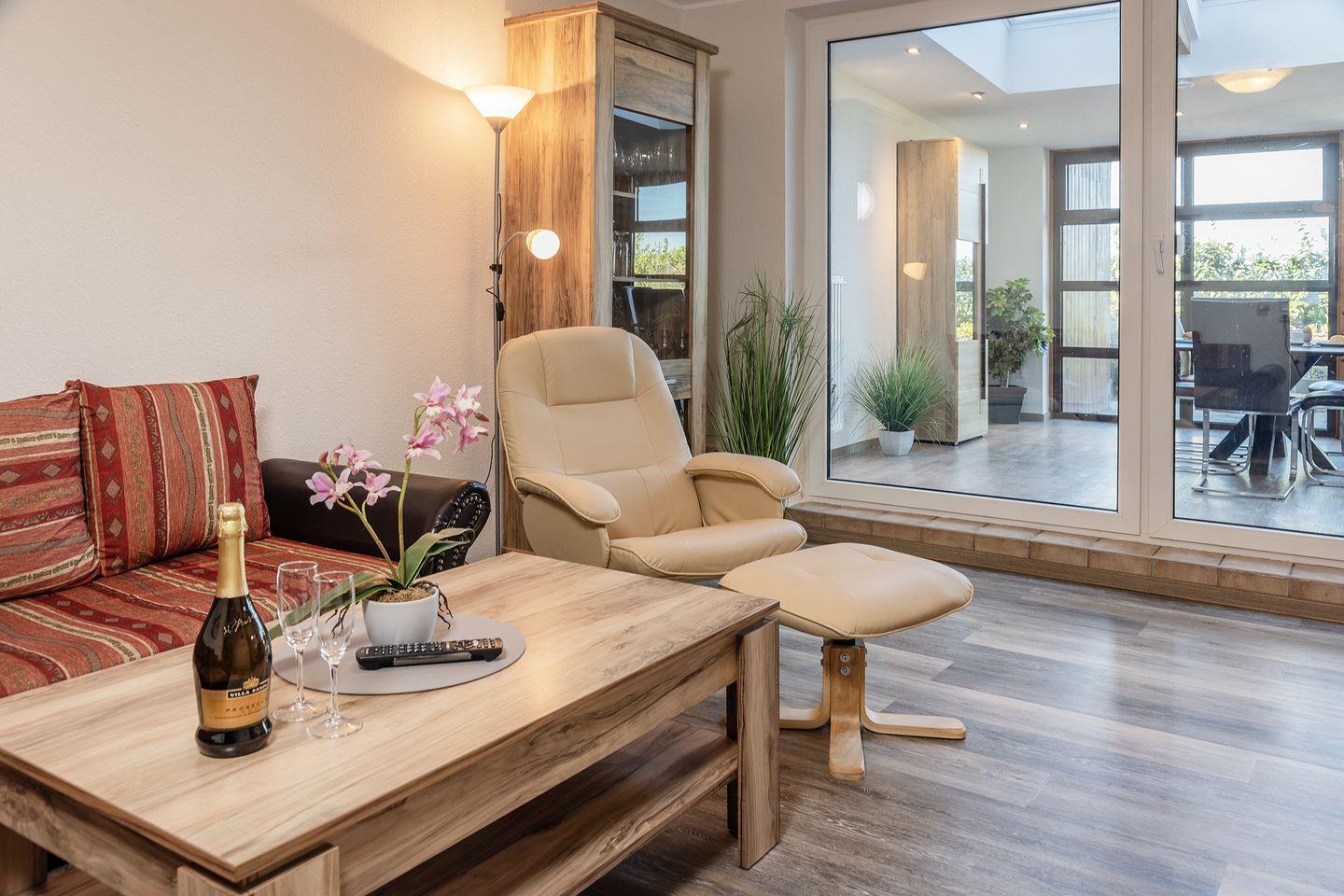Komplett ausgelegt auf Gemütlichkeit: Die Tiefparterre-Wohnung ist vor allem komfortabel und geschmackvoll eingerichtet. In dem herrlichen Wintergarten lassen sich so manche schöne Stunden verbringen und bei schönem Wetter lockt die teilweise überdachte Terrasse.