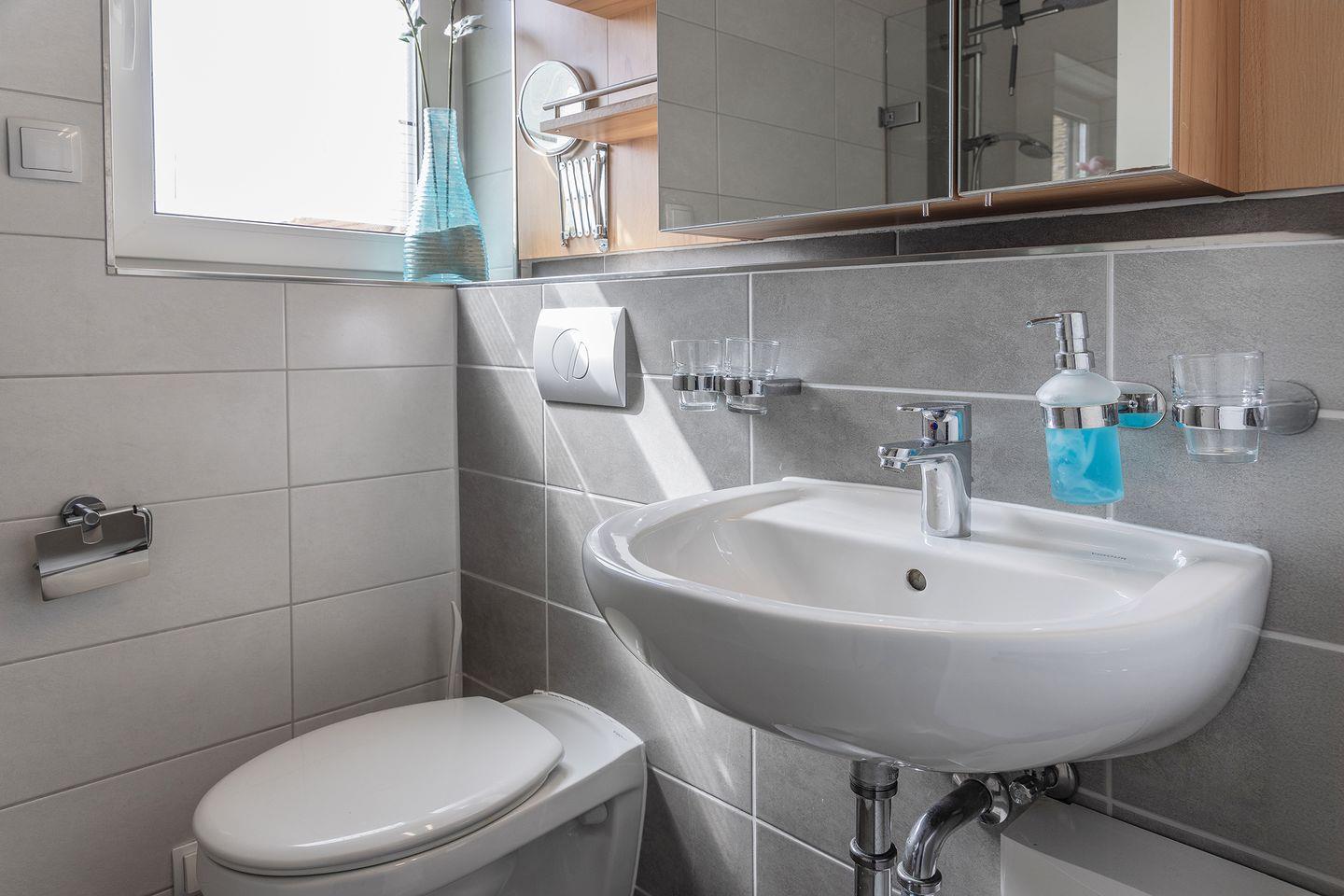 Bad mit Dusche und WC.