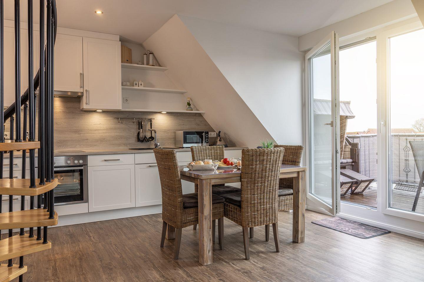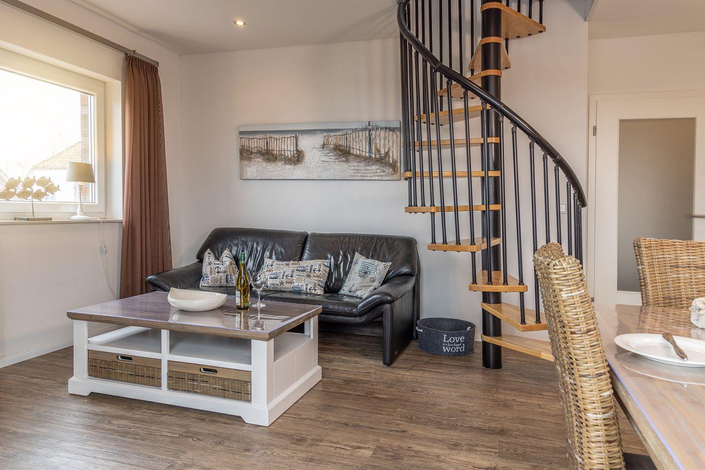 Neuzeitlich und modern: Die helle Wohlfühl- Obergeschoss-Maisonette- Wohnung (Neubau, bezugsfertig seid 04-2017) bietet Platz für 4 Personen und 1 Kleinkind. Auf dem kleinen, kuscheligen Balkon mit Strandkorb macht das Sonnenbaden richtig Spaß.