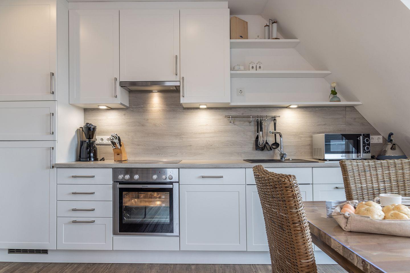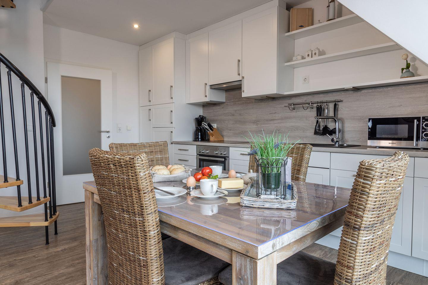 Angrenzende komplette Küchenzeile mit Spülmaschine etc. sowie Essbereich