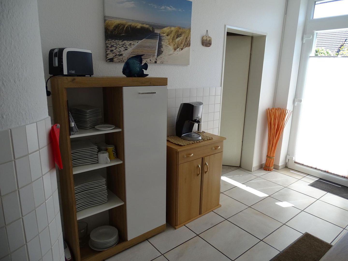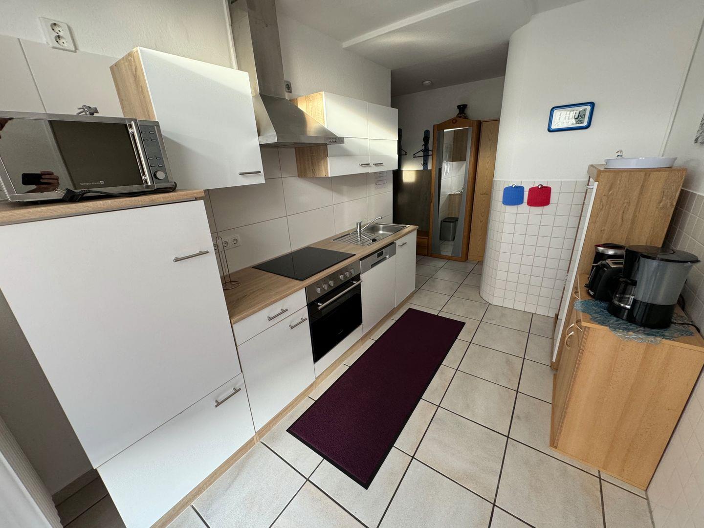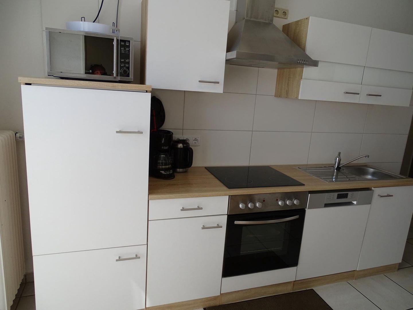 2 Küchen jeweils mit Spülmaschine, Mikrowelle und Herd mit Backofen, diverse Küchengeräte (Mikrowelle, Kaffeemaschine, Toaster etc.)