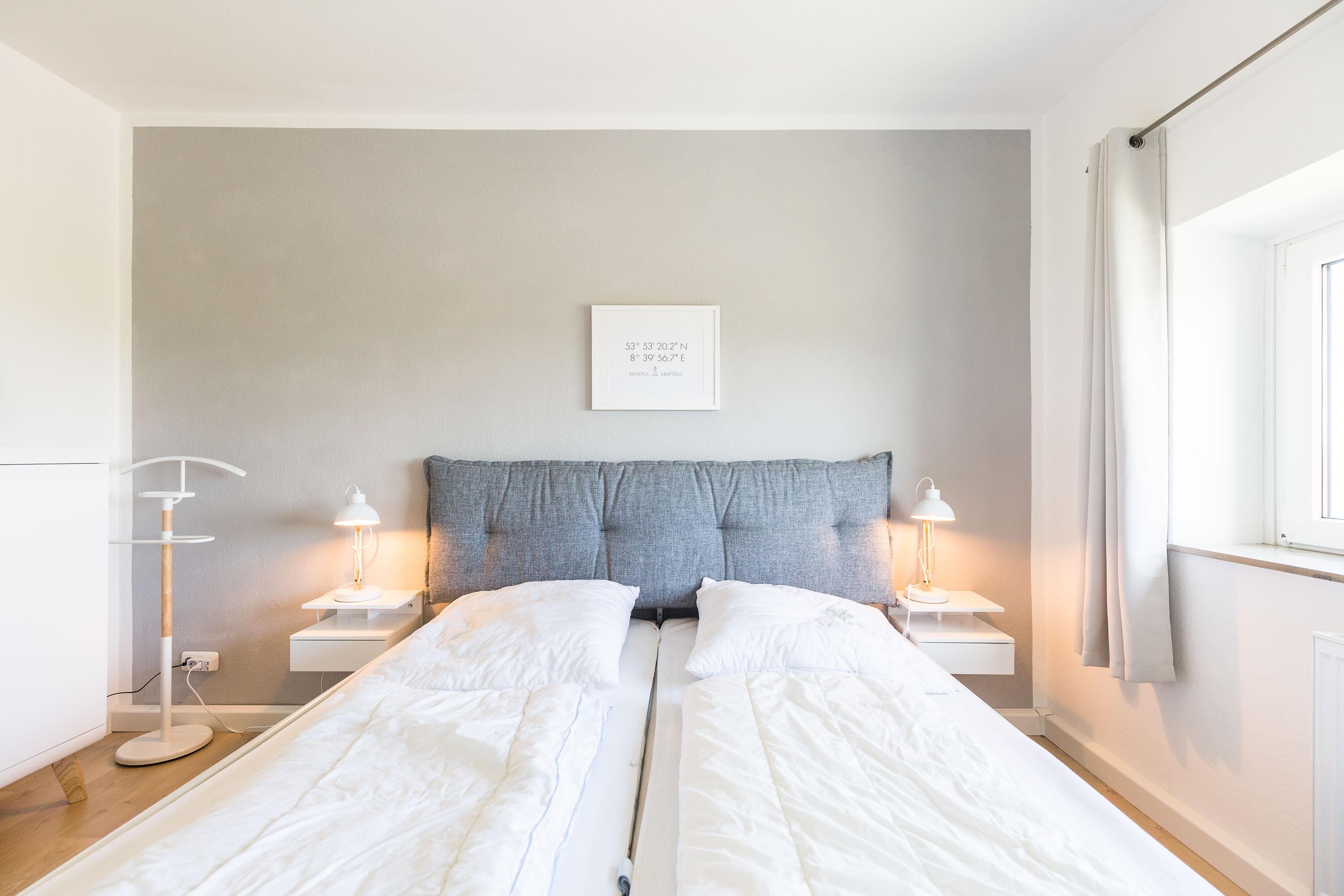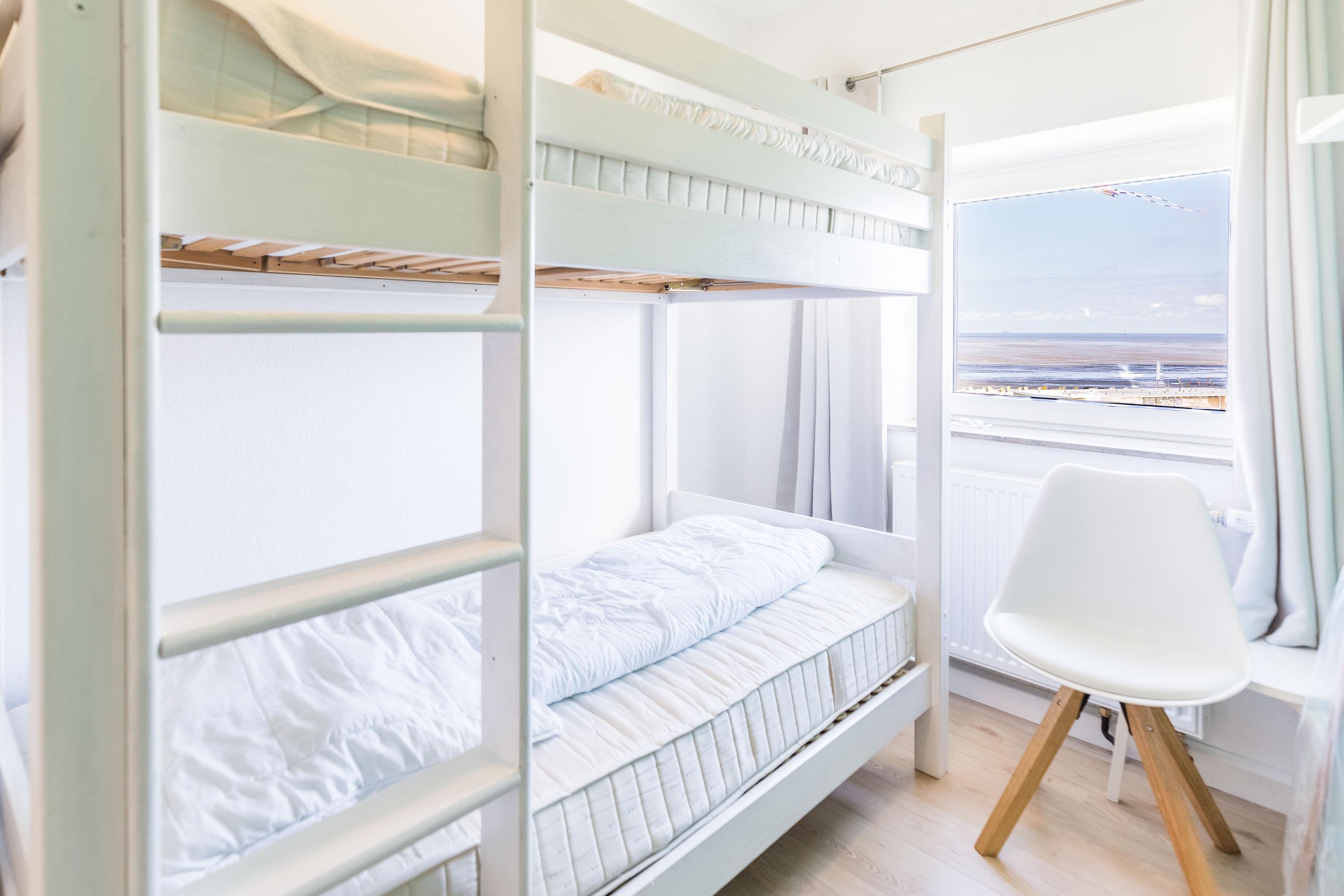 2 separate Schlafzimmer mit komfortablen Betten gewährleisten, dass Sie sich auch im Schlaf erholen. Die Eck-Ferienwohnung ist eine echte Rarität, denn aus der 5. Etage hat man einen besonders guten Ausblick. Beobachten Sie mächtige Schiffe, die Insel Neuwerk und traumhafte Sonnenuntergänge.