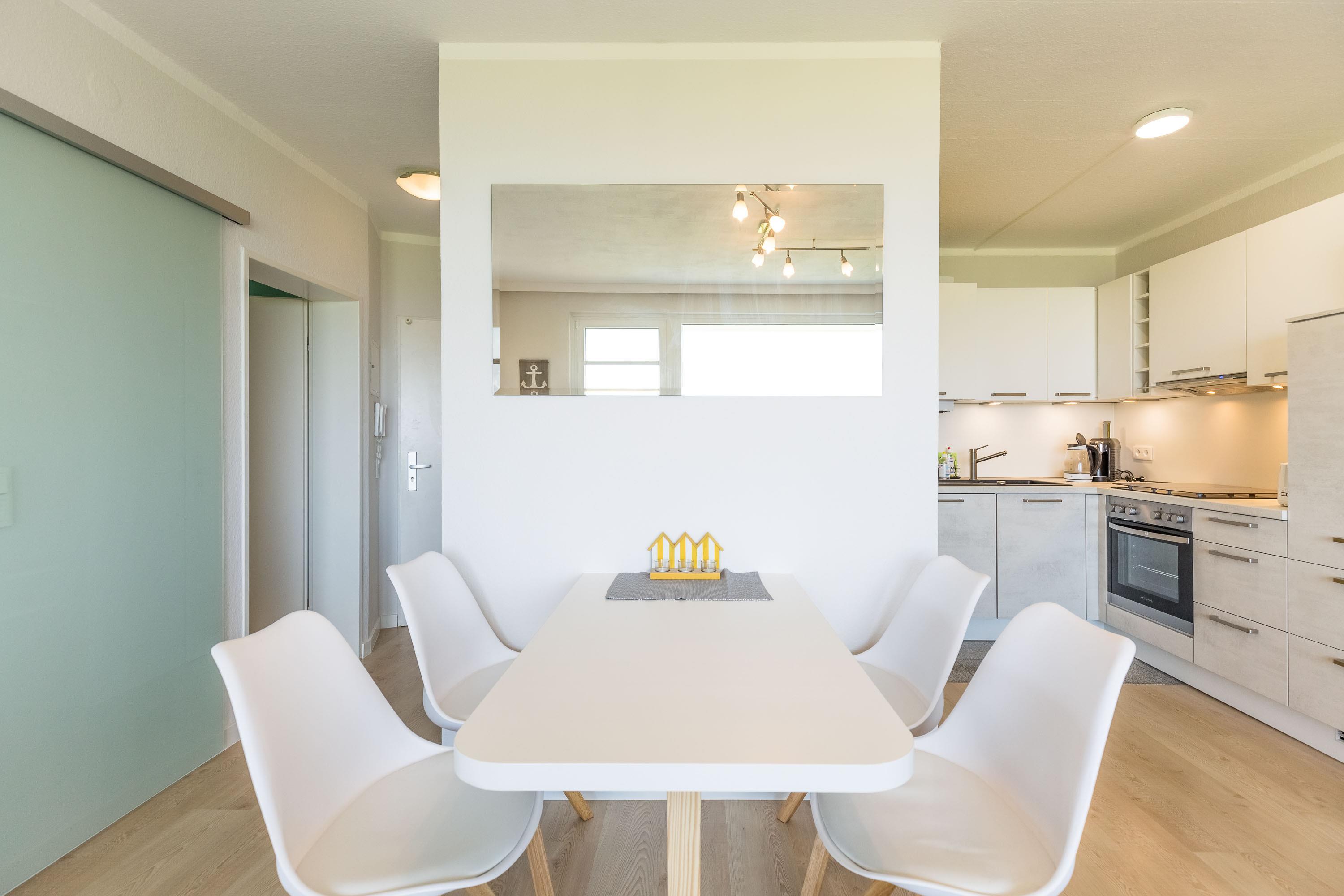 Schick, schick: Unsere 55 qm große 3-Zimmer Ferienwohnung mit Meerblick und Balkon bietet einen herrlichen Ausblick auf die Nordsee, die Insel Neuwerk und den Weltschifffahrtsweg. Schon morgens auf den Balkon treten, sich die raue Nordseeluft um die Ohren pusten lassen und auf die glitzernde Wasseroberfläche blicken – einfach unbezahlbar. Und drinnen, da erwartet Sie ruhiges und modernes Design – mit natürlichen Holzstrukturen, hellen, sanften Farben und skandinavisch-schlichten Einrichtungselementen. Perfekt für erholsame Tage am Meer.