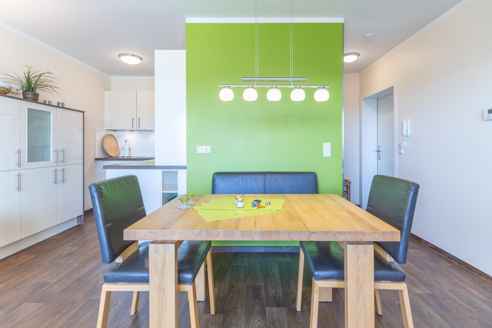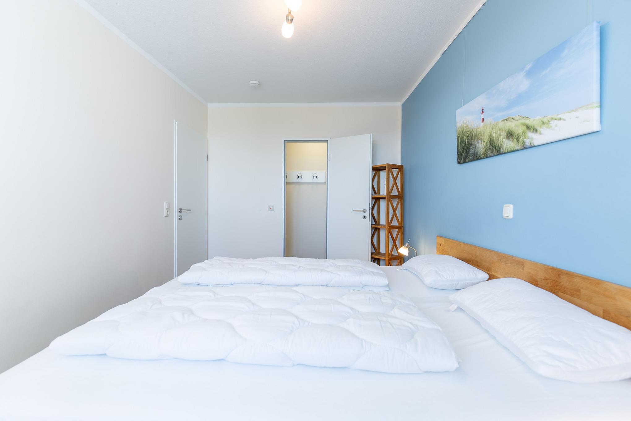 Mehr geht nicht: Die 3-Zimmer Ferienwohnung besticht durch eine hochwertige Ausstattung und ein modernes Ambiente. Das komfortable XXL-Doppelbett (2x100x210) in Überlänge gewährleistet, dass Sie sich auch im Schlaf erholen. Darüber hinaus steht ein weiteres separates Schlafzimmer mit zwei Einzelbetten zur Verfügung. Im Wohnbereich lädt ein komfortables Sofa zum Verweilen ein. Flat-TV und kostenloses WLAN sorgen für beste Unterhaltung.