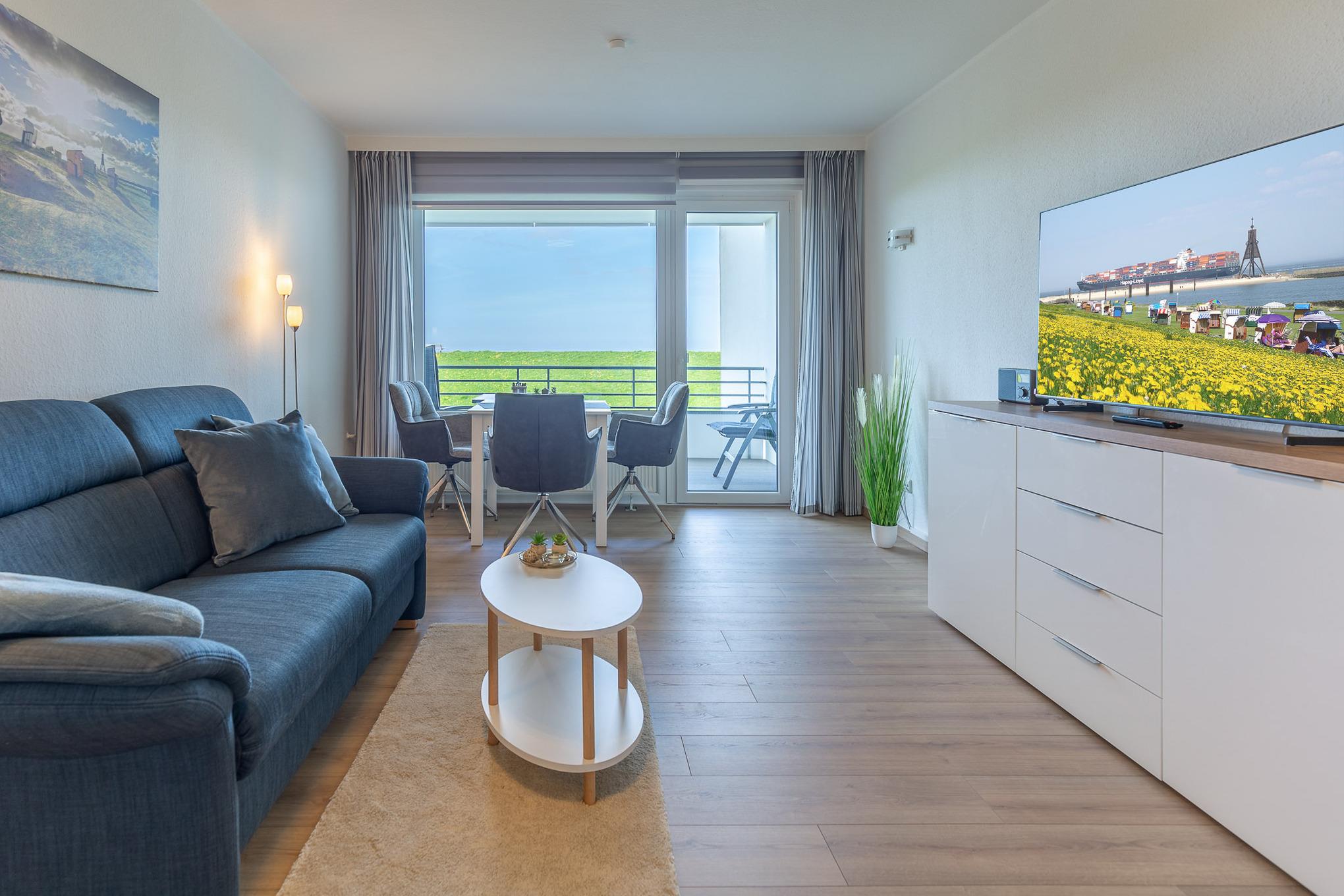 Sie suchen eine günstige und geschmackvolle Ferienwohnung mit separatem Schlafzimmer in bester Lage? Genießen Sie Ihren Urlaub in erster Reihe direkt am Deich und lassen Sie sich die frische Nordseeluft um die Nase wehen. Ihre 2-Zimmer Ferienwohnung befindet sich in der 2. Etage im Haus Grimmershörn. Nach einem erlebnisreichen Tag genießen Sie den Ausblick auf den Weltschifffahrtsweg und die Kugelbake.