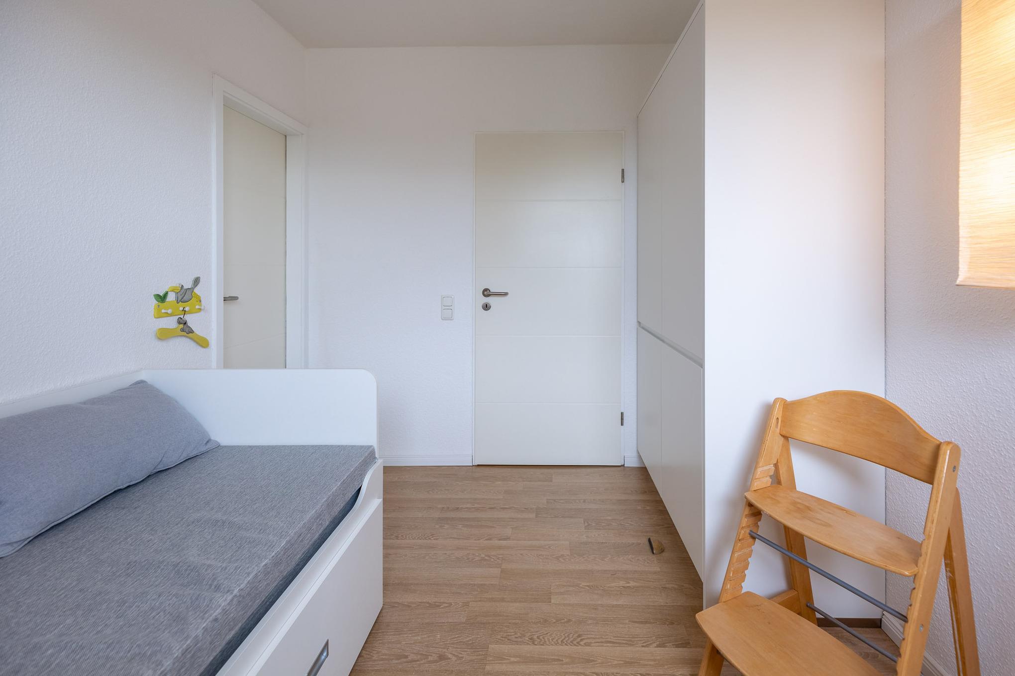 Die separate Küche ist mit einem Backofen, Ceranfeld mit 4-Kochstellen, einem Geschirrspüler, einer Kaffeemaschine, sowie einem Kühlschrank mit Gefrierfach ausgestattet. Der integrierte Essplatz gewährleistet kurze Wege. Die burgundfarbene Hochglanzküche sorgt für ein gemütliches und zugleich modernes Ambiente.