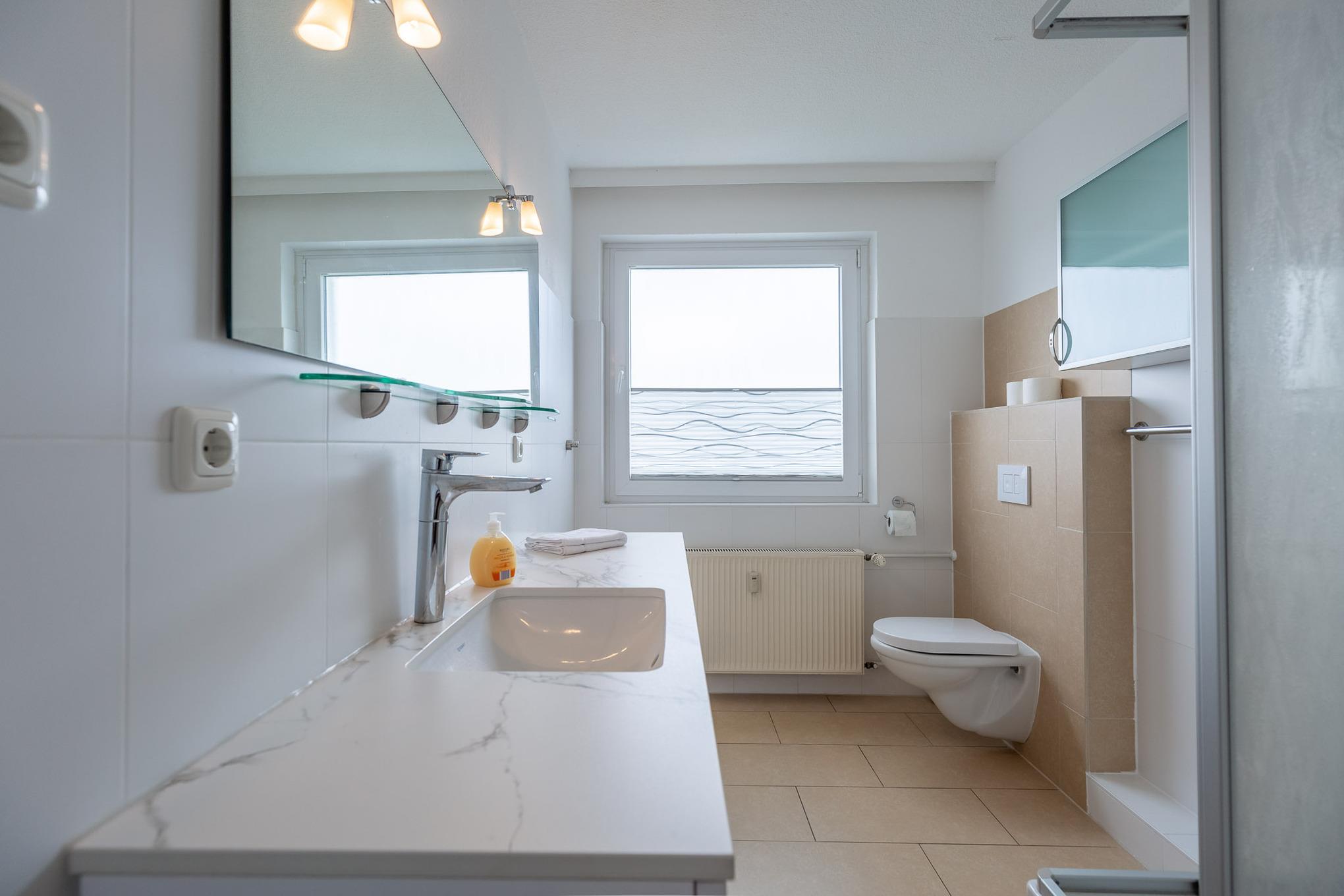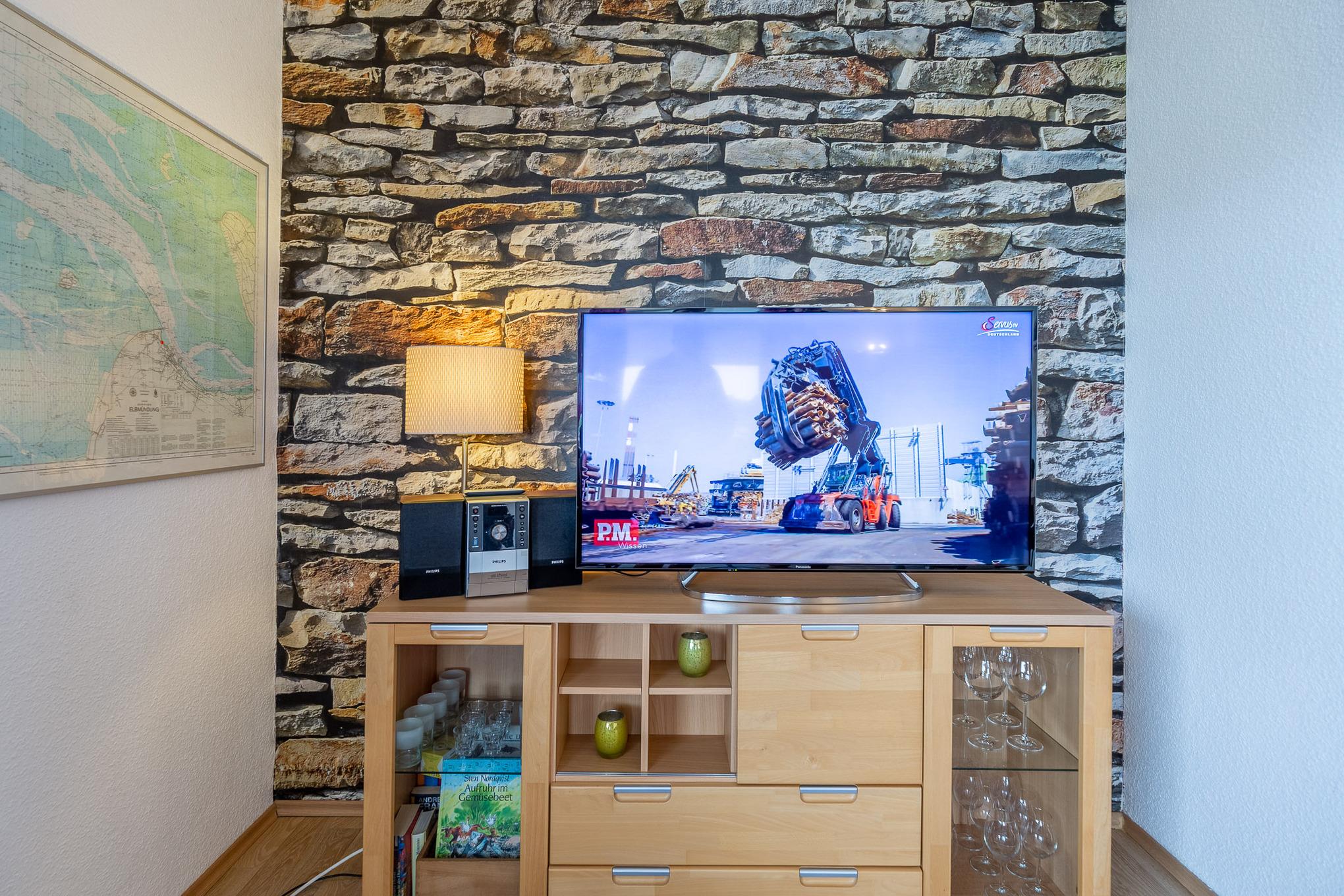Dank kostenlosem WLAN können Sie direkt recherchieren, welches Schiff gerade Ihr Wohnzimmerfenster passiert. Der LCD Fernseher im Wohnbereich gewährleistet, dass Sie auch im Urlaub nicht auf Ihre Lieblingssendung verzichten müssen. Eine echte Rarität ist der umlaufende Balkon der Eck-Ferienwohnung. Bei gutem Wetter ist der Balkon eine wahre Freiluft-Nordseeloge mit Meerblick.