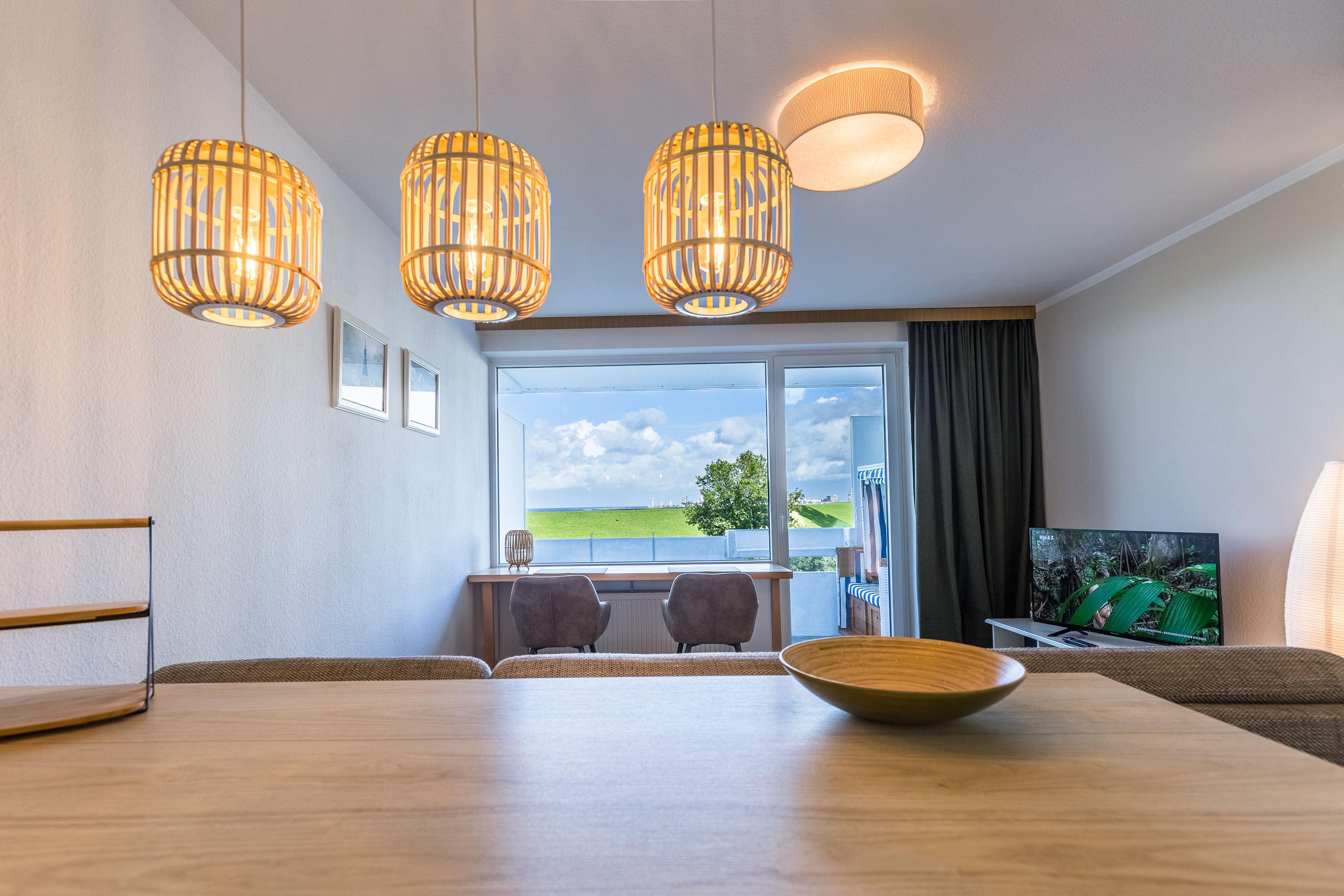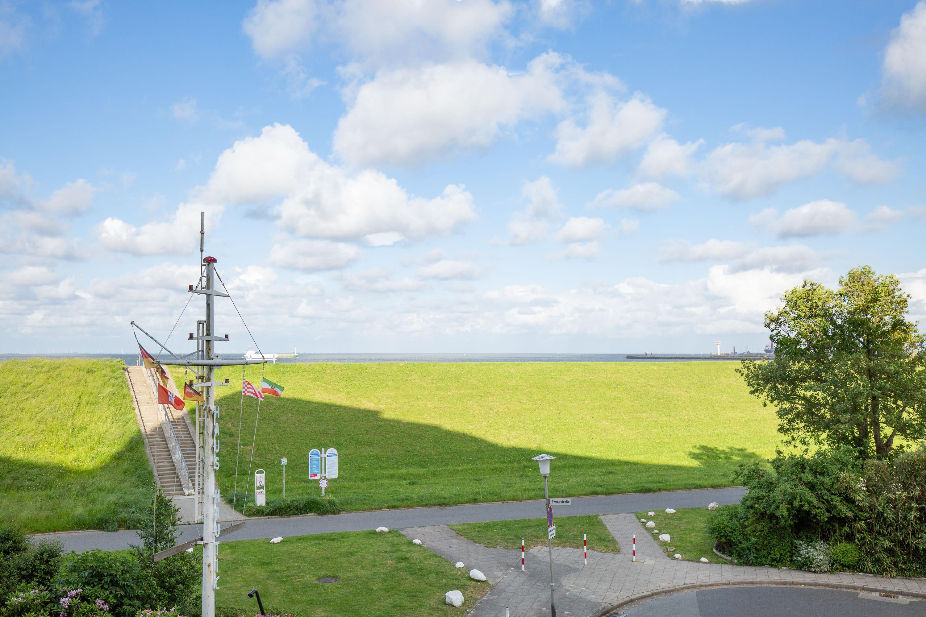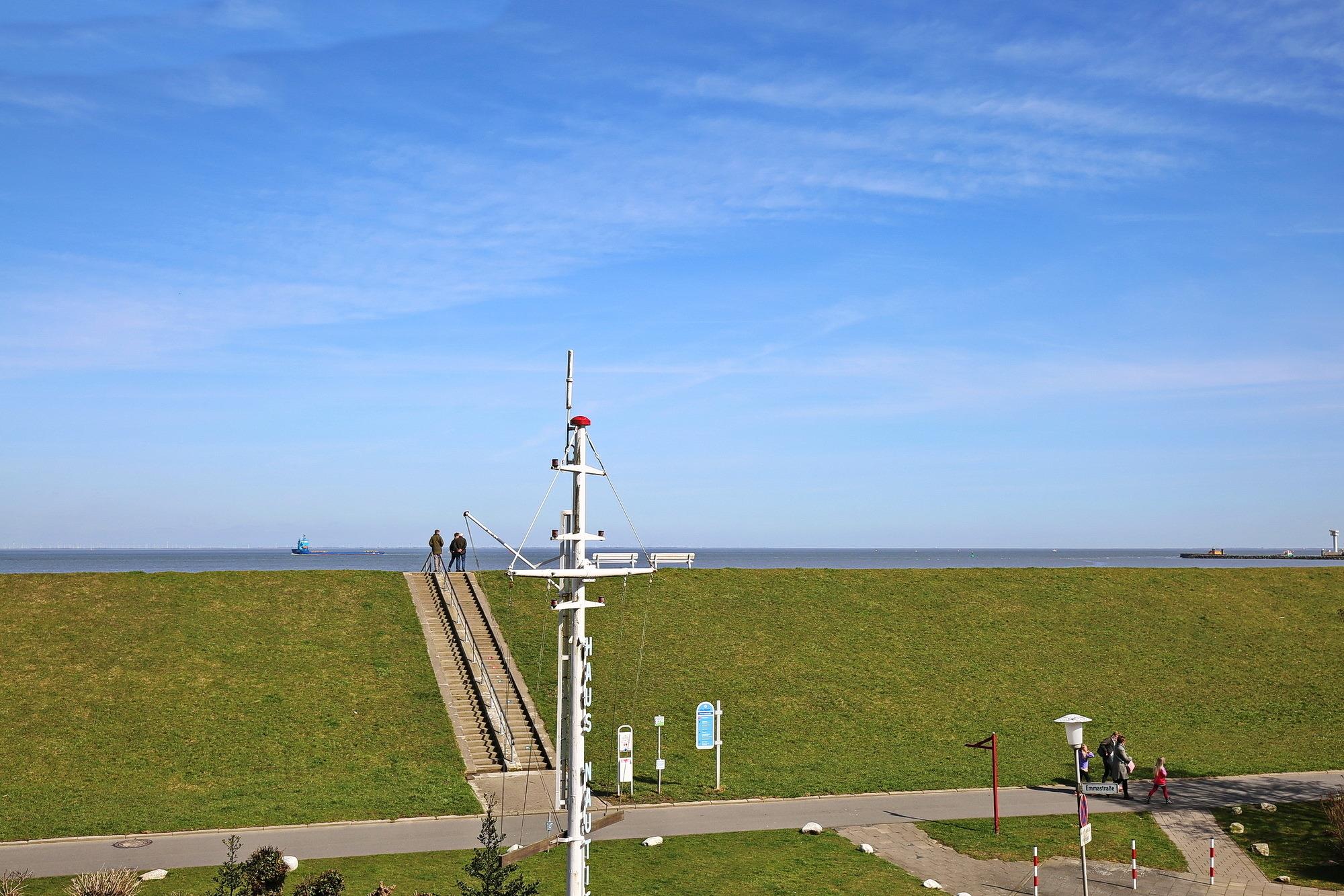 Sowohl der Wohnbereich, als auch der Balkon bieten einen traumhaften Ausblick auf die vorbeifahrenden Krabbenkutter, Frachter und Kreuzfahrtschiffe. Die vorbeifahrenden Schiffe scheinen zum Greifen nah. Der Meerblick bietet Erholung und Erlebnis zugleich.