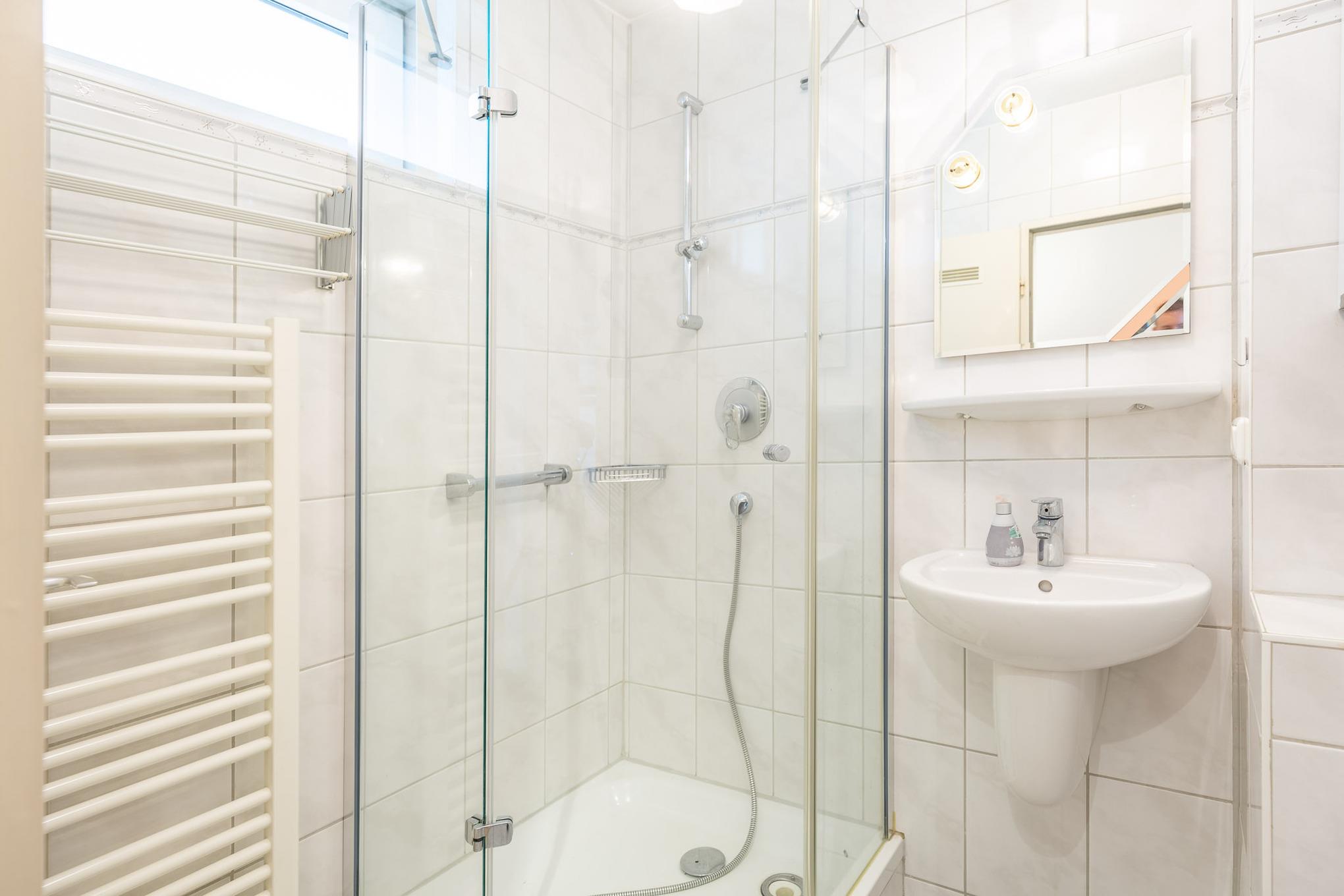 Die Schrankbetten im kombinierten Wohn- und Schlafbereich gewährleisten einen erholsamen Schlaf. Außerdem bietet ein separates Einzelbett im Vorraum eine vom Wohnbereich getrennte Schlafmöglichkeit. Elektrische Außenjalousien sorgen dafür, dass Sie nicht von der Morgensonne geweckt werden. Das Bad mit Dusche und WC verfügt über ein Fenster zum Belüften. Selbstverständlich bietet auch der Balkon einen fantastischen Meerblick.